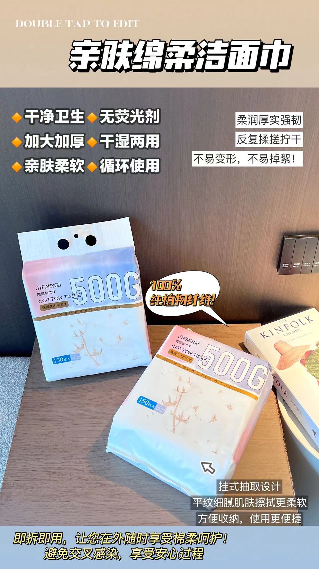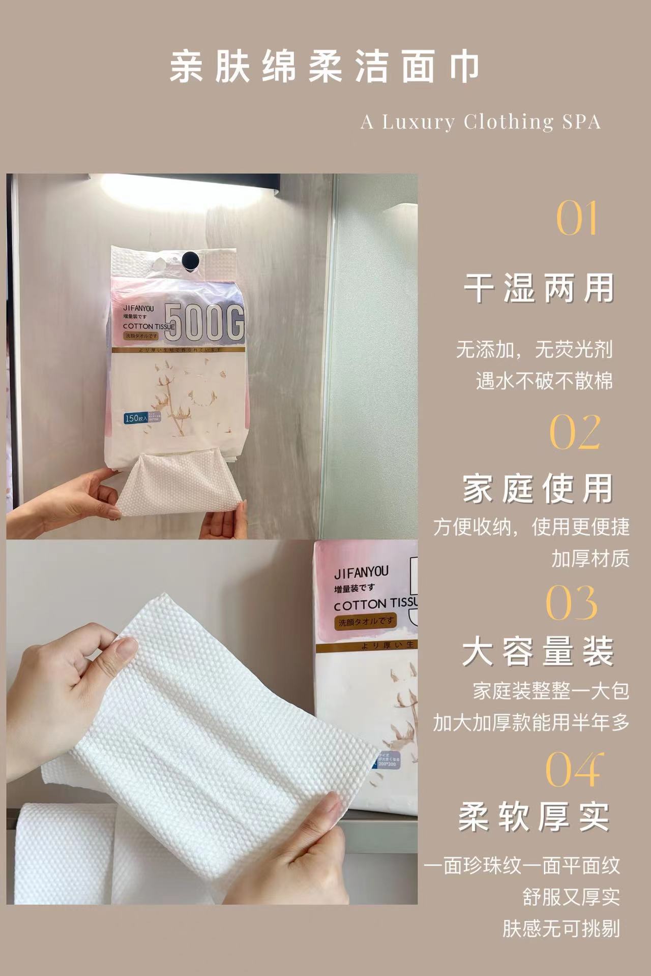 「大包装!干湿两用」JIFANYOU亲肤棉柔洁面巾150抽 居家日用卸妆洗脸加大加厚柔软