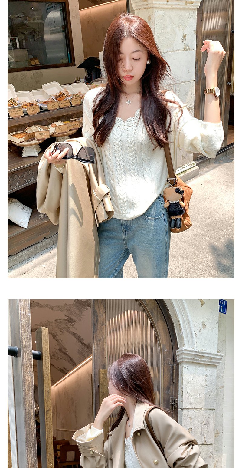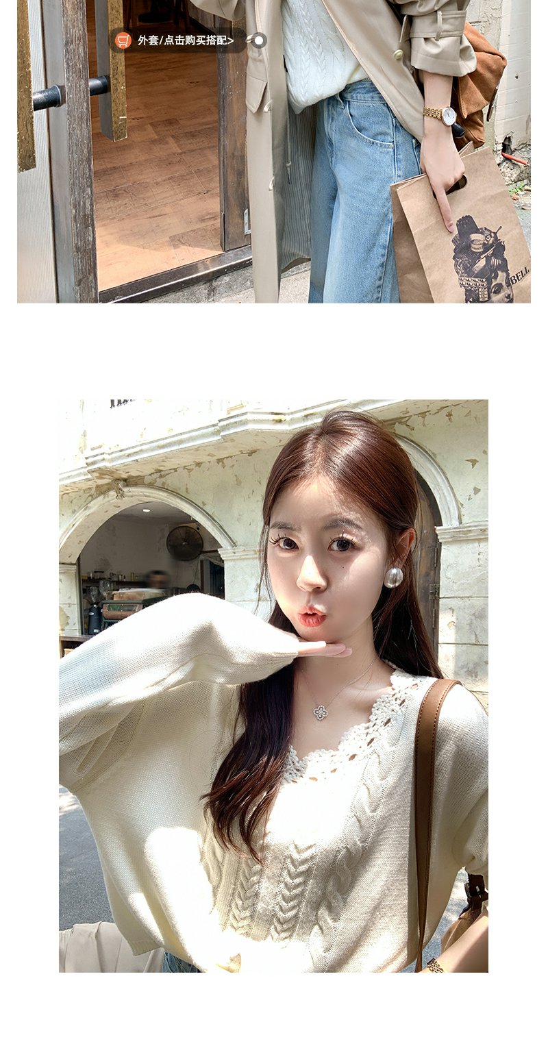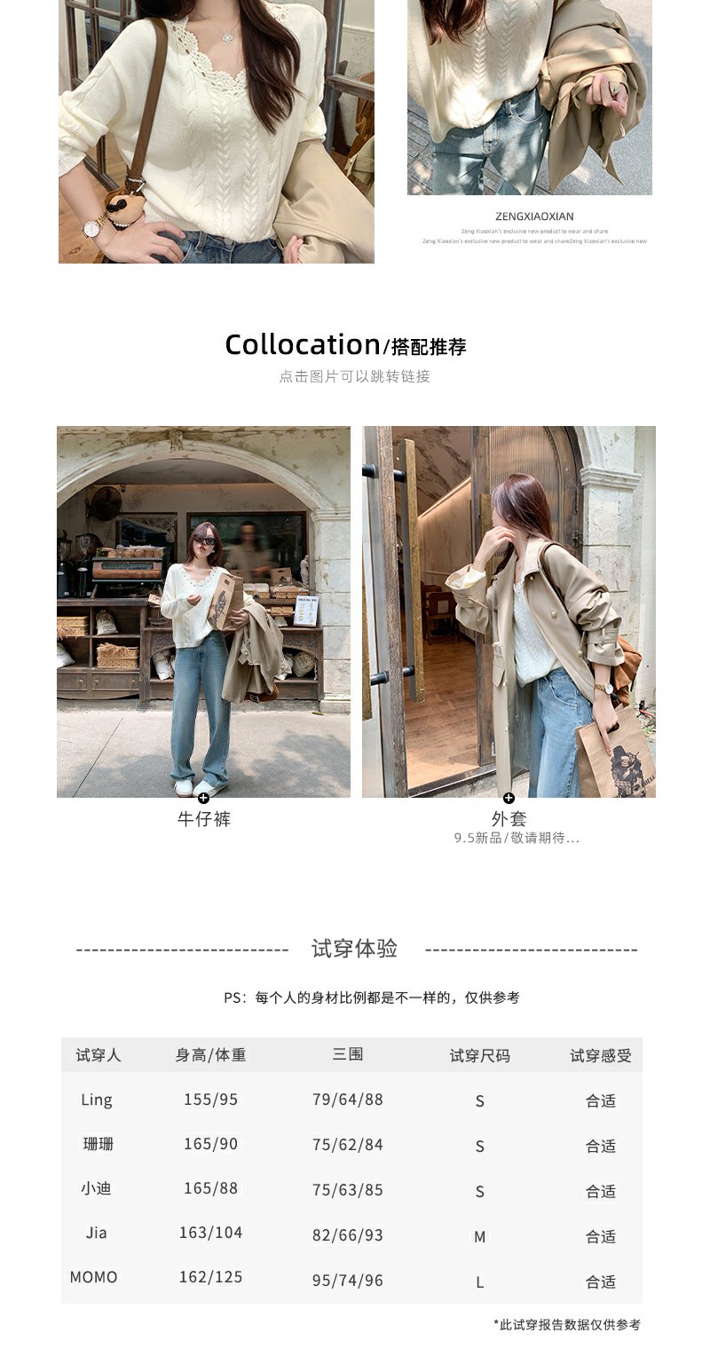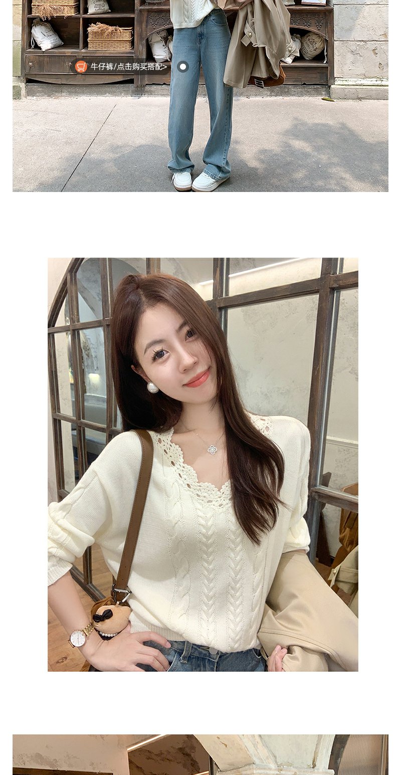 <曾小咸推荐>米白慵懒风蕾丝拼接纯色毛衣