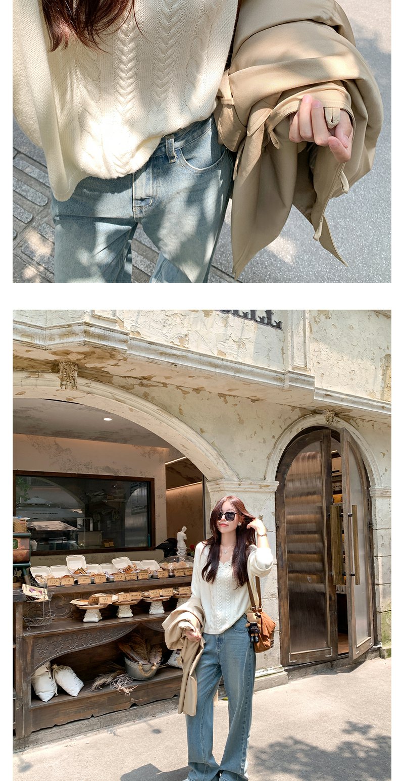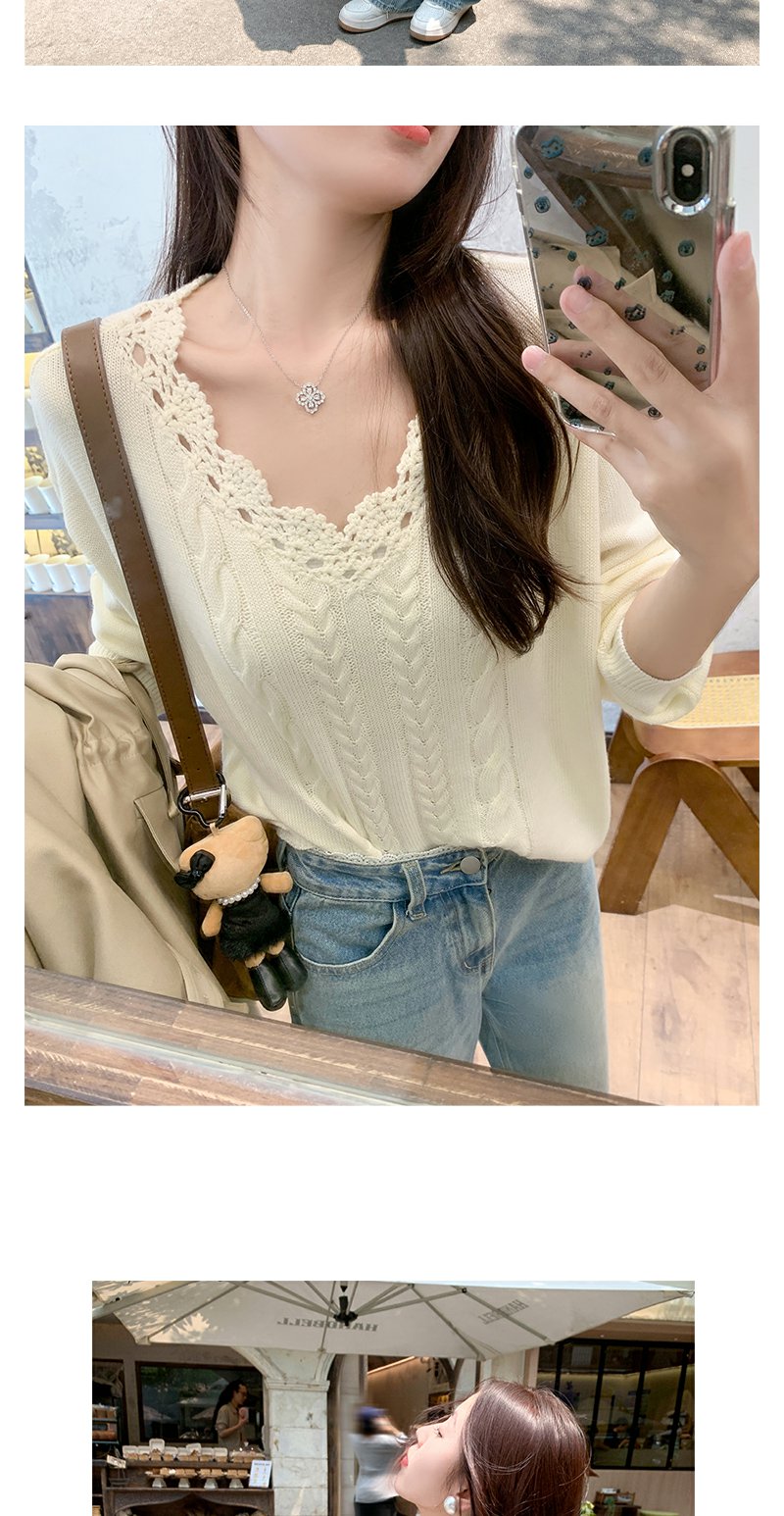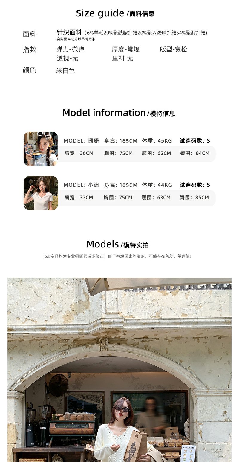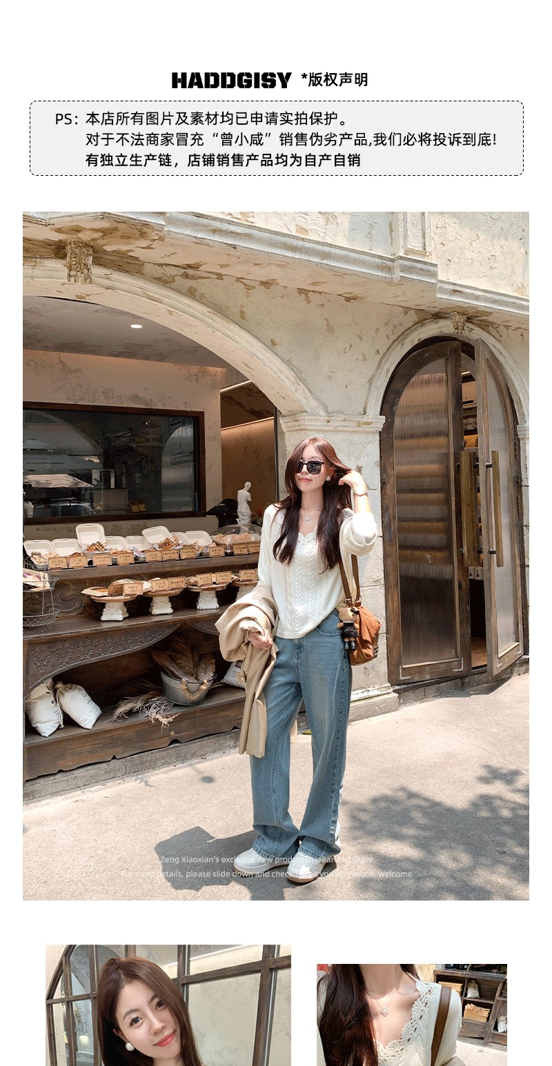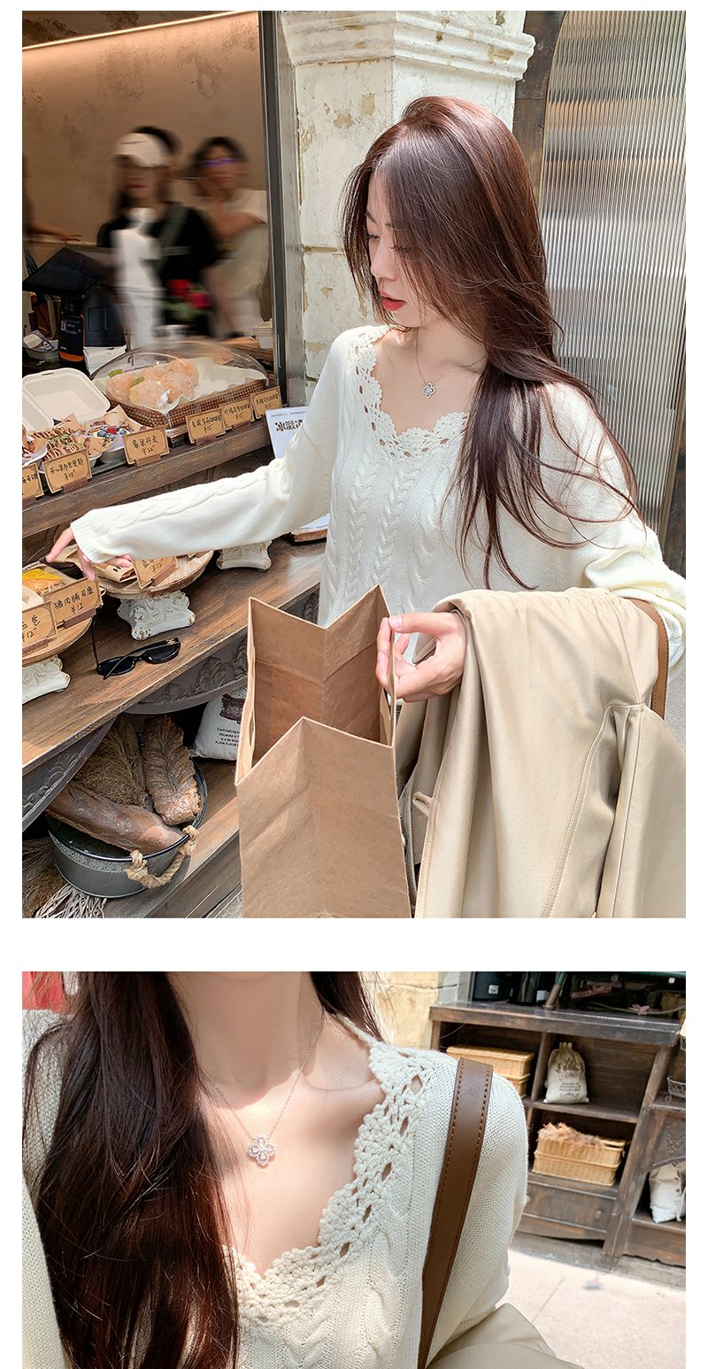 <曾小咸推荐>米白慵懒风蕾丝拼接纯色毛衣
