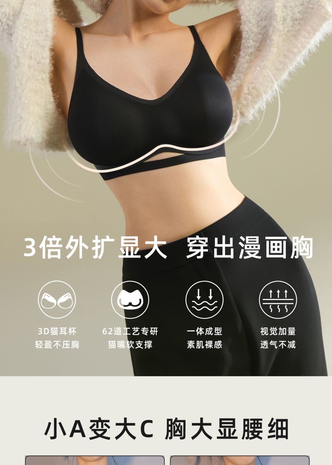 【新品!送2对外扩胸垫】娇躯一抬,三倍显大,小胸女性的心头好;外扩必收,透气舒畅,细节尽显考究。增添性感,猫耳杯支撑,巨舒适不下垂,尽显女性魅力!