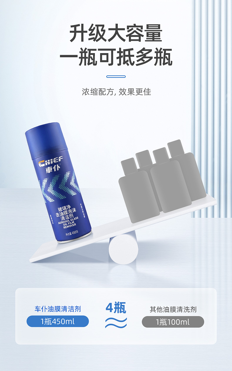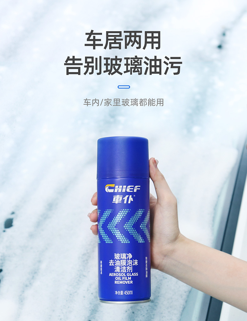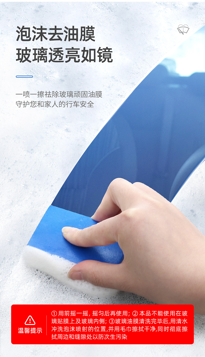 车仆玻璃净去油膜泡沫清洗剂 强效去除油膜 玻璃透亮 告别眩光