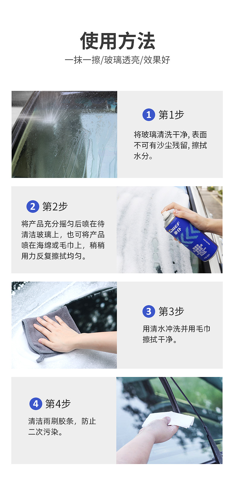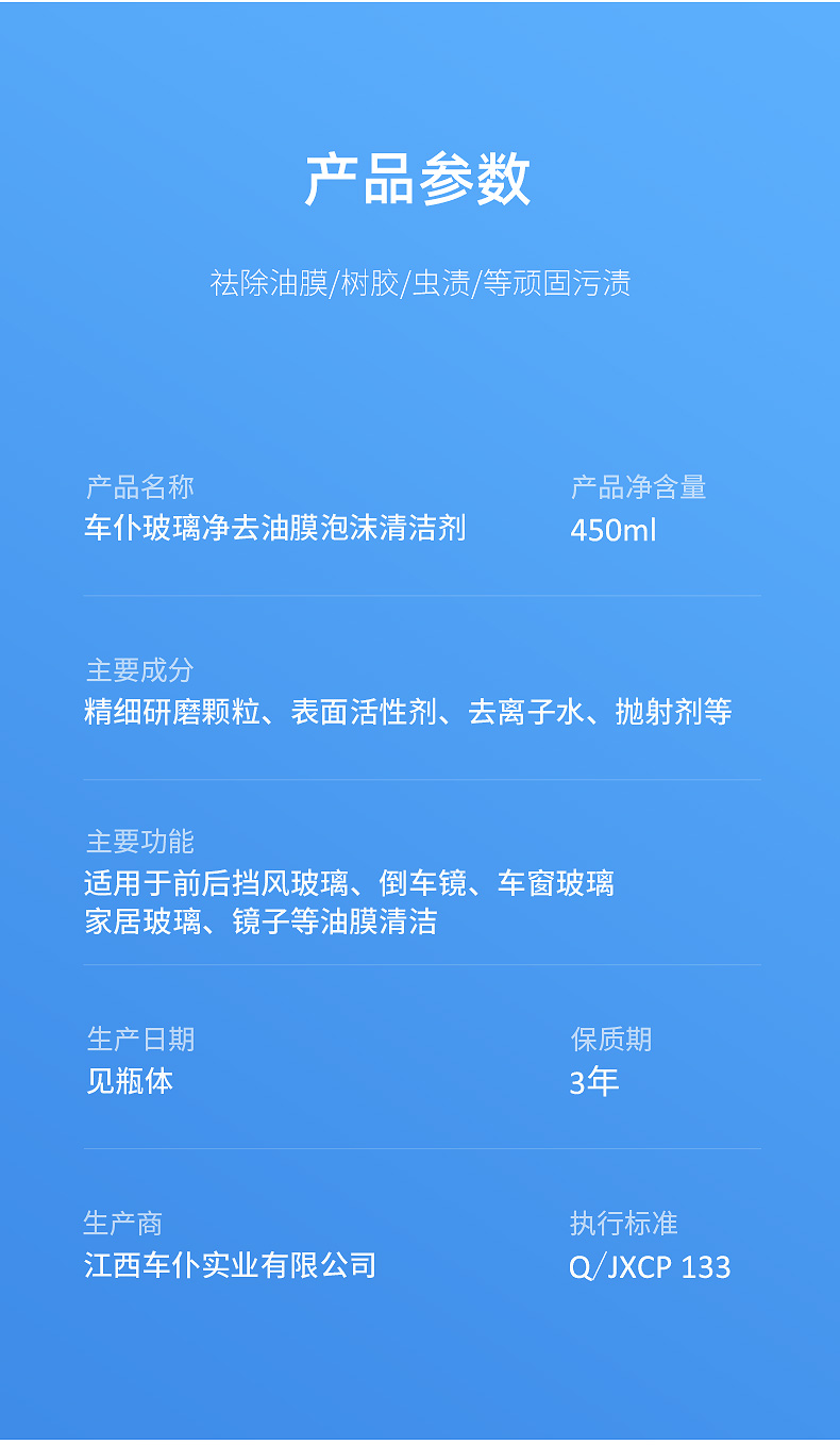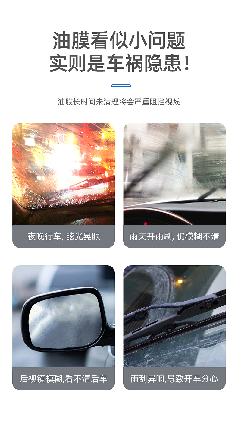 车仆玻璃净去油膜泡沫清洗剂 强效去除油膜 玻璃透亮 告别眩光