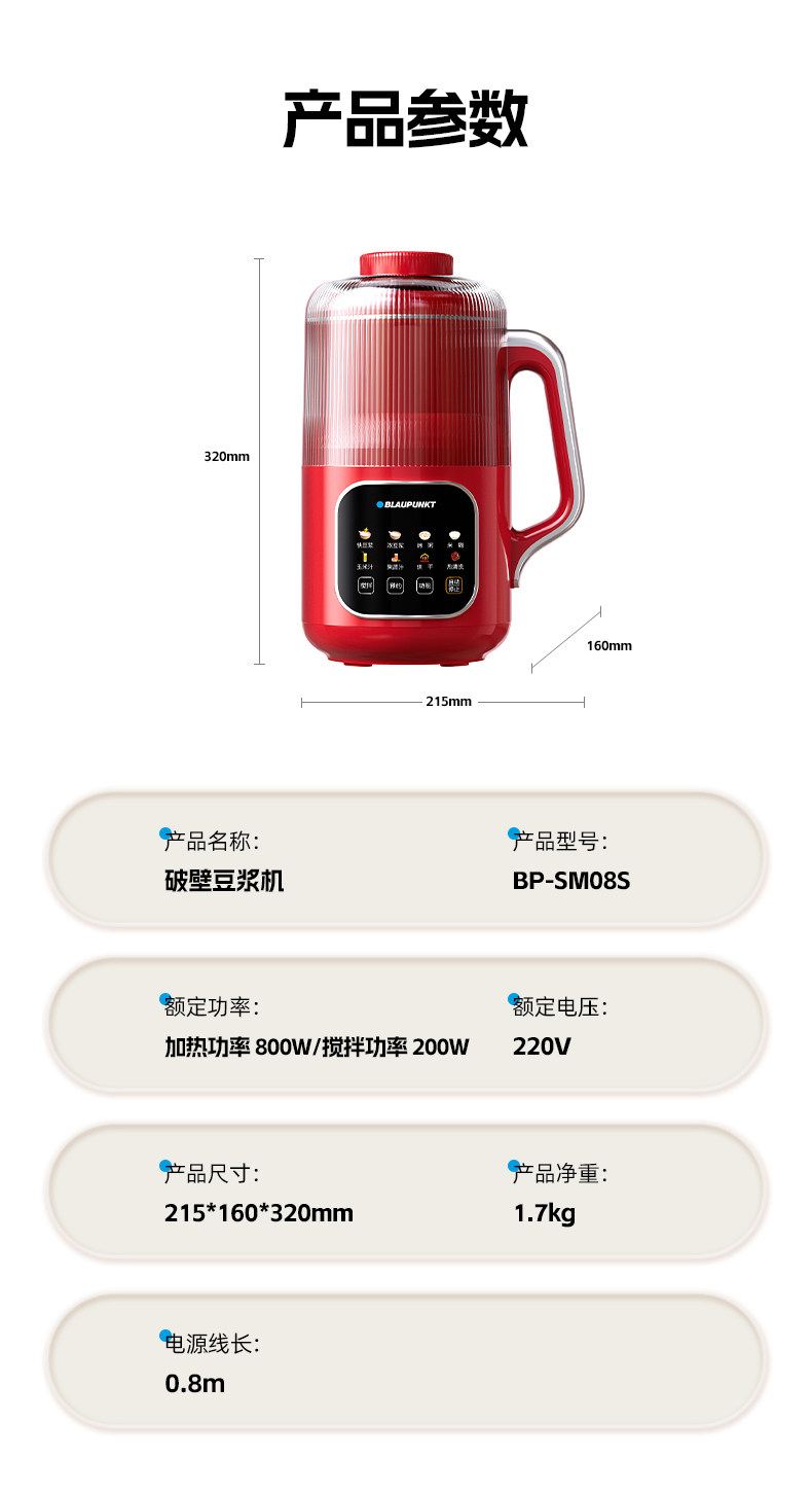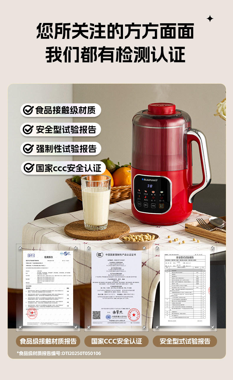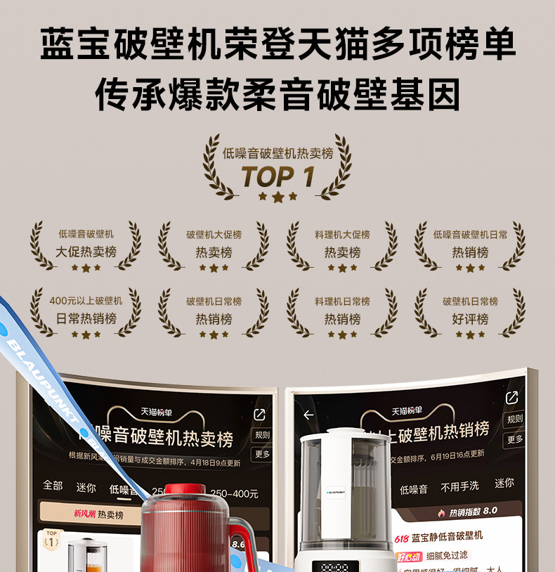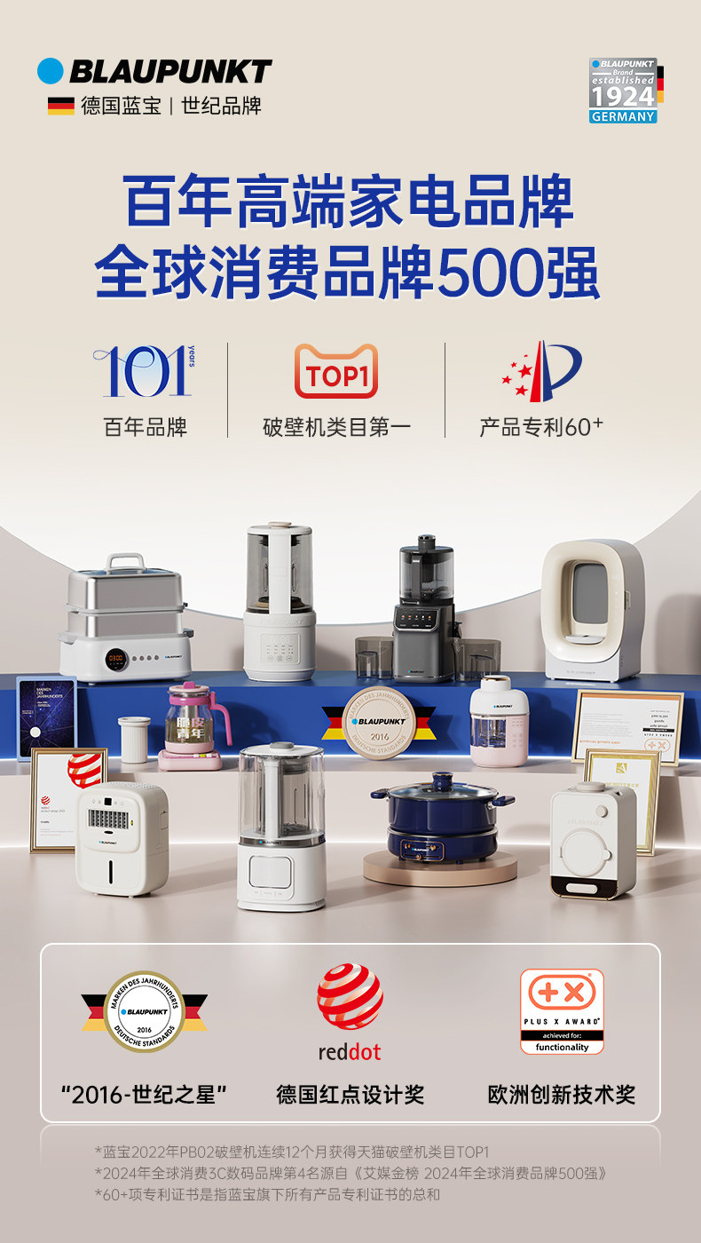 【德国蓝宝全不锈钢破壁机】蓝宝破壁机家用小型豆浆机全自动低噪多功能料理机