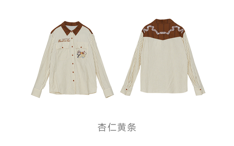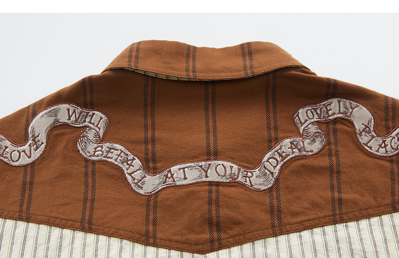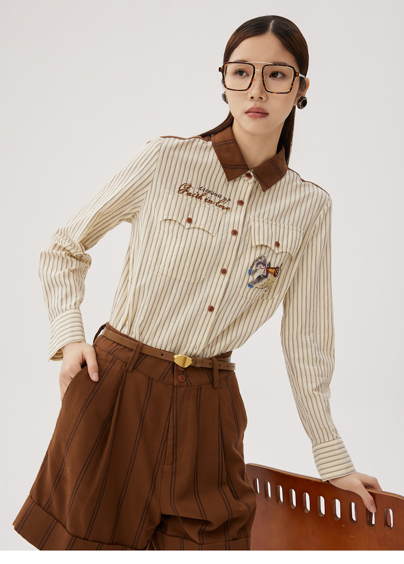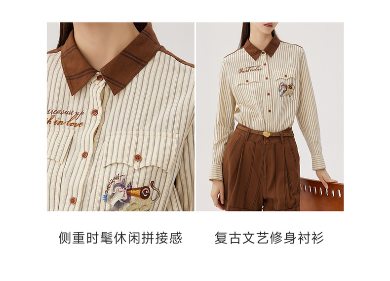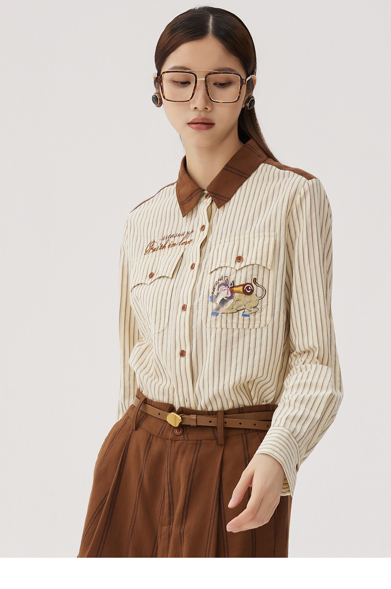 谜底纯棉衬衫长袖女士2024秋季新品复古风拼接绣花衬衣243MC1075