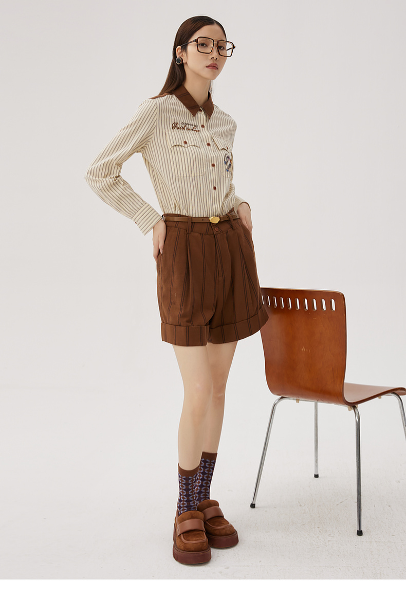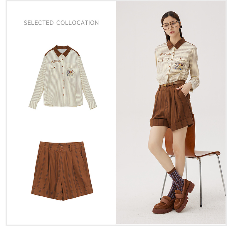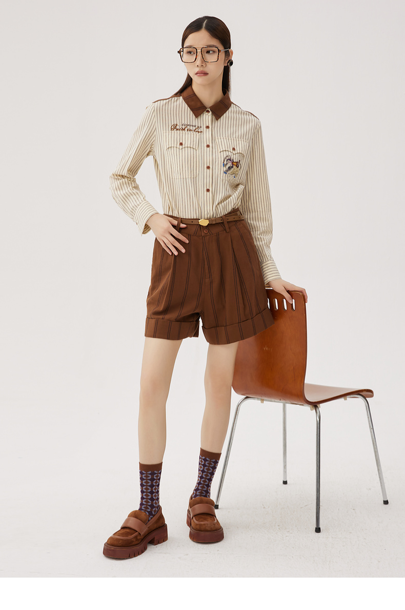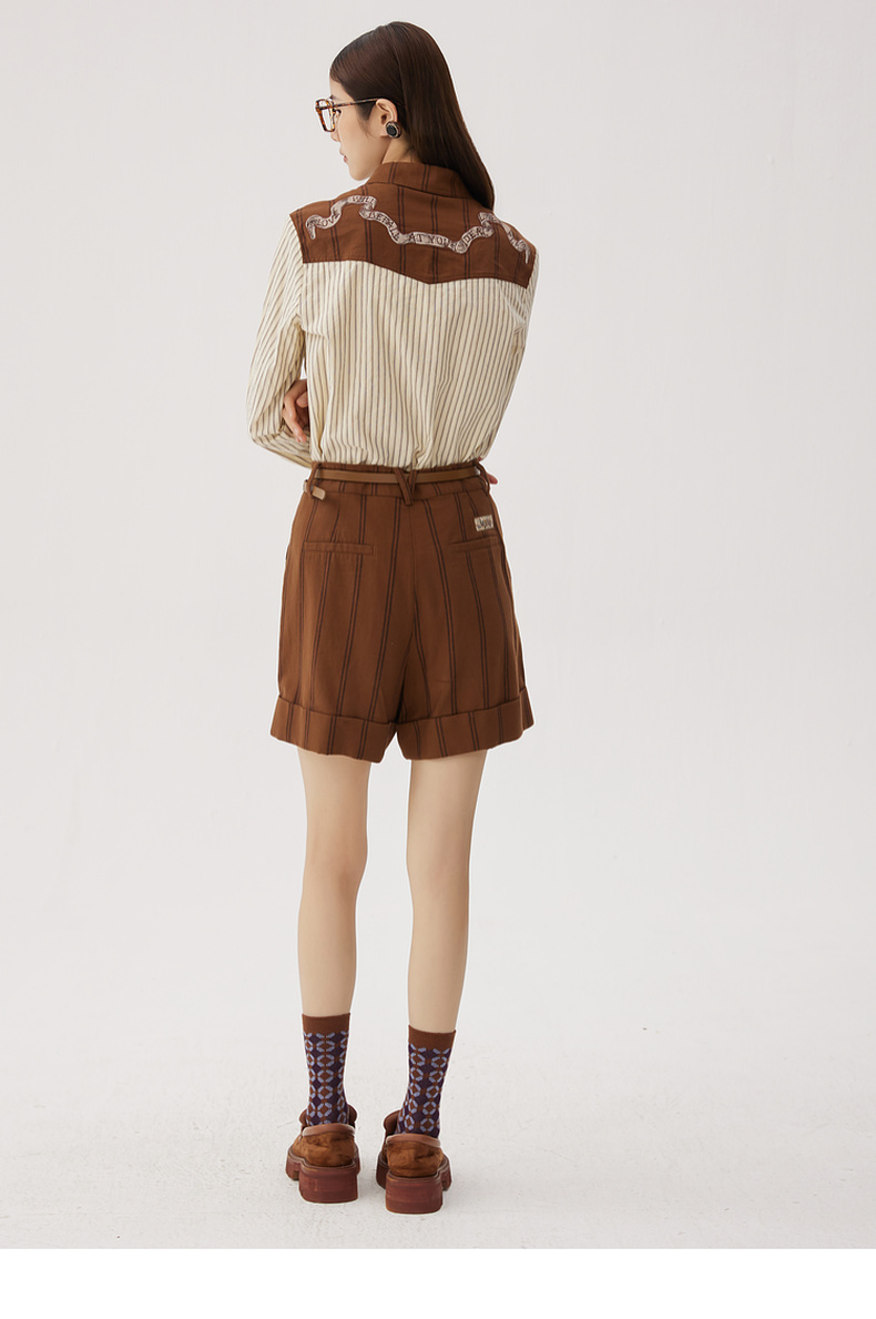 谜底纯棉衬衫长袖女士2024秋季新品复古风拼接绣花衬衣243MC1075