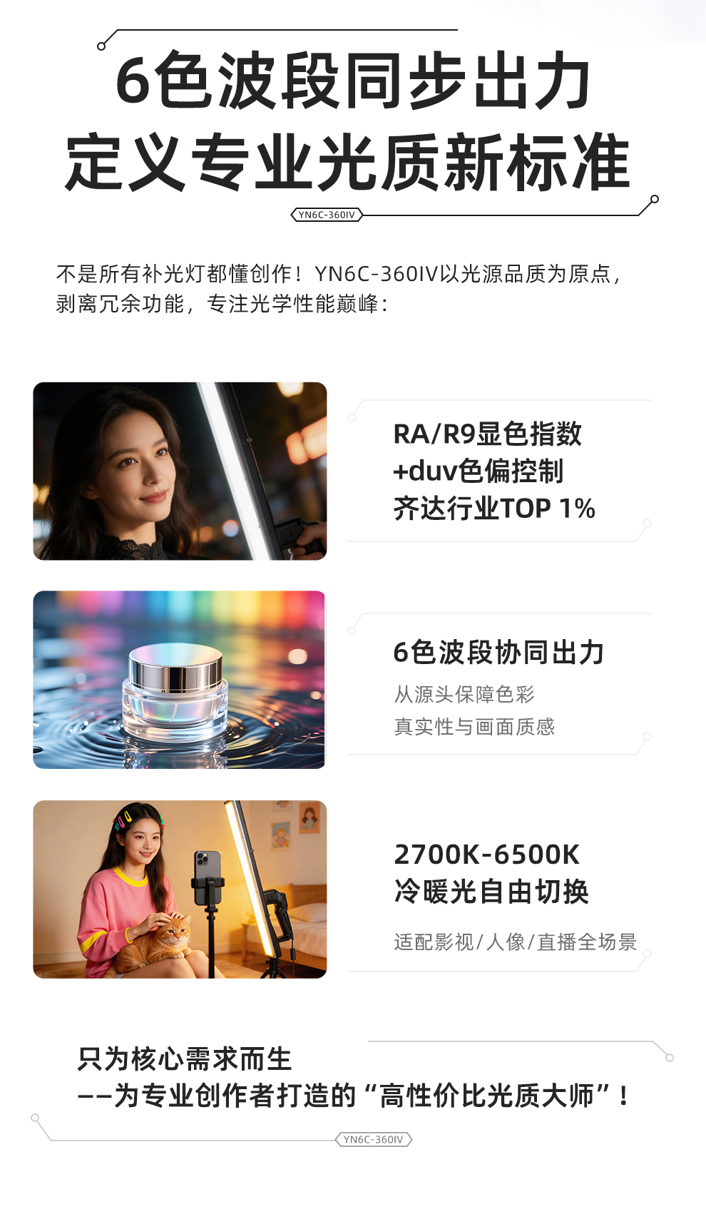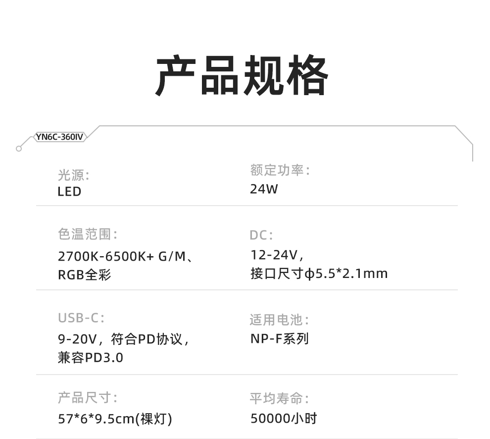 永诺YN6C-360IV 24W 手持RGB补光灯 6色波段同步出力 光质革命 创作无限