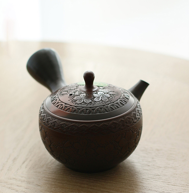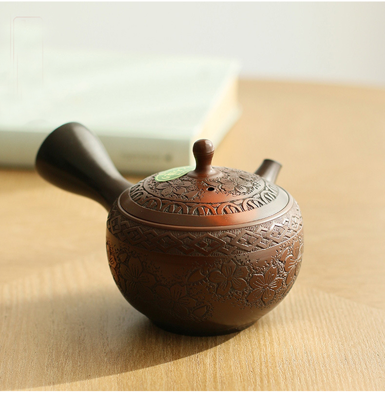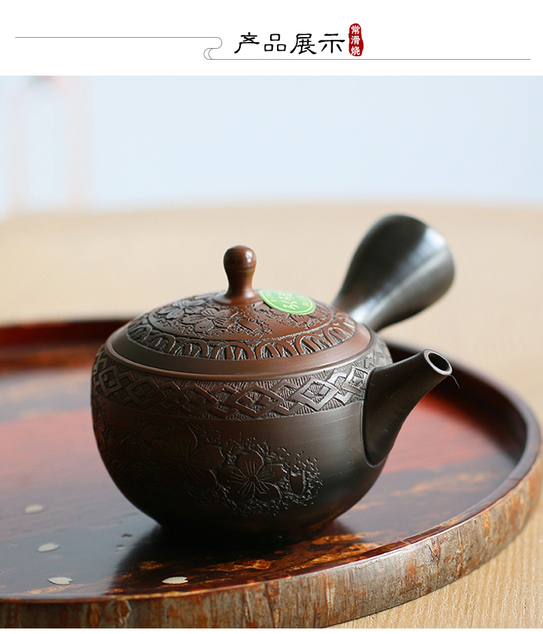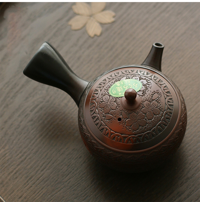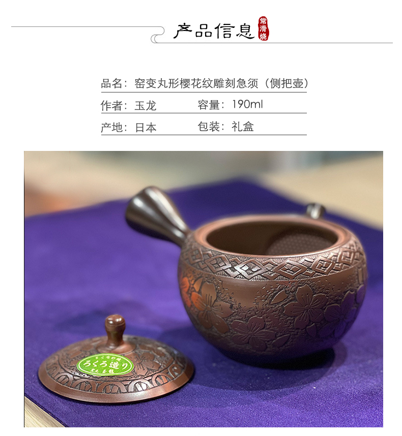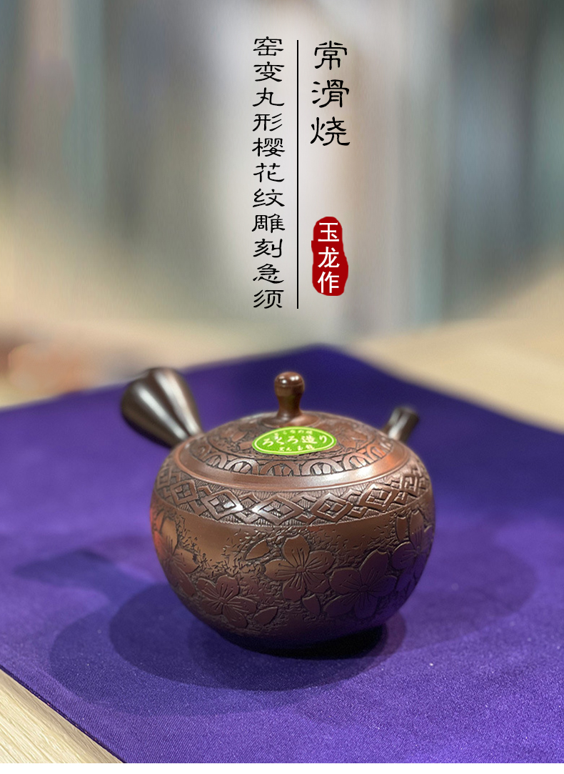 日本进口常滑烧玉龙作窑变丸行樱花纹雕刻急须功夫茶泡茶壶