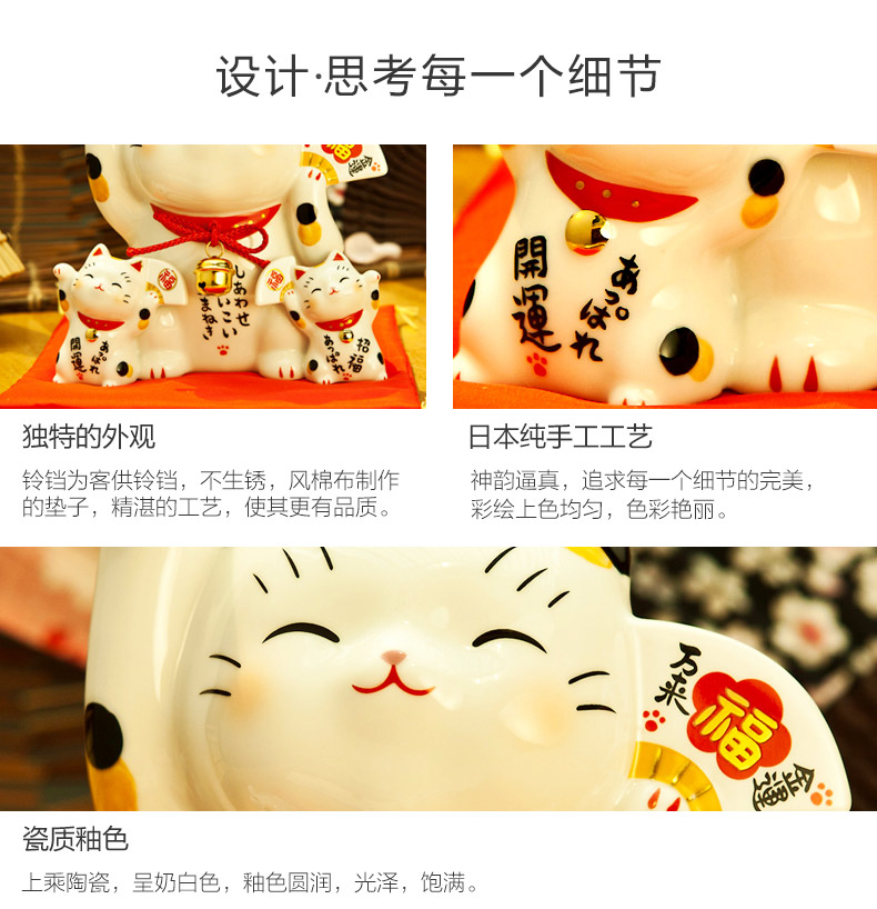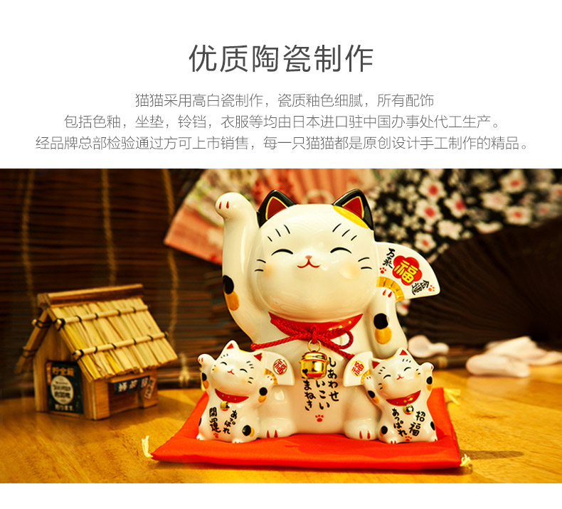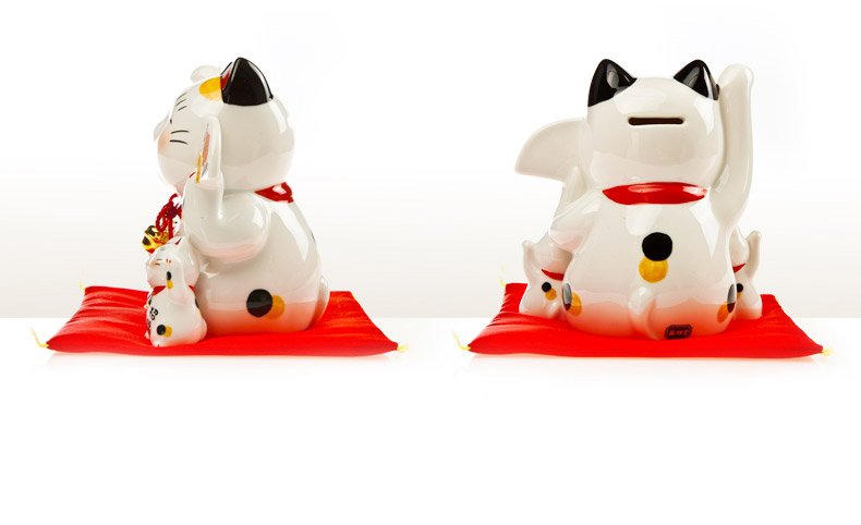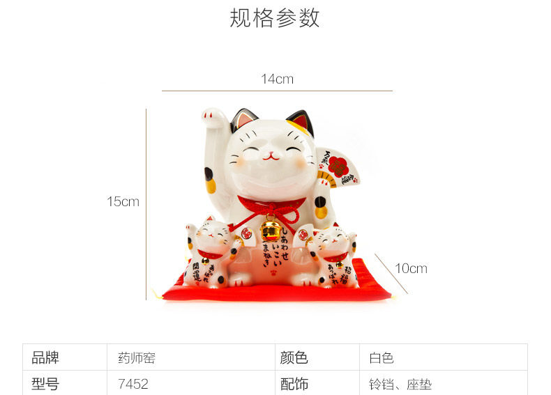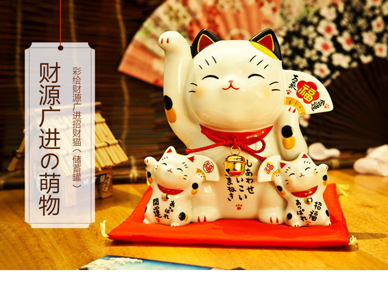日本药师窑彩绘财源广进招财猫(储蓄罐)15cm