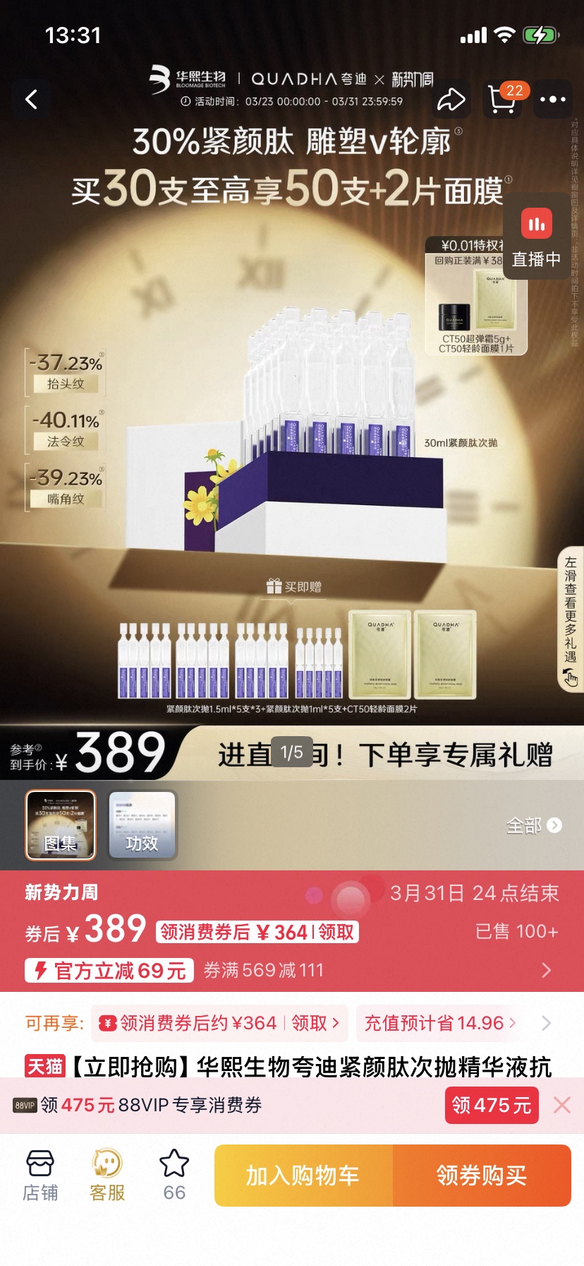 💰169元包邮, 【夸迪紧颜肽次抛】主打30%的紧颜肽,温和高效抗老