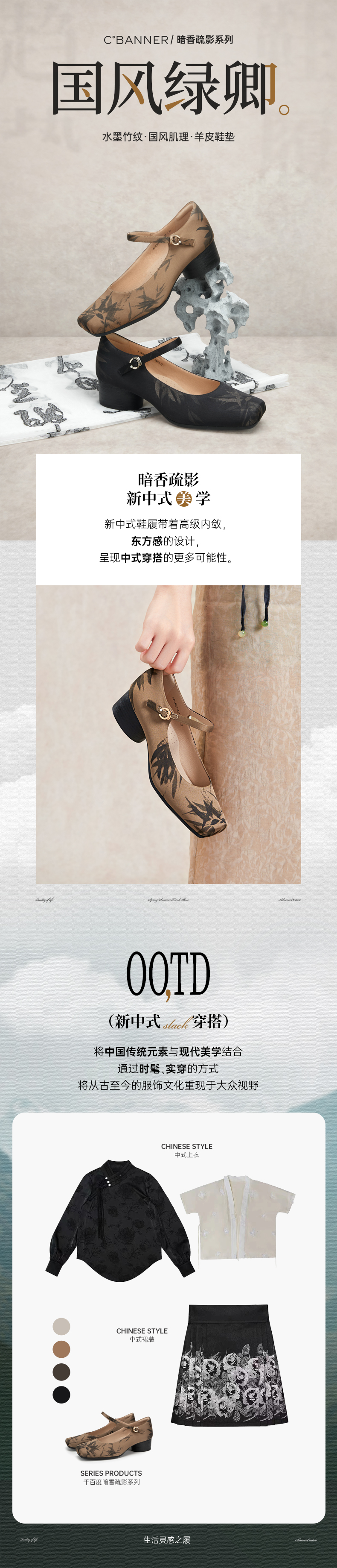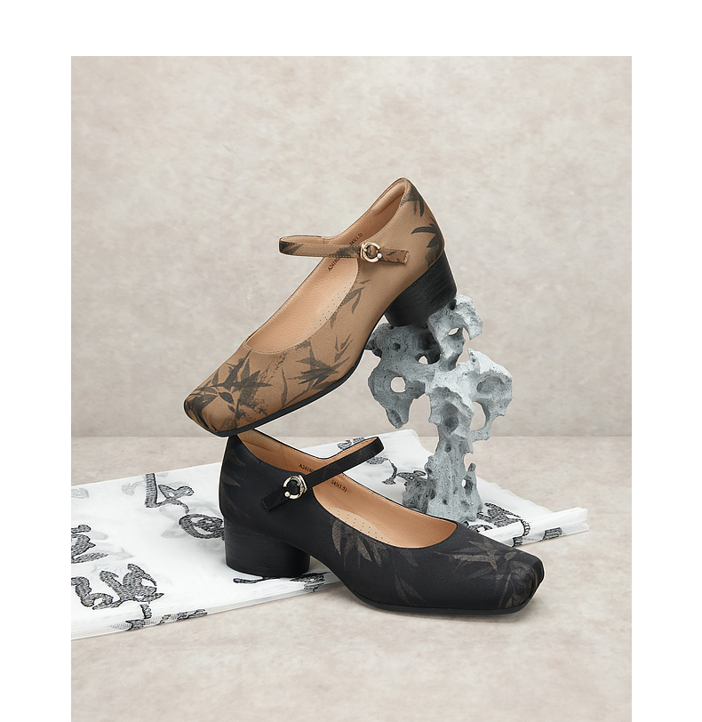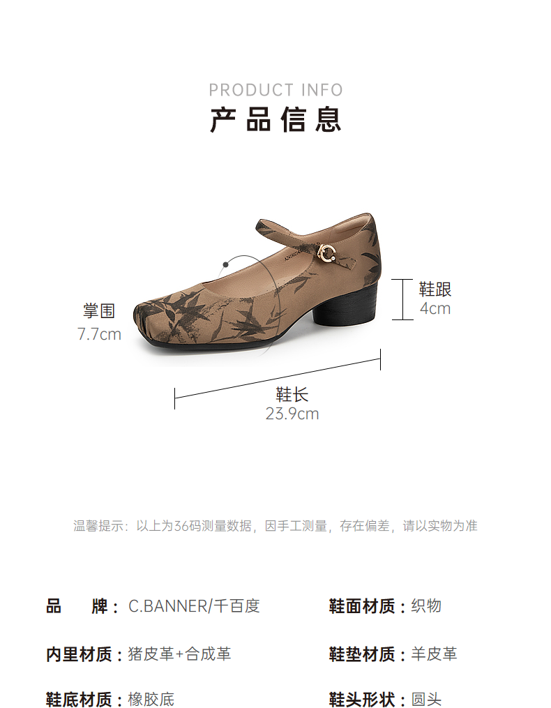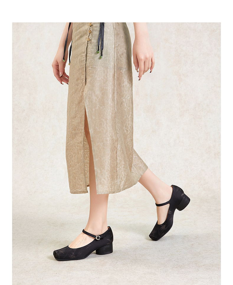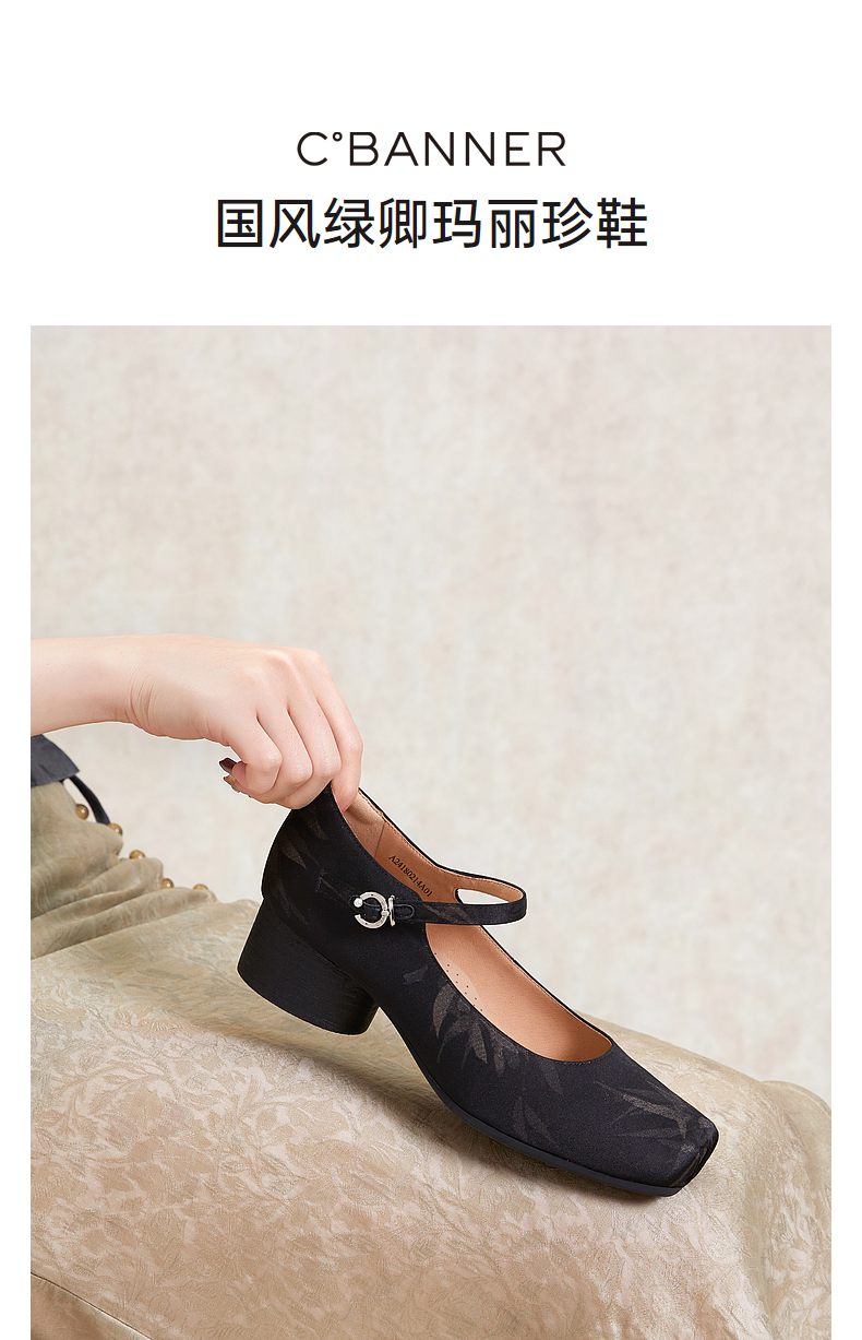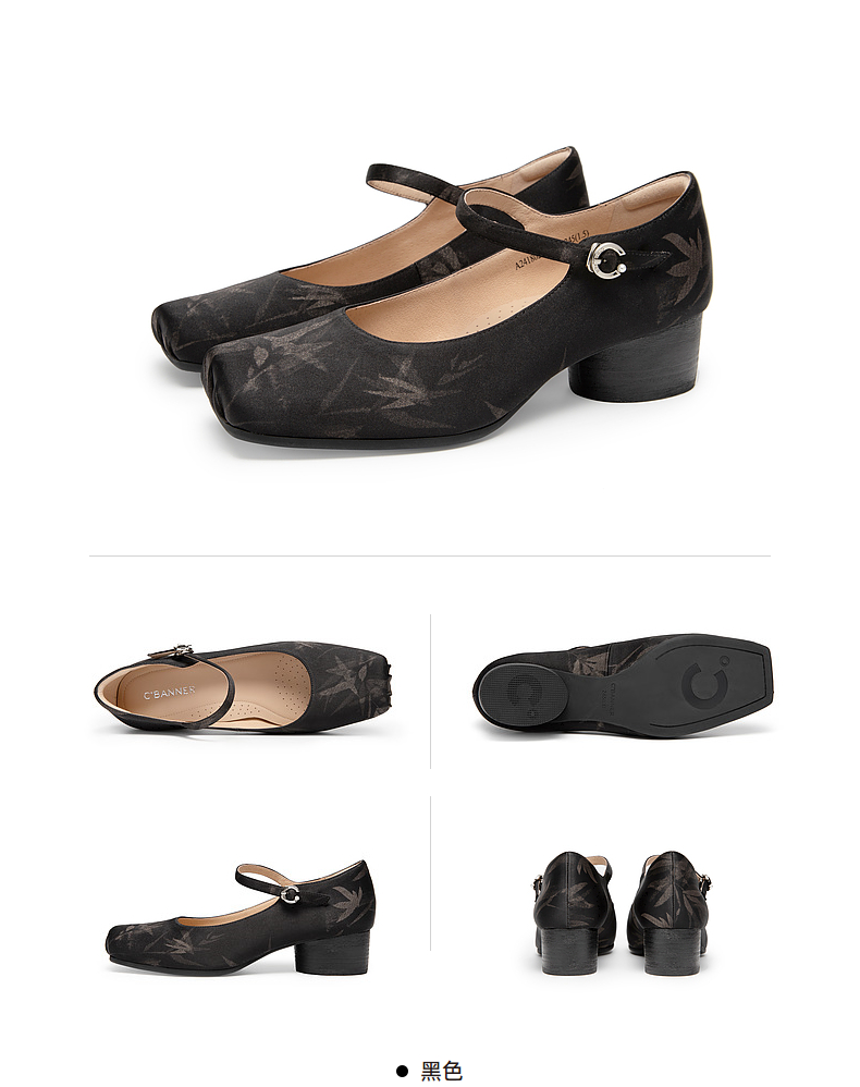【新中式系列】千百度时尚玛丽珍鞋女春季晚晚鞋粗跟中跟单鞋新中式鞋子A24180214