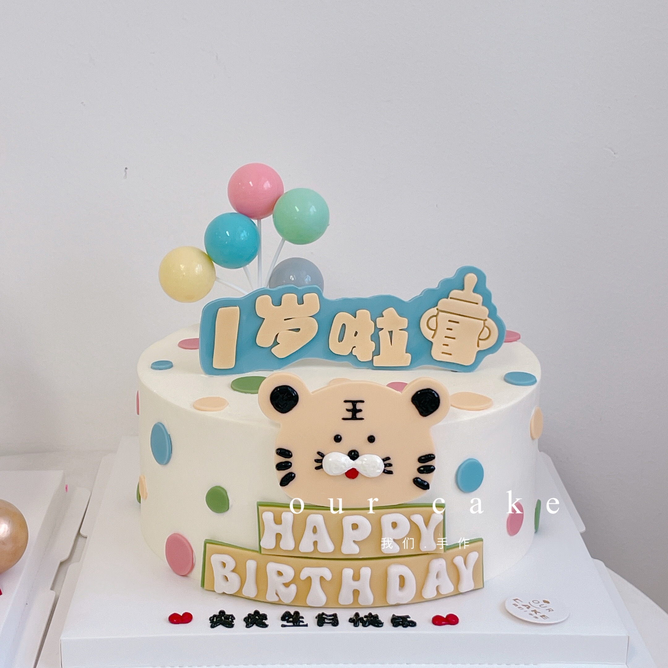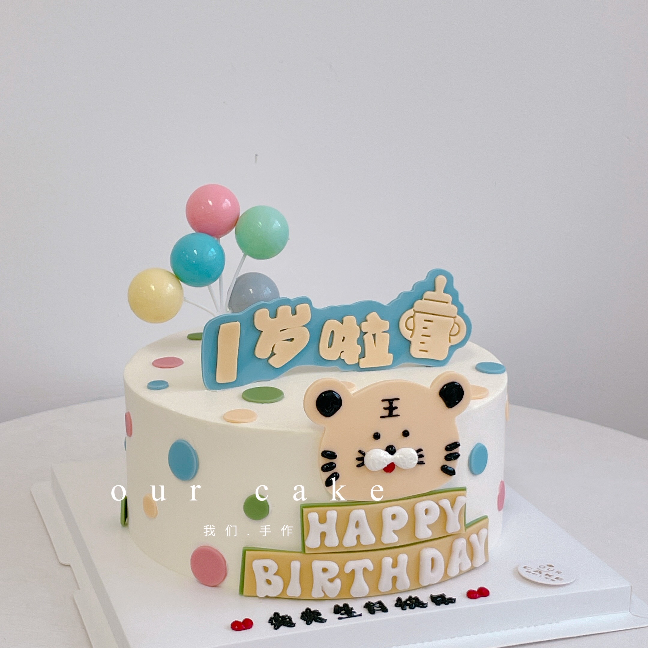 小老虎头周岁翻糖蛋糕(气球颜色随机)-低糖处理无添加