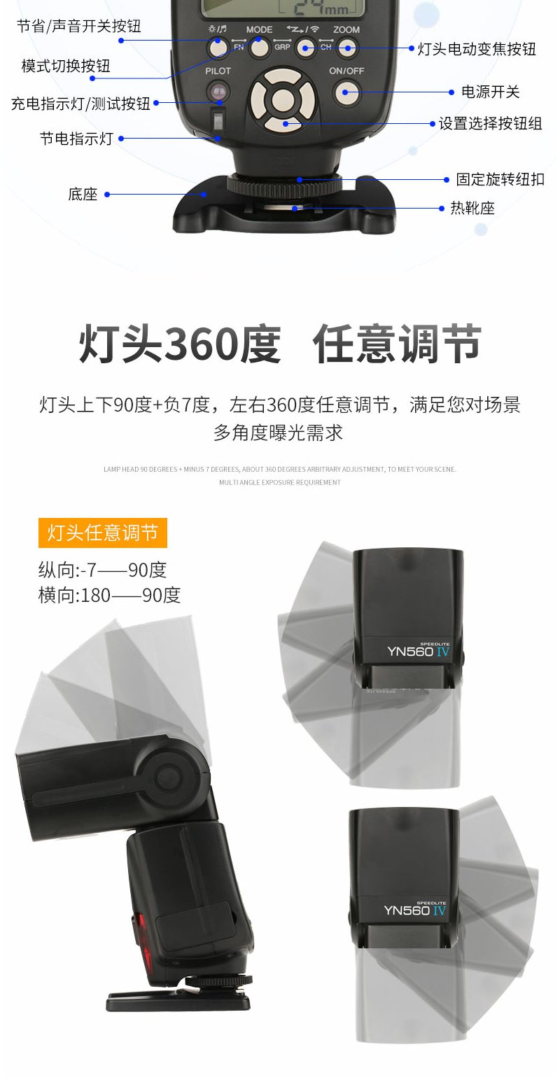 永诺 YN560IV 通用单反相机闪光灯 佳能/尼康/宾得/索尼 机顶外置外拍热靴闪光灯