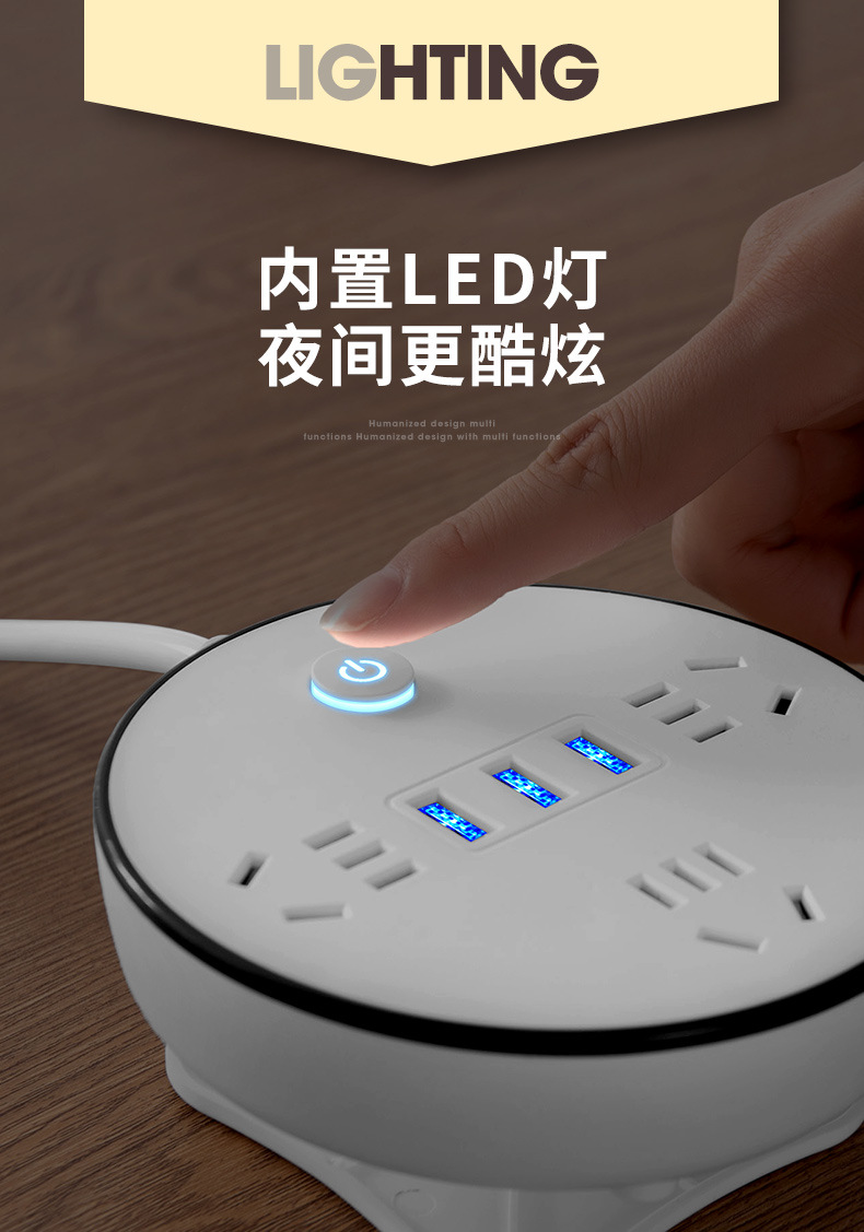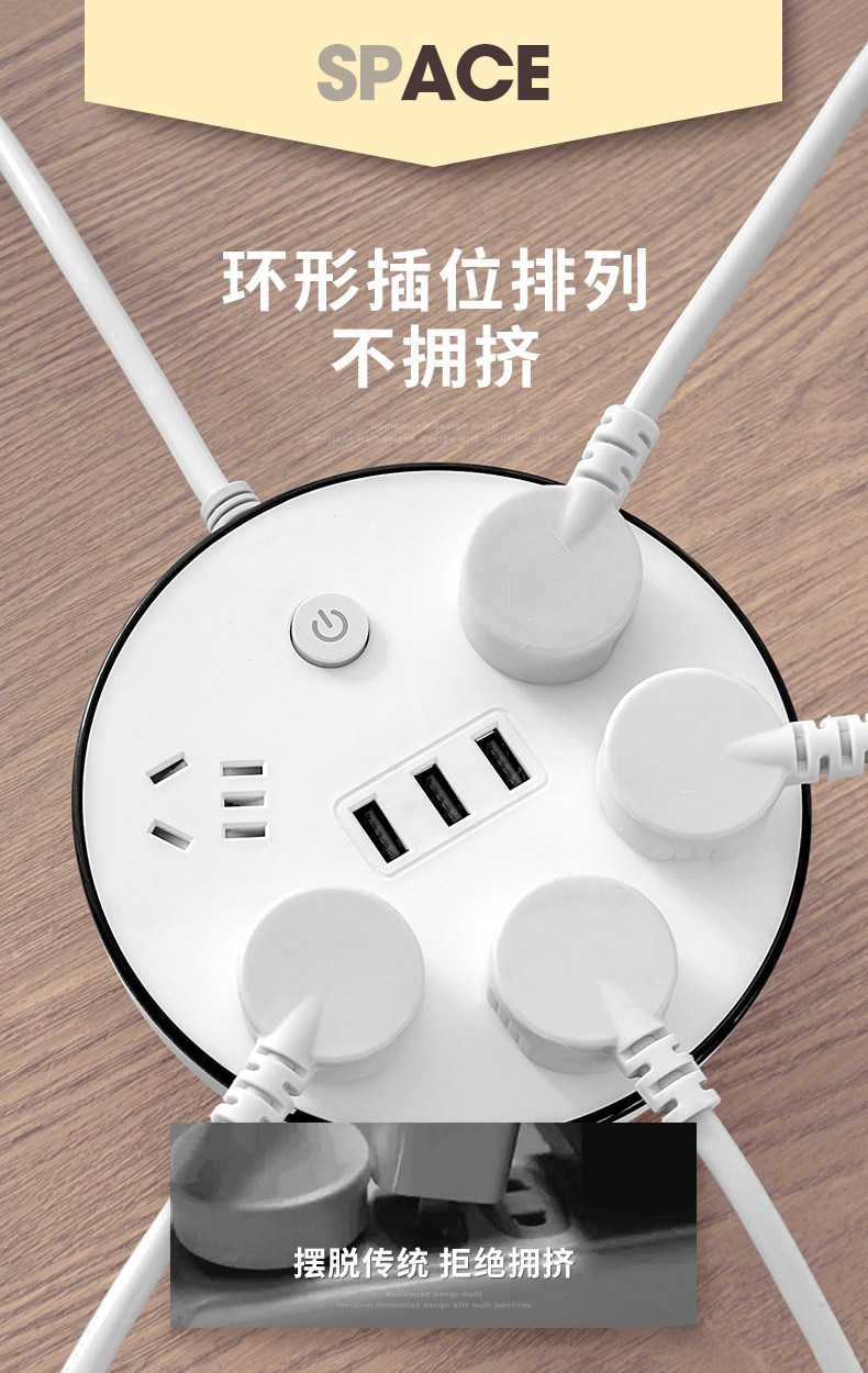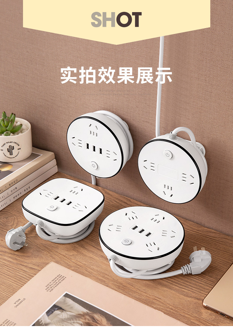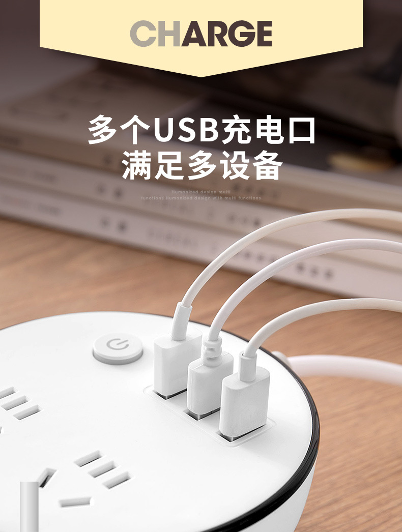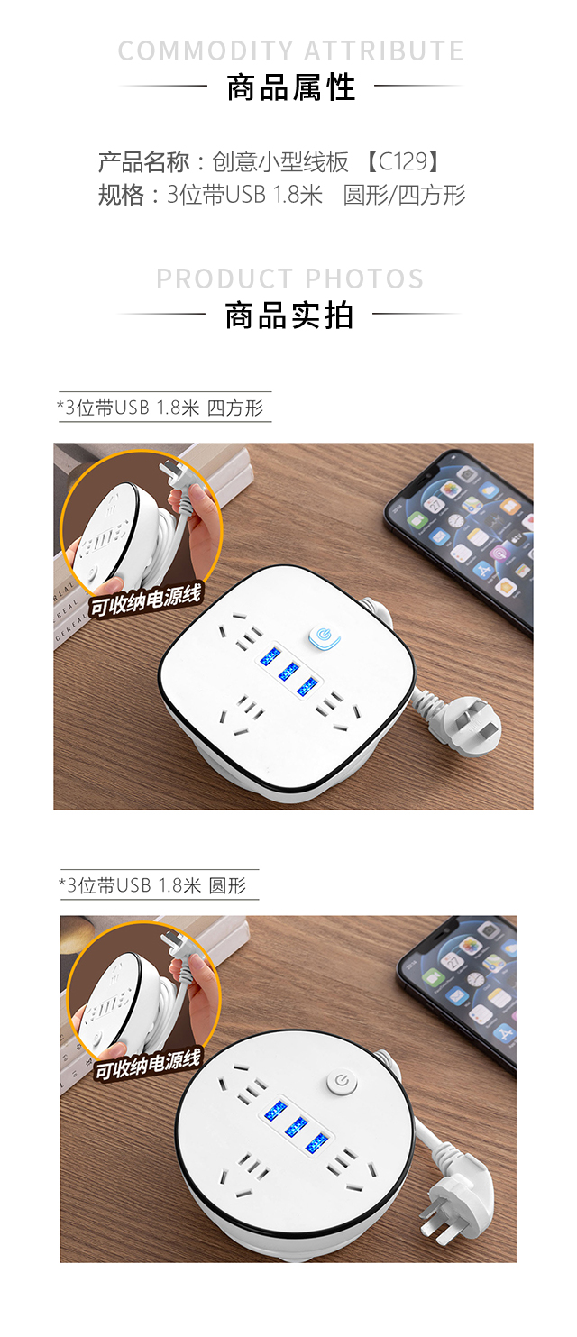 【限时折扣】创意小型线板 【C129】3位带USB 1.8米 圆形/四方形