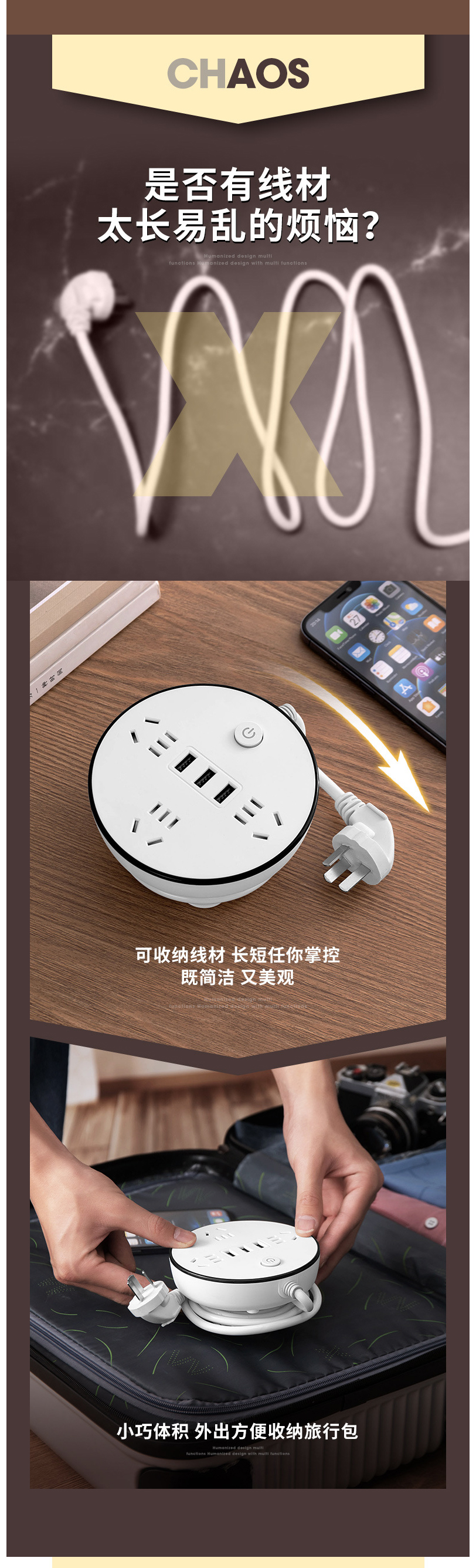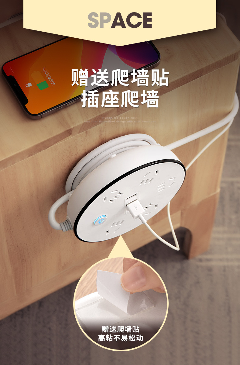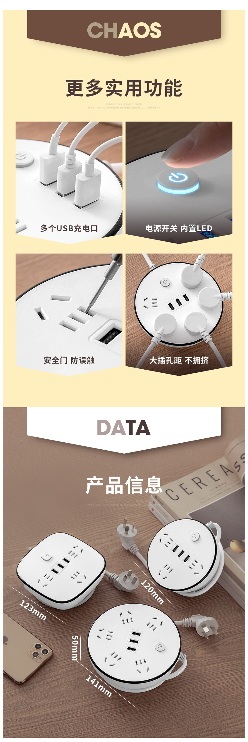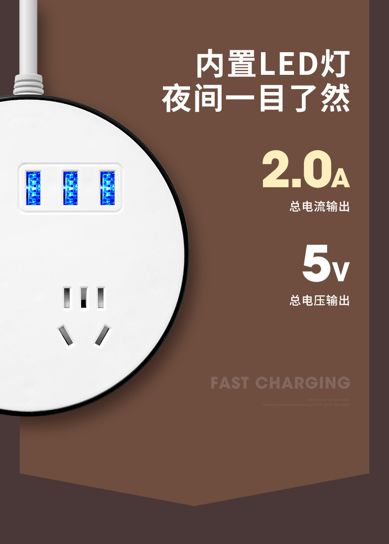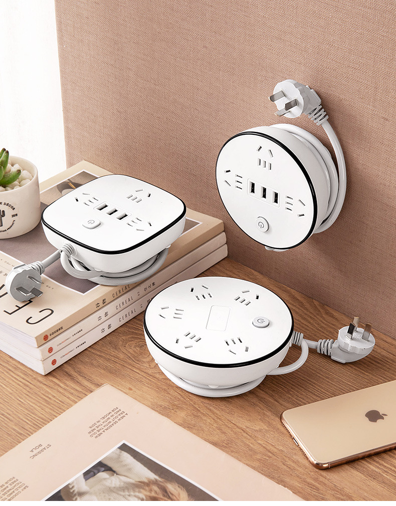 【限时折扣】创意小型线板 【C129】3位带USB 1.8米 圆形/四方形