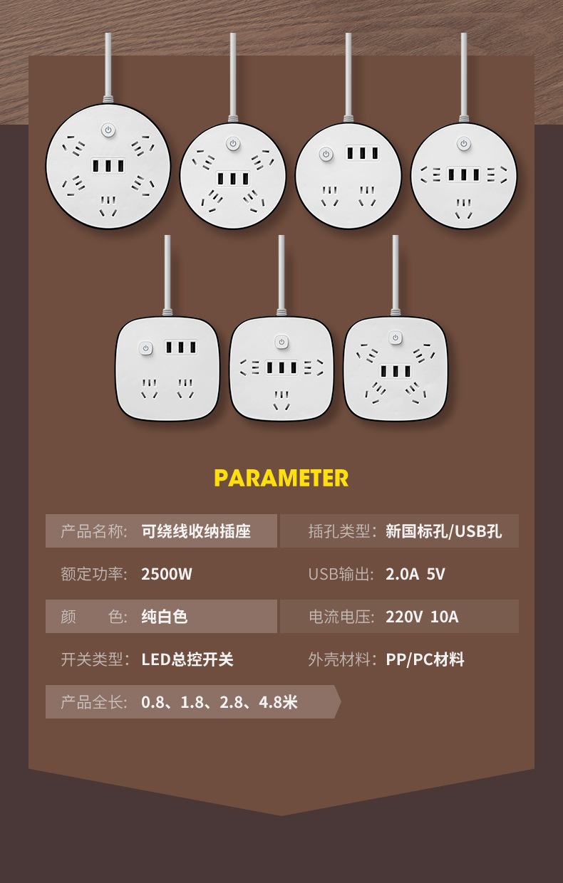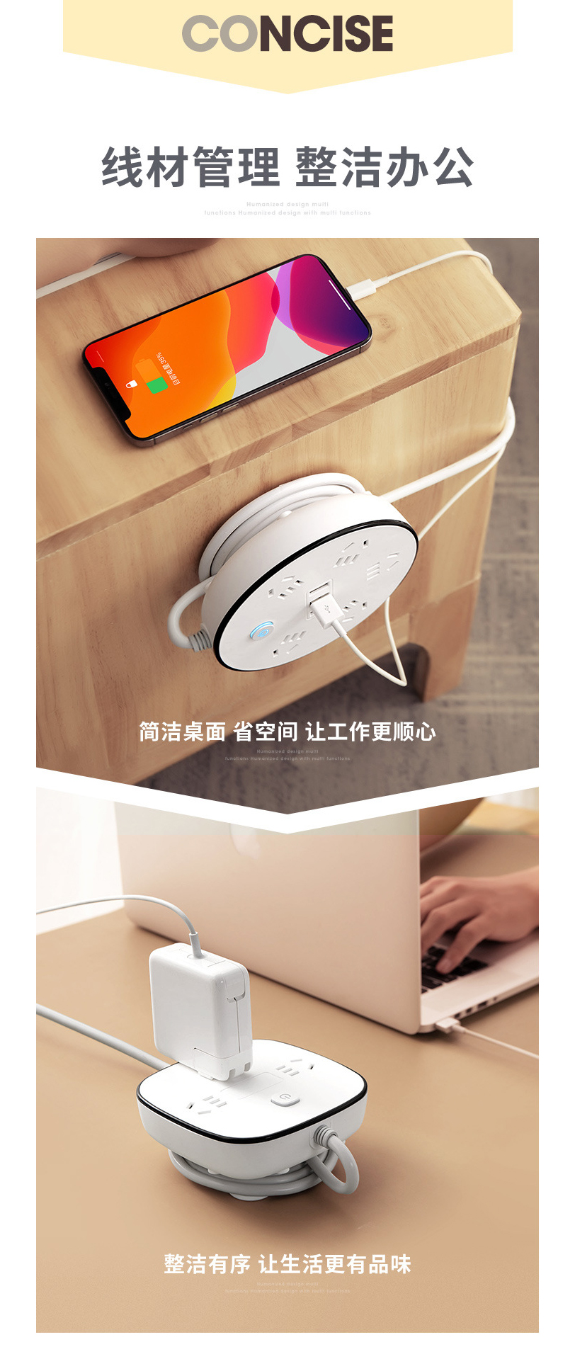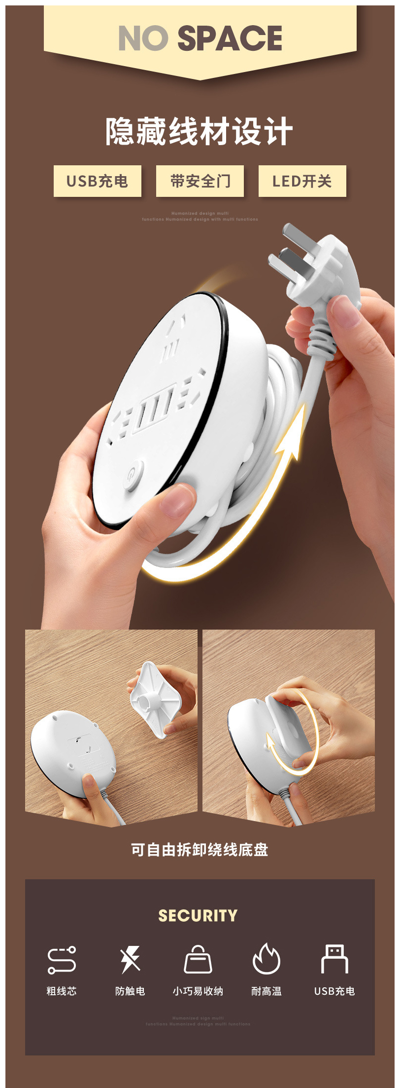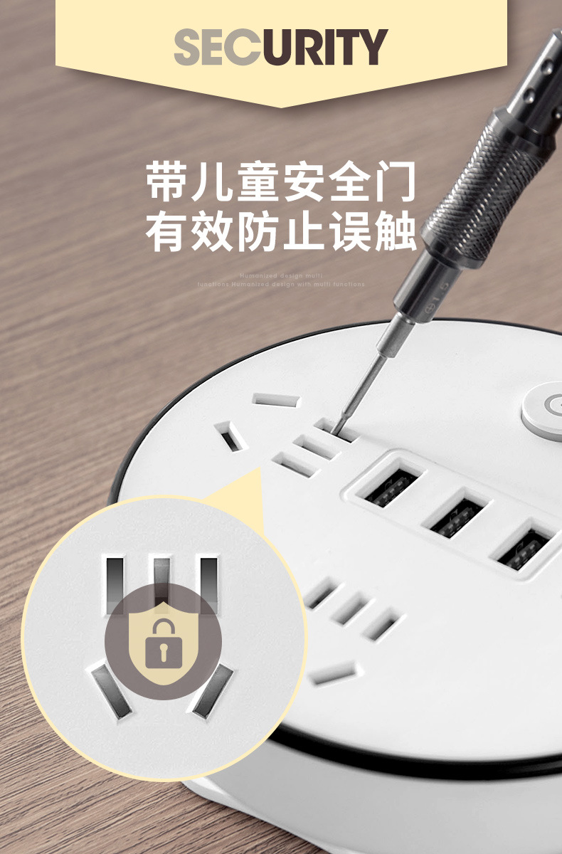 【限时折扣】创意小型线板 【C129】3位带USB 1.8米 圆形/四方形