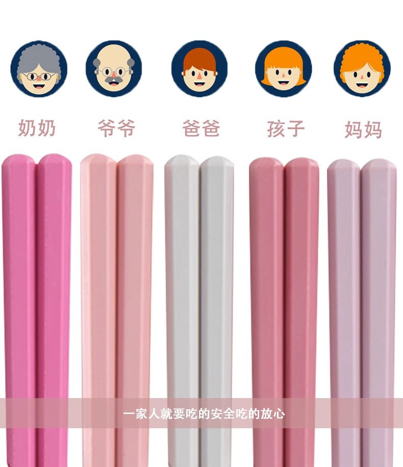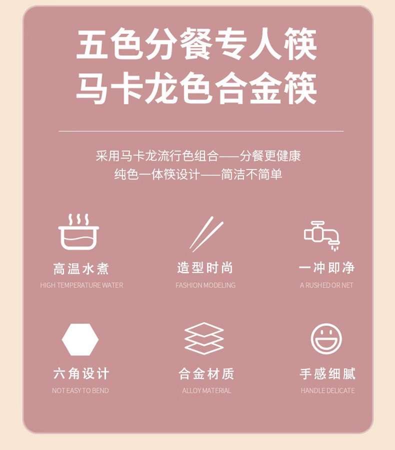 「9.9到手5双」家用合金筷子高颜值PET防滑马卡龙彩色ins一人一筷5双装餐饮用具