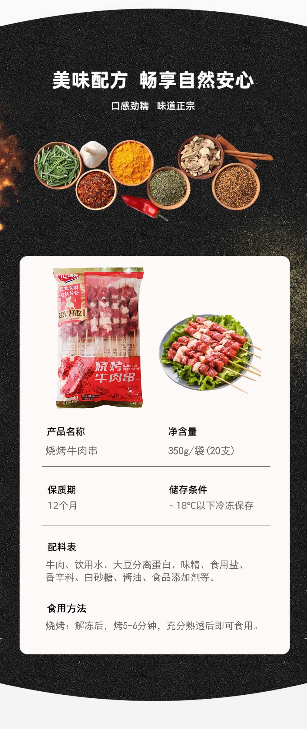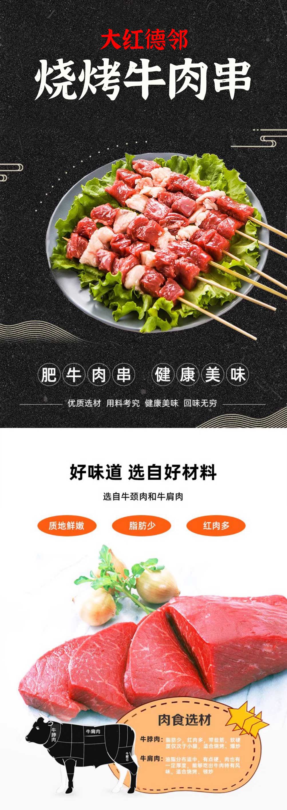 大红德邻烧烤牛肉串 350g/袋(20支) 10袋/件