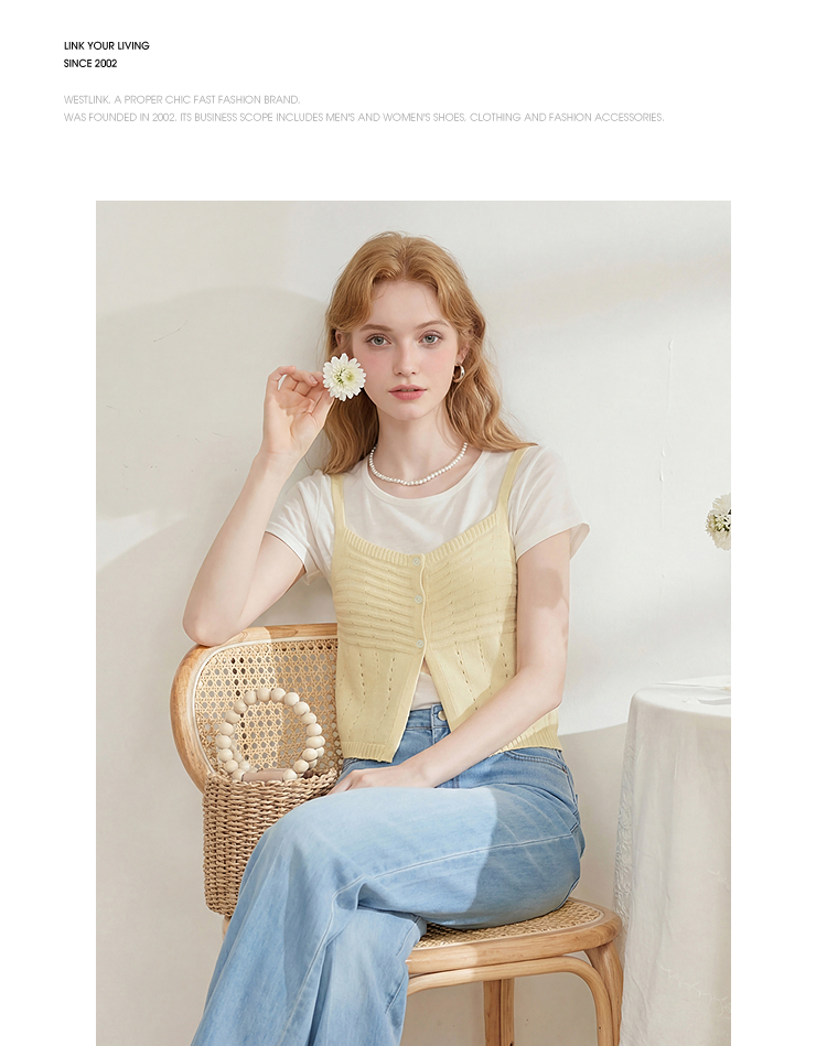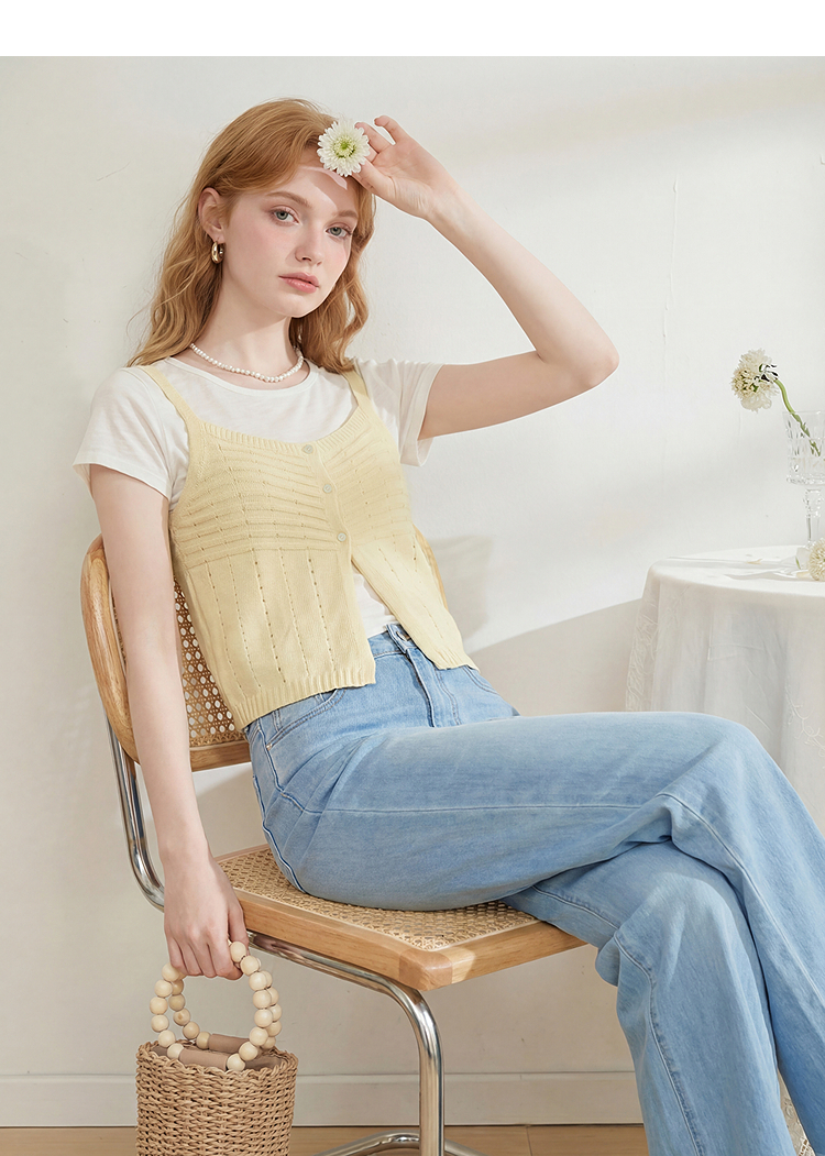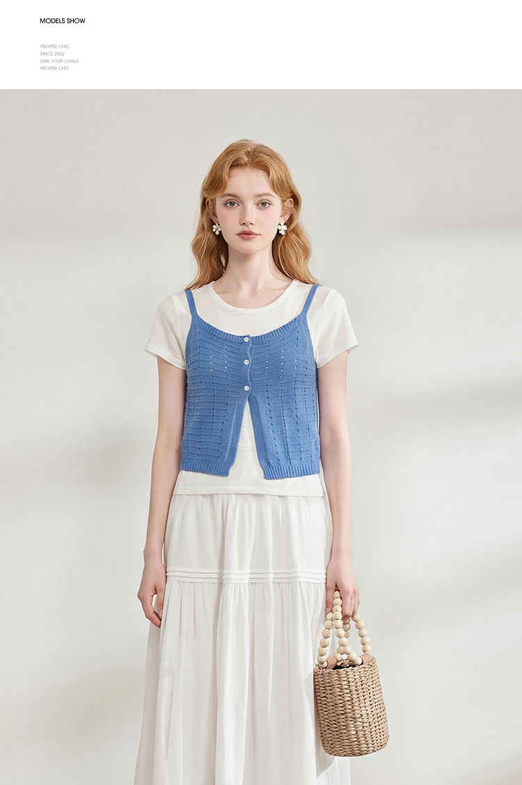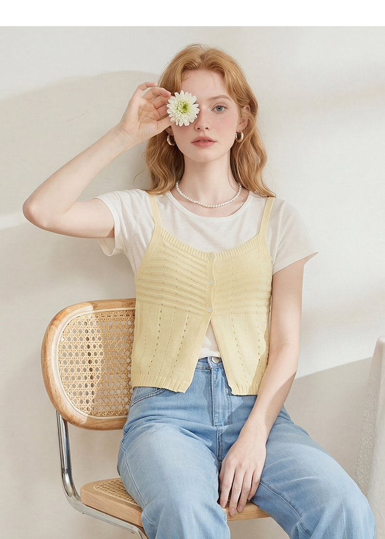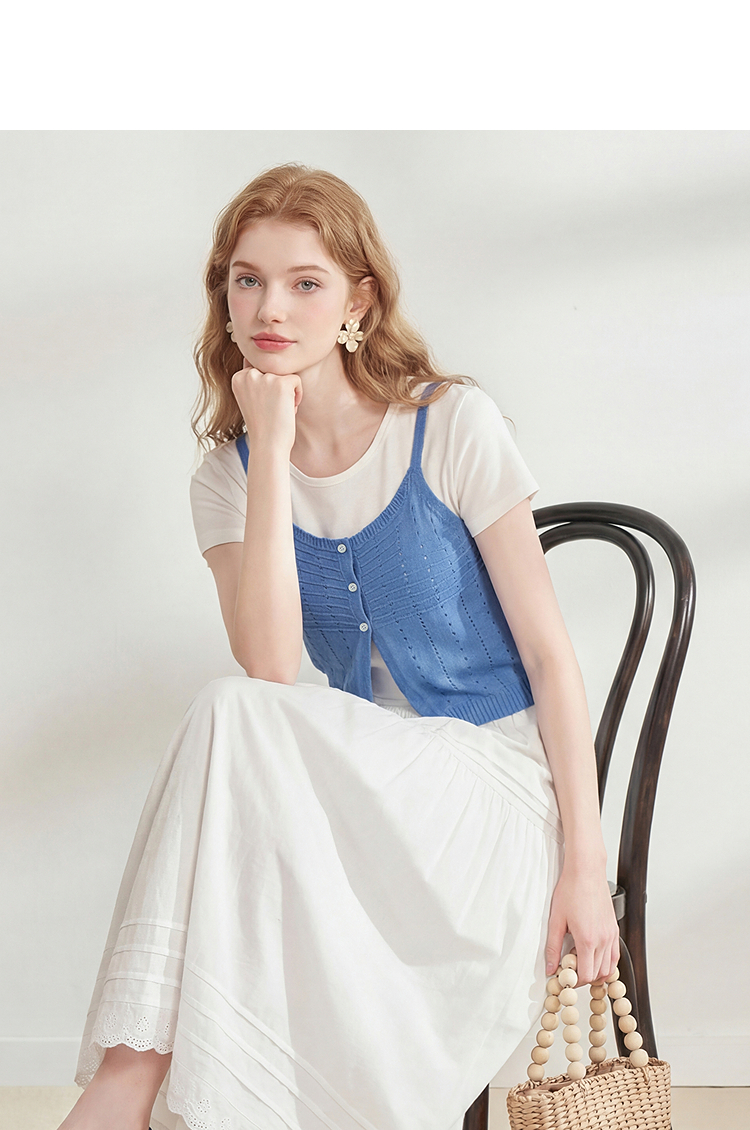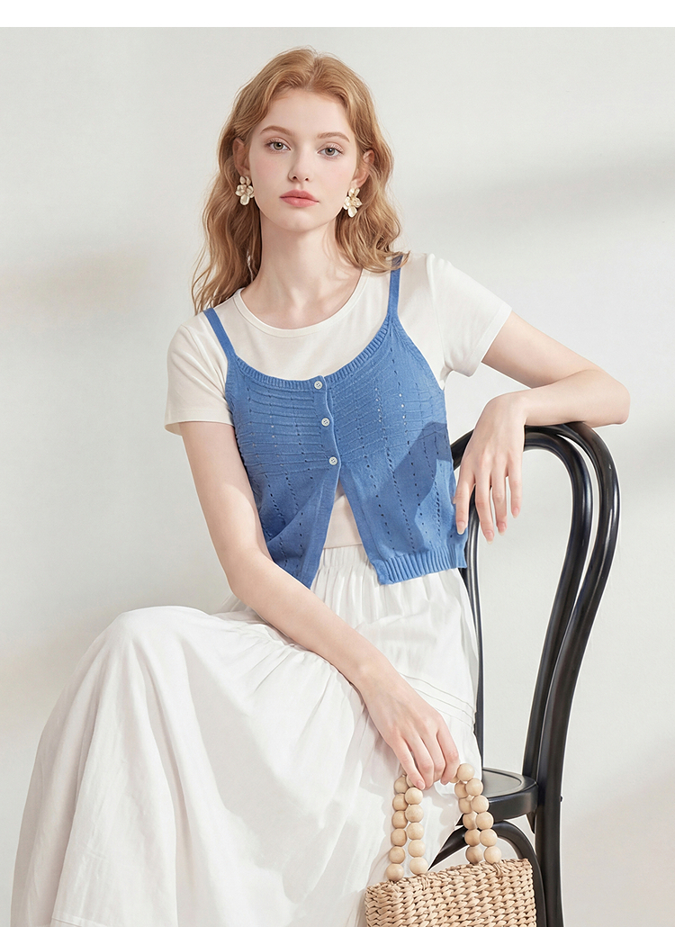 西遇温柔风镂空针织吊带背心女2026夏新款薄叠穿两件套马甲上衣H0060244
