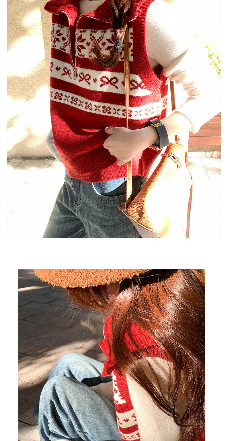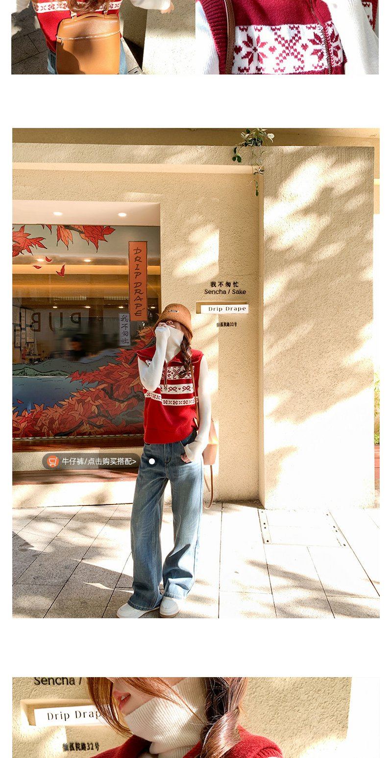 <曾小咸推荐>3.2现货秒杀!微信超特价!韩系红色翻领针织马甲 日常189.99 立减100 秒杀89.99!