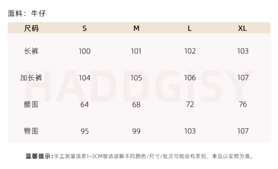 牛仔裤尺寸