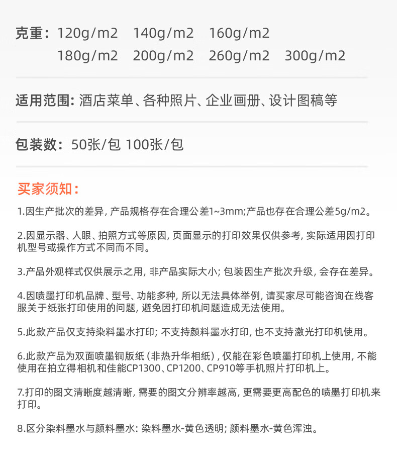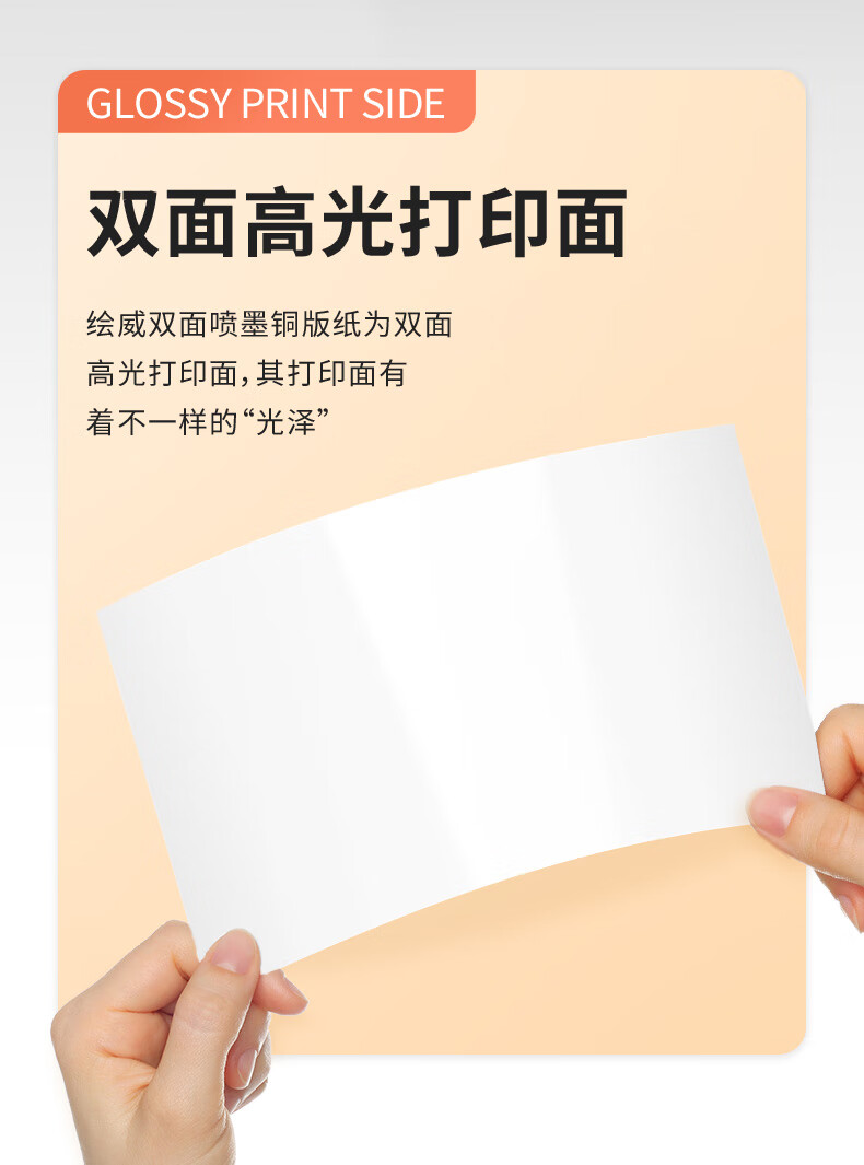 绘威双面高光喷墨铜版纸白卡名片彩喷喷墨打印高光相纸铜板纸照片纸相片纸 200g A4 50张/包