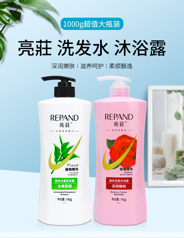 亮荘1L洗发水沐浴露护发素套装男女大容量酒店宾馆浴场家庭装正品