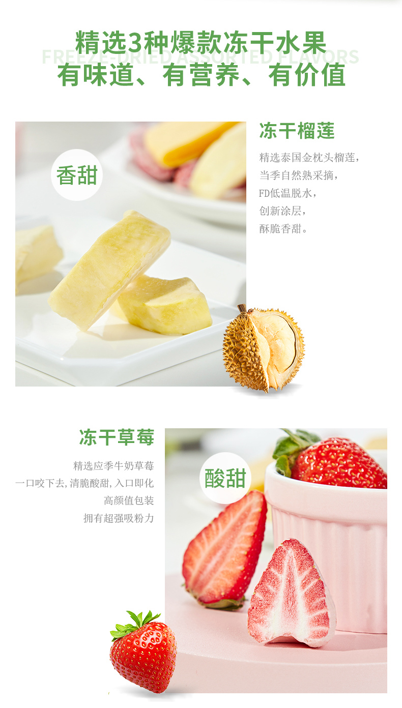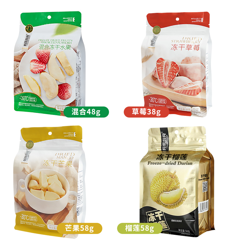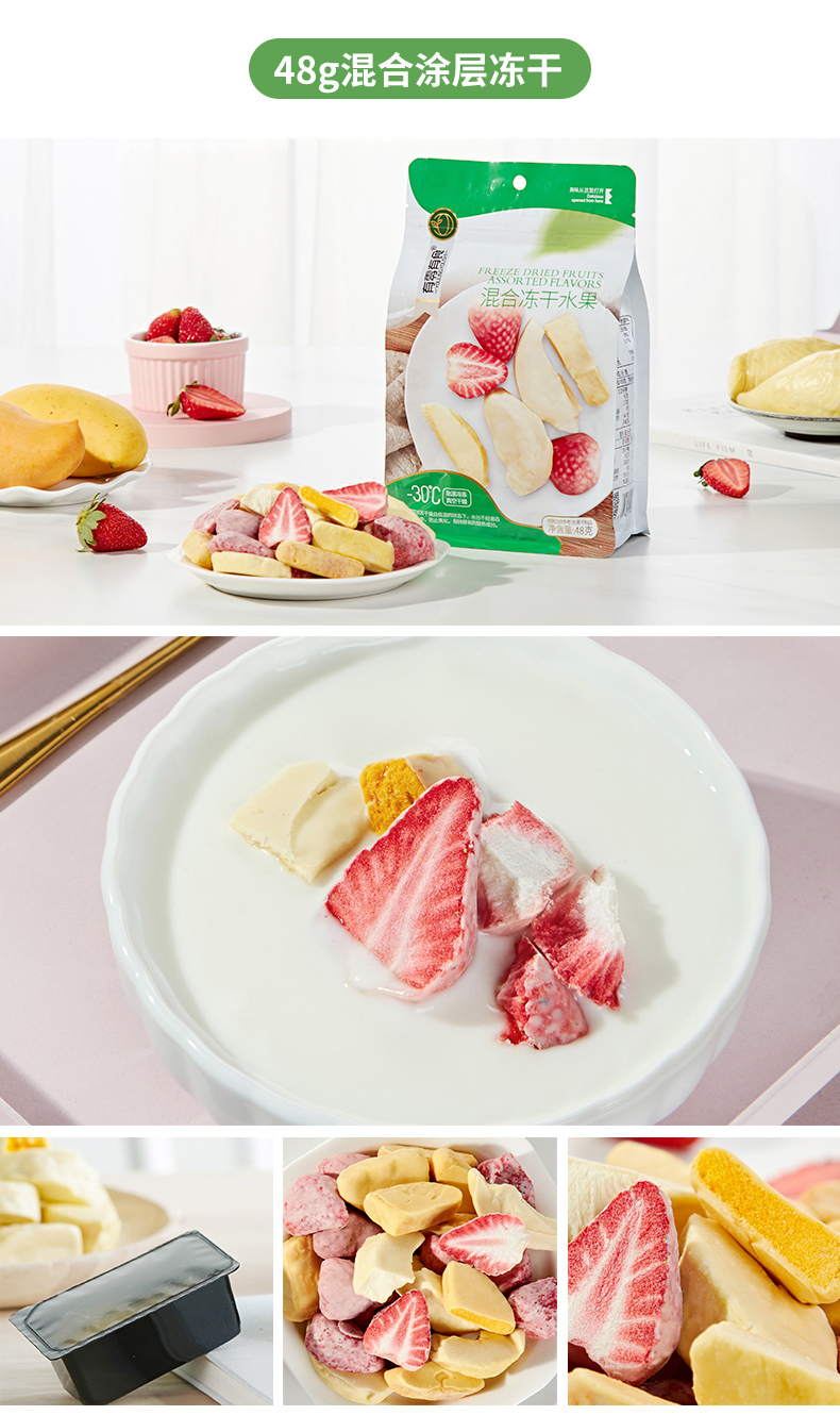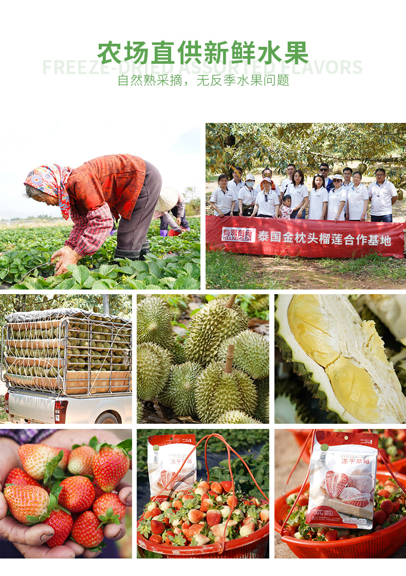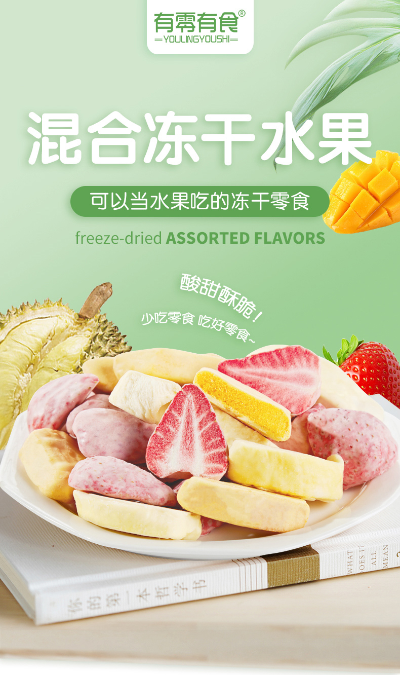 KJ 有零有食 草莓榴莲芒果混合冻干水果干混合装