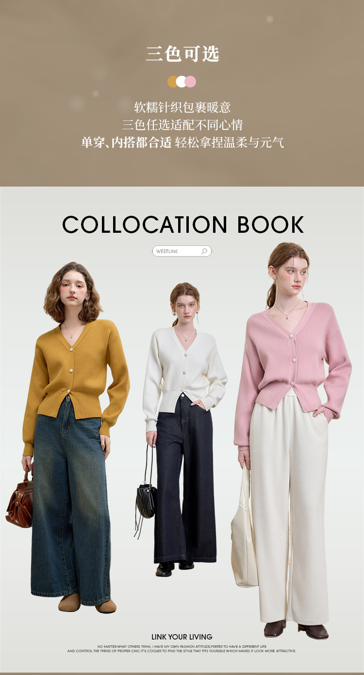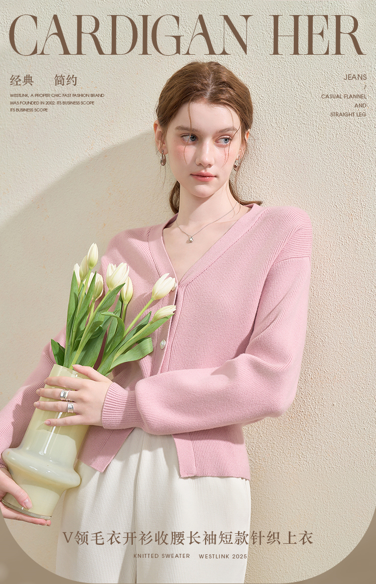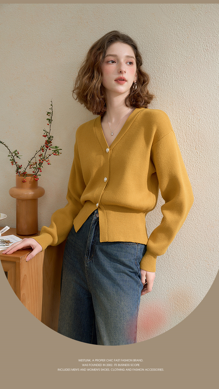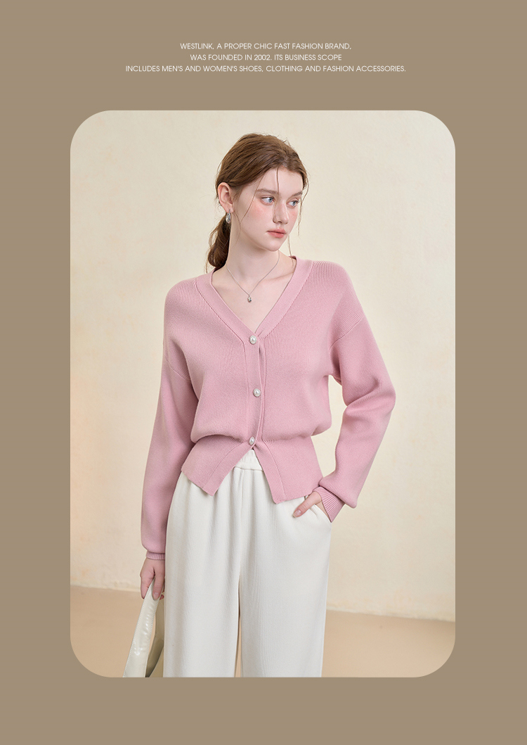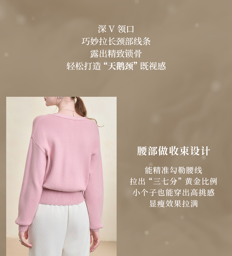 西遇法式气质V领针织开衫女秋季百搭收腰显瘦毛衣外套上衣V3251237