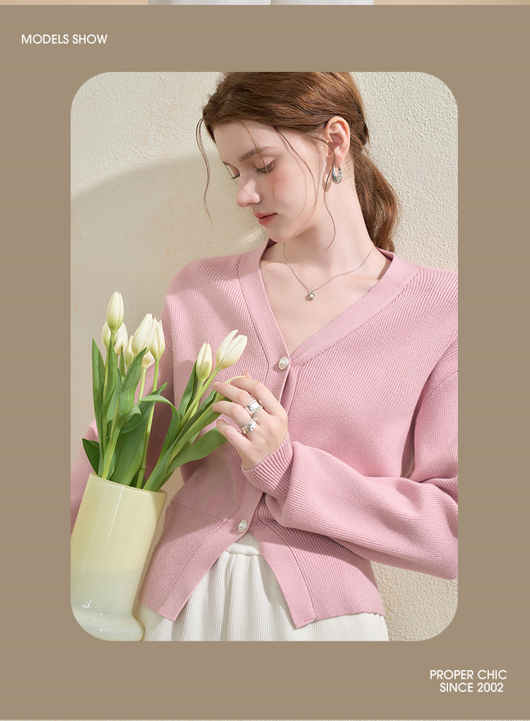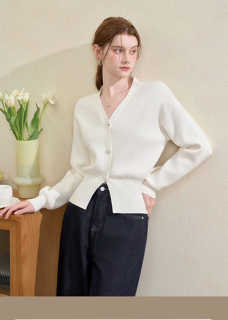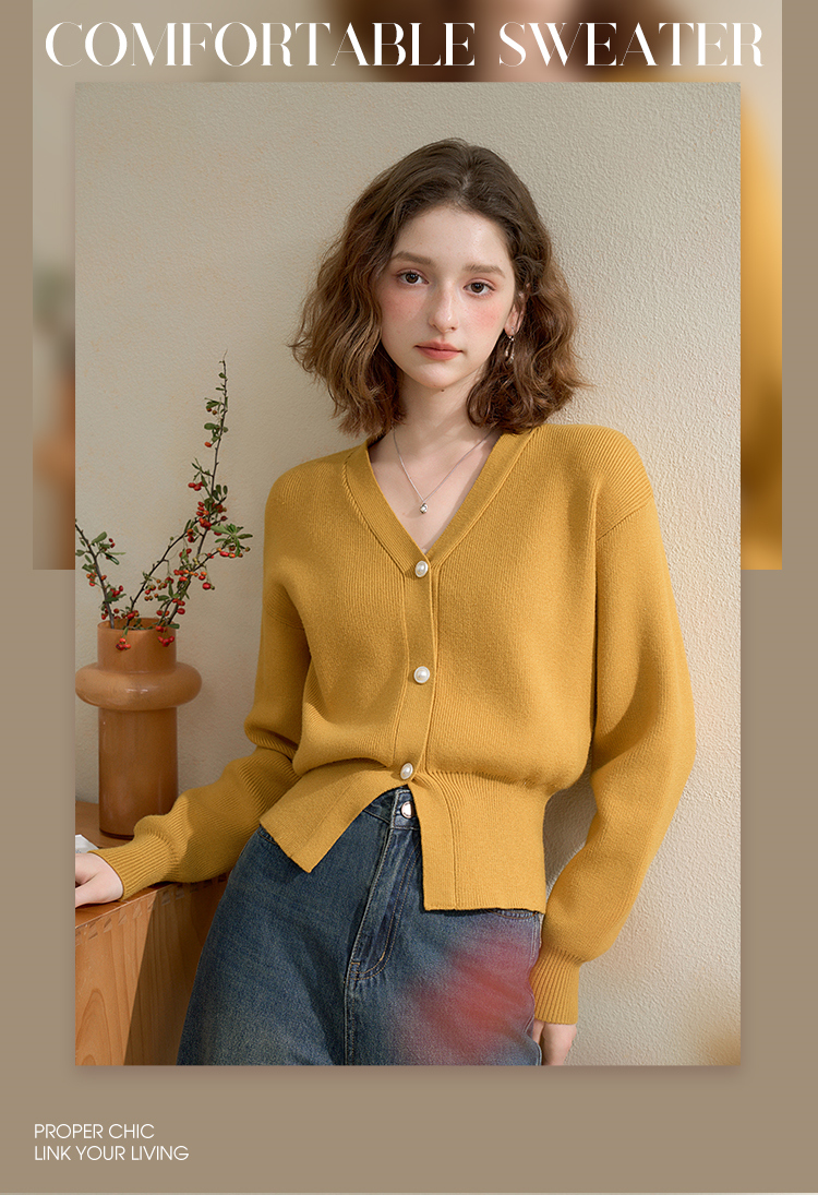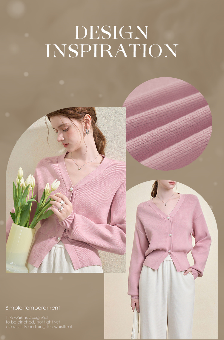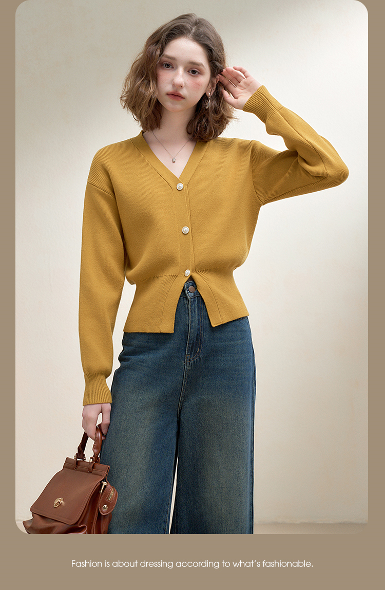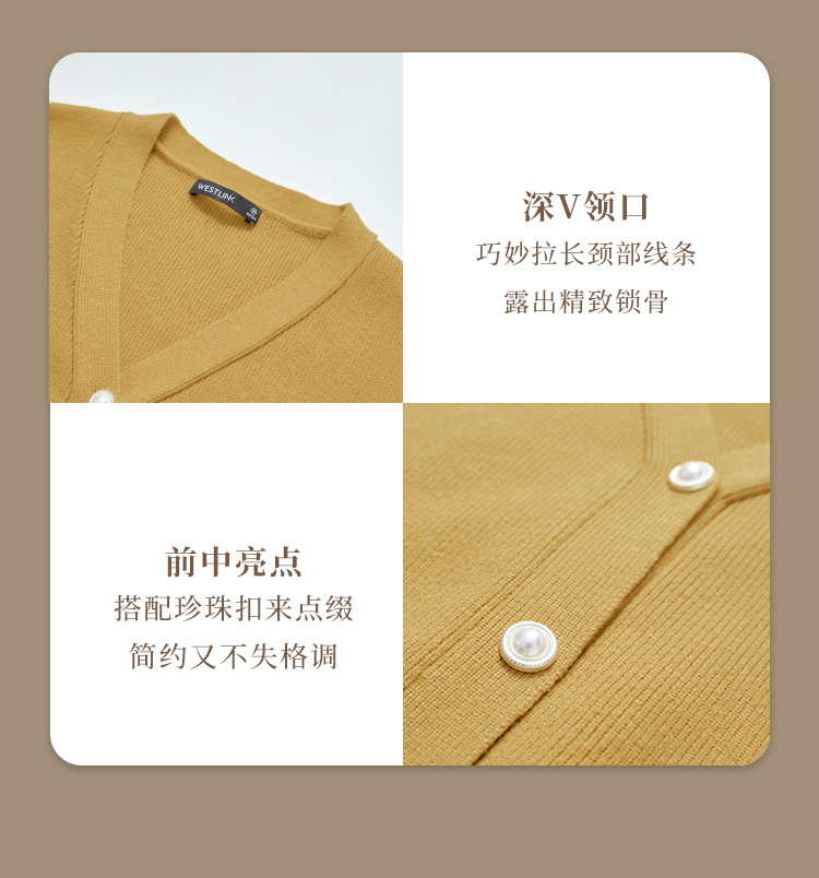 西遇法式气质V领针织开衫女秋季百搭收腰显瘦毛衣外套上衣V3251237