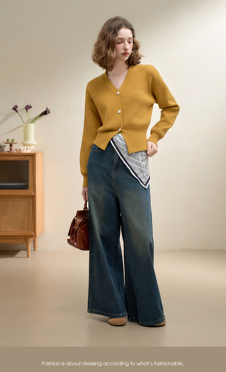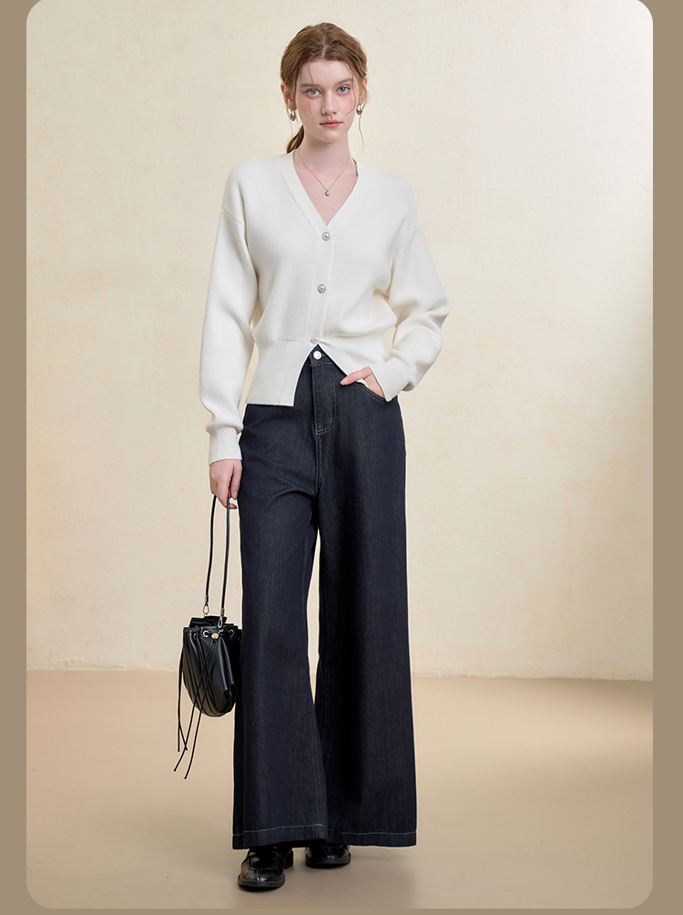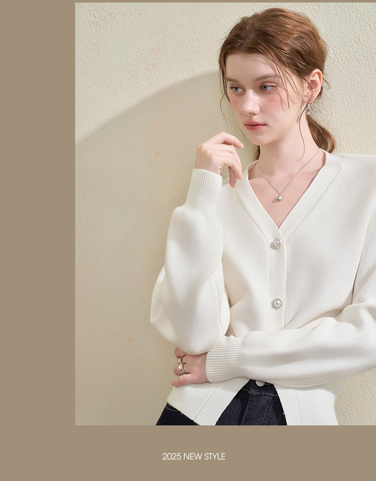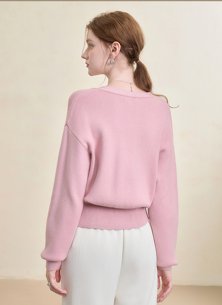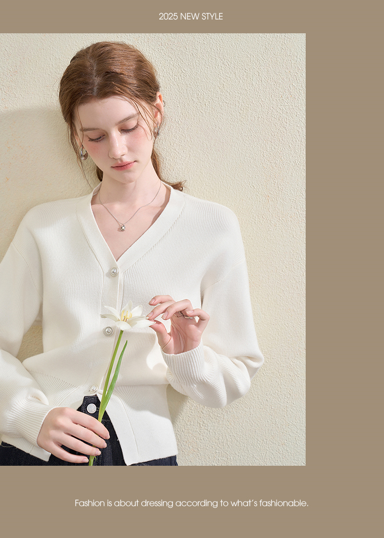 西遇法式气质V领针织开衫女秋季百搭收腰显瘦毛衣外套上衣V3251237