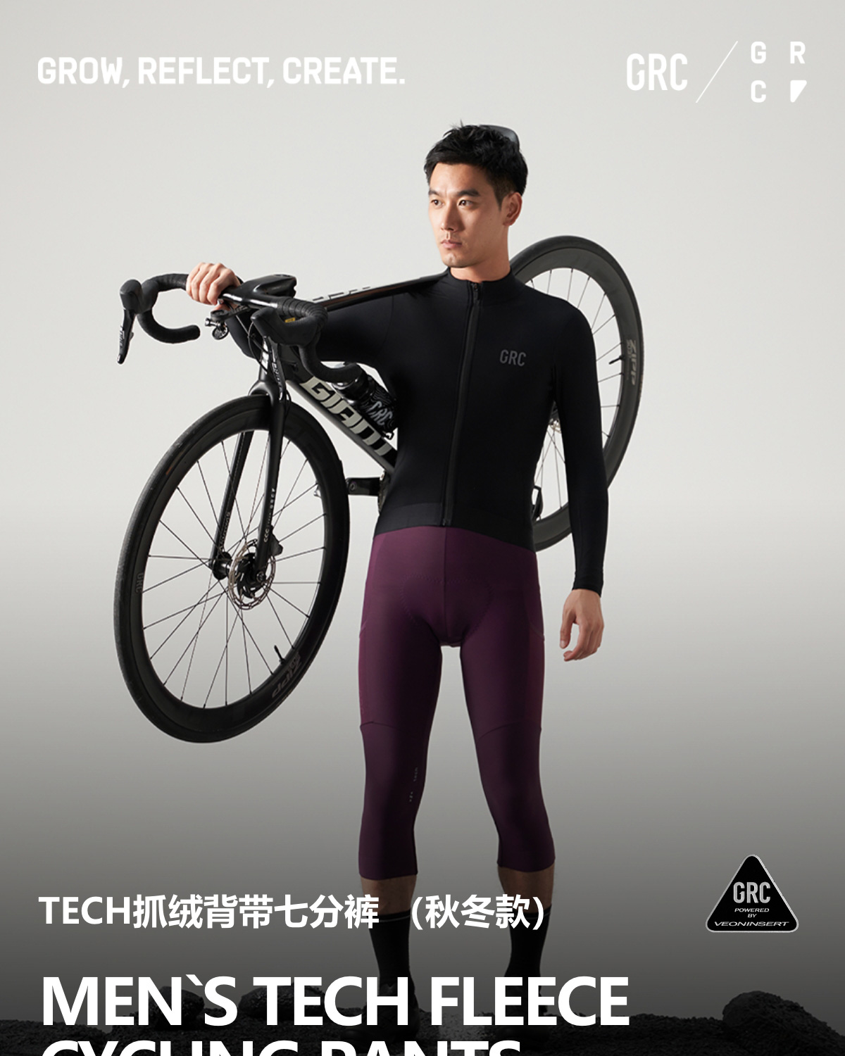 GRC桀骜无尽男士秋冬新款TECH系列抓绒保暖反光骑行背带七分长裤