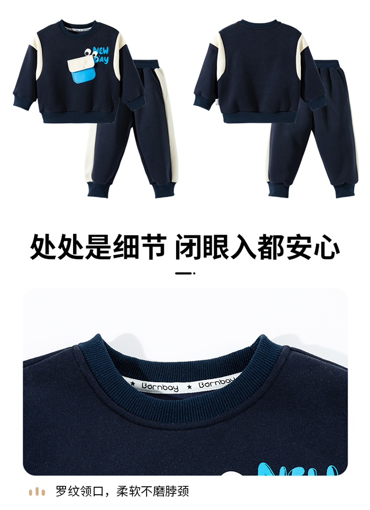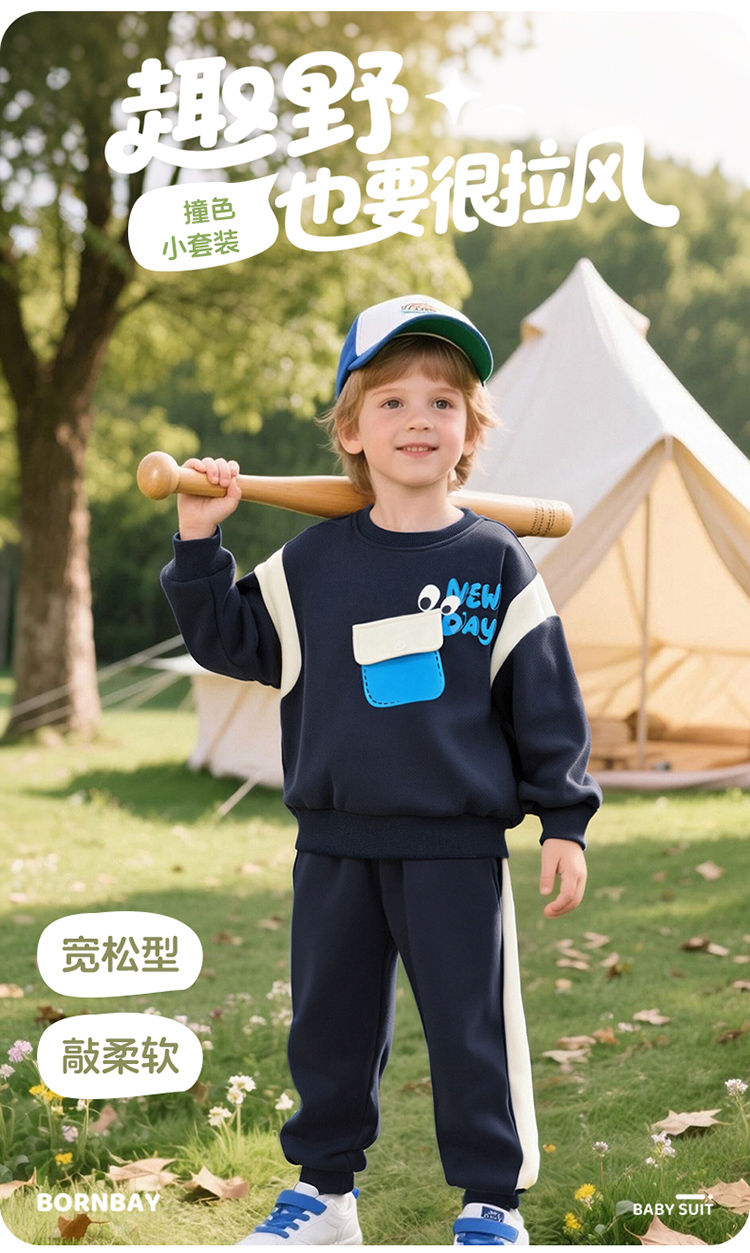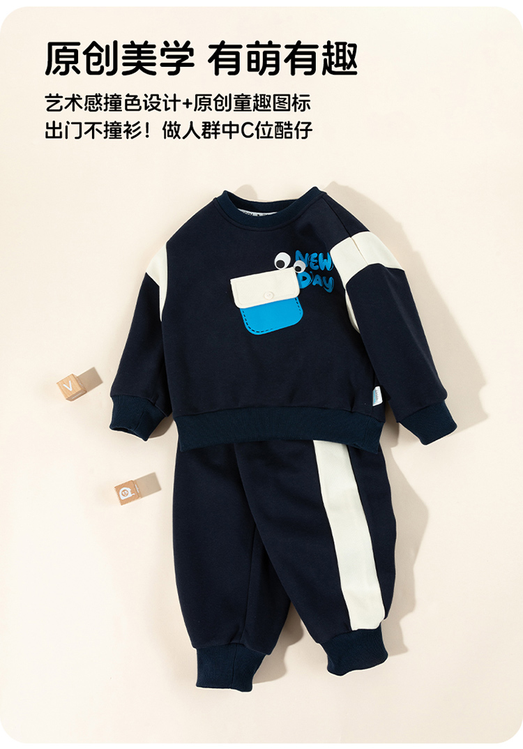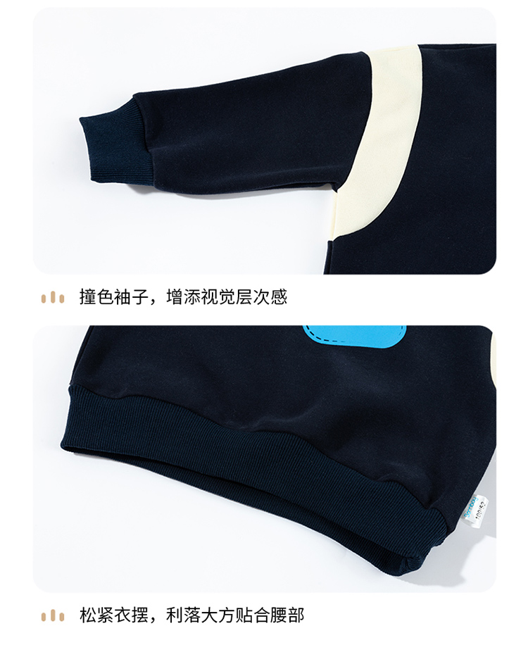 贝贝怡2025春秋新款男童撞色运动休闲套装舒适卫衣卫裤ZB3ET037