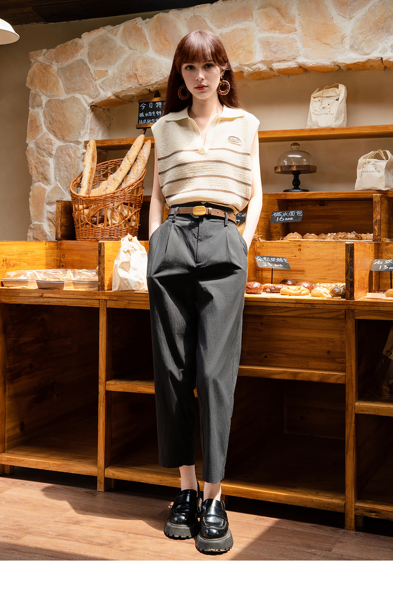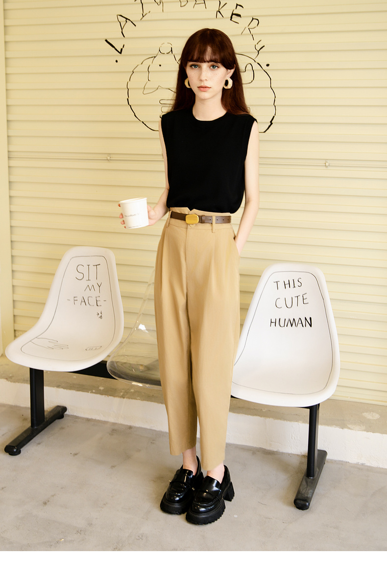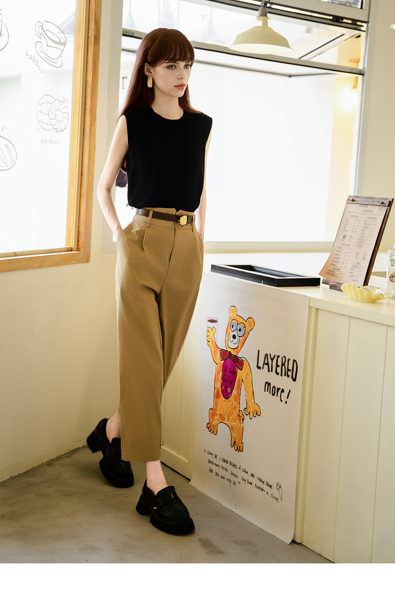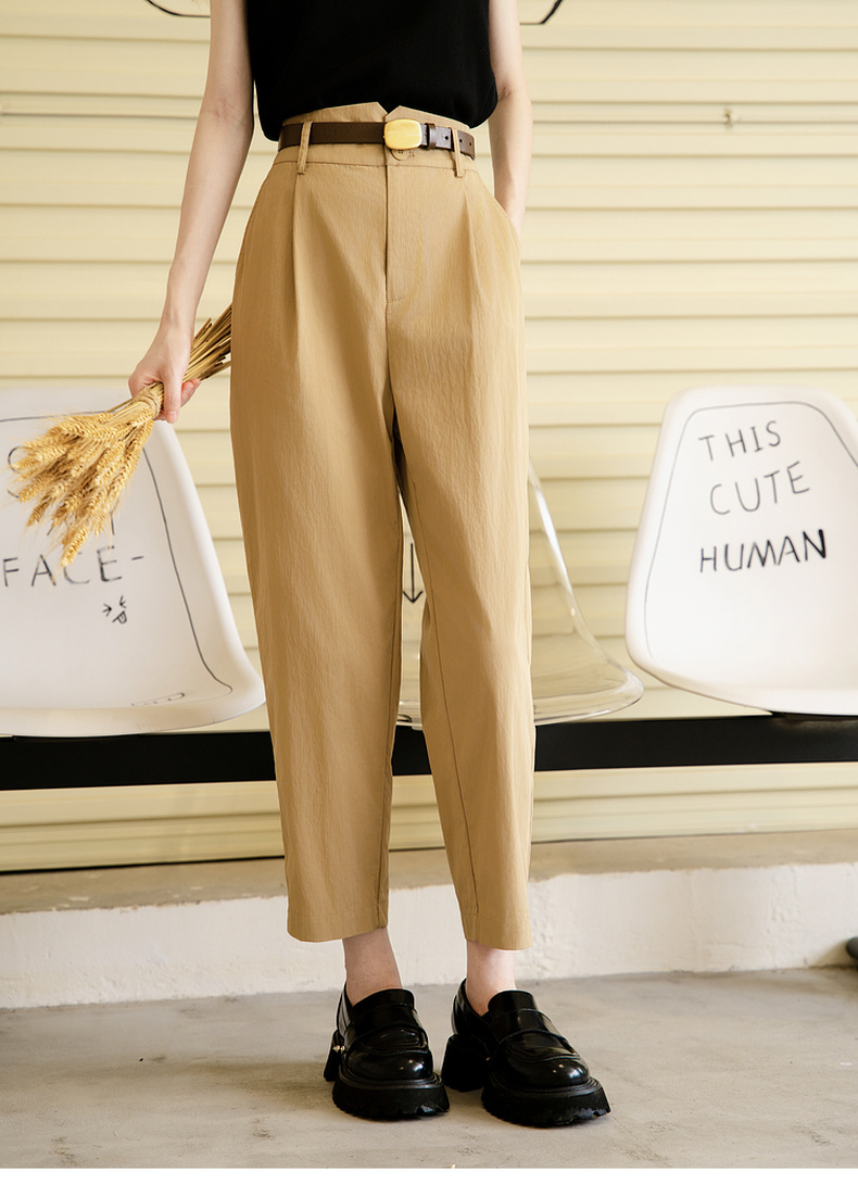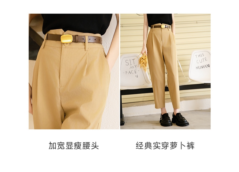 谜底极简西装裤女2025秋新款通勤风高腰锥形九分萝卜裤257MK7715
