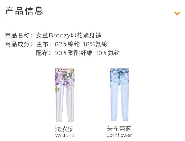 【24年夏新品】moodytiger儿童紧身裤24年春季新款女童运动舒适时尚瑜伽裤42211404