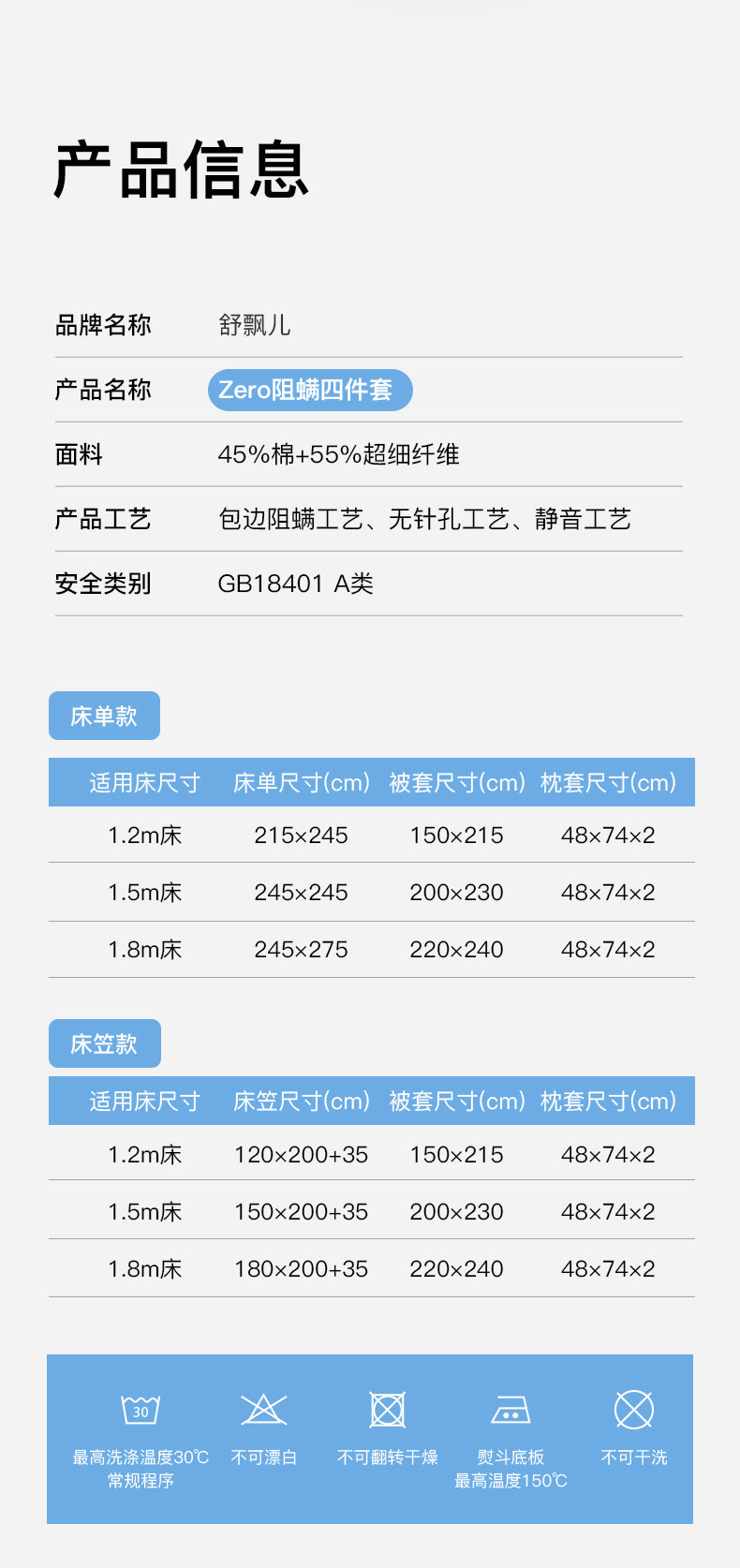 舒飘儿Zero阻螨四件套&Pure阻螨纯棉四件套【佳人严选】