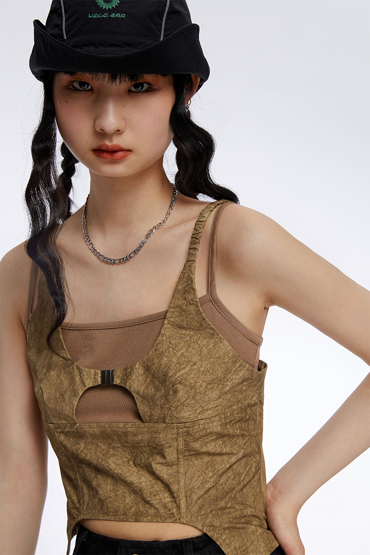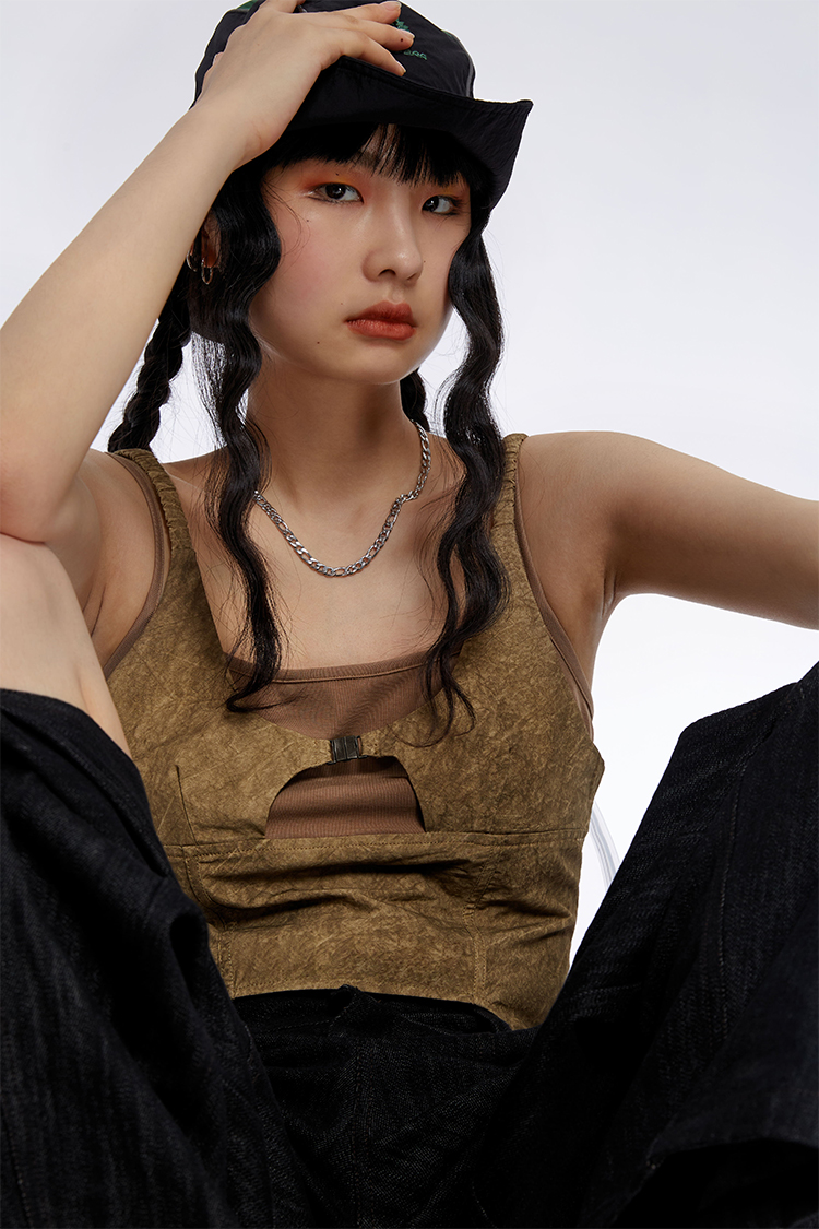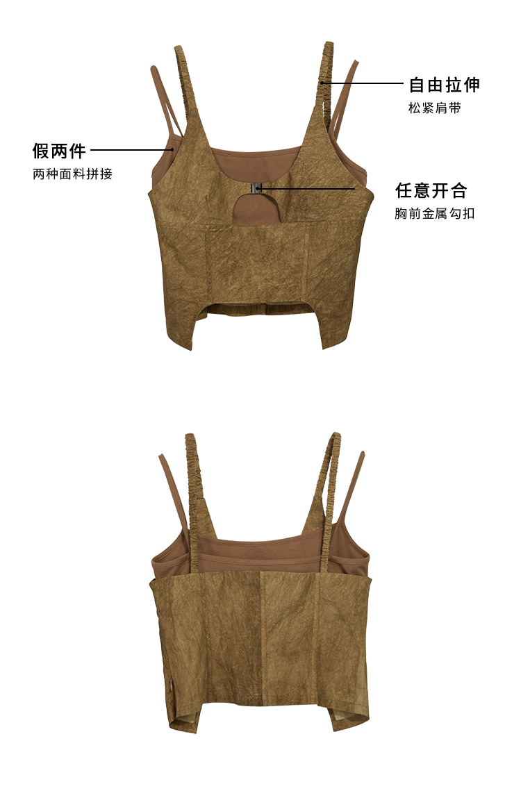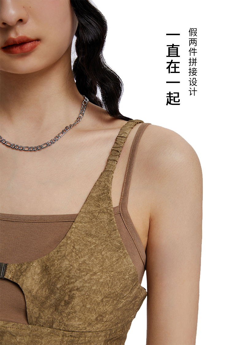 HOLONOMIC 原创拼接假两件修身短款设计感小众外穿吊带背心
