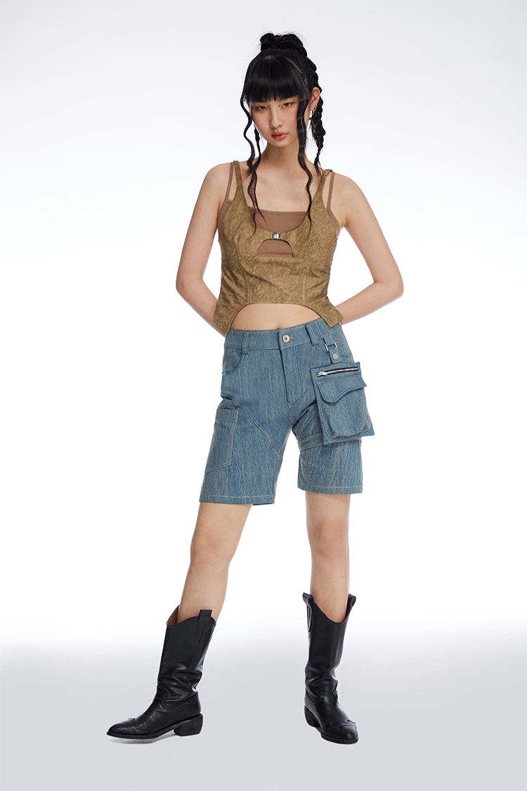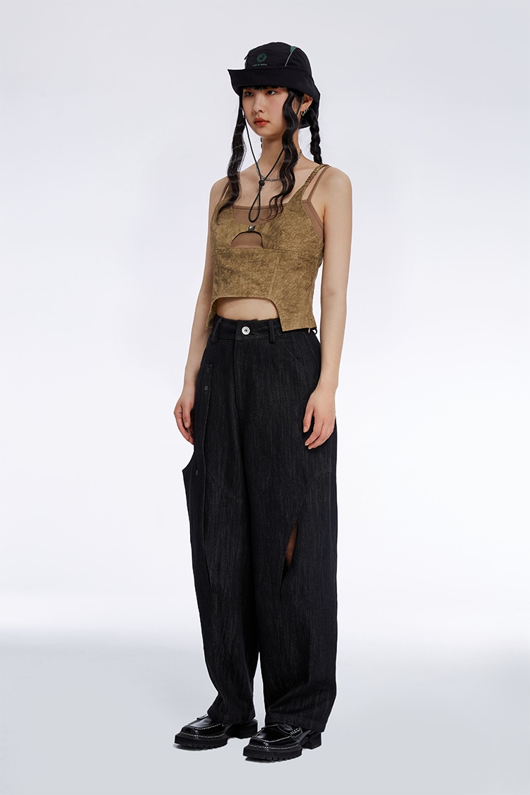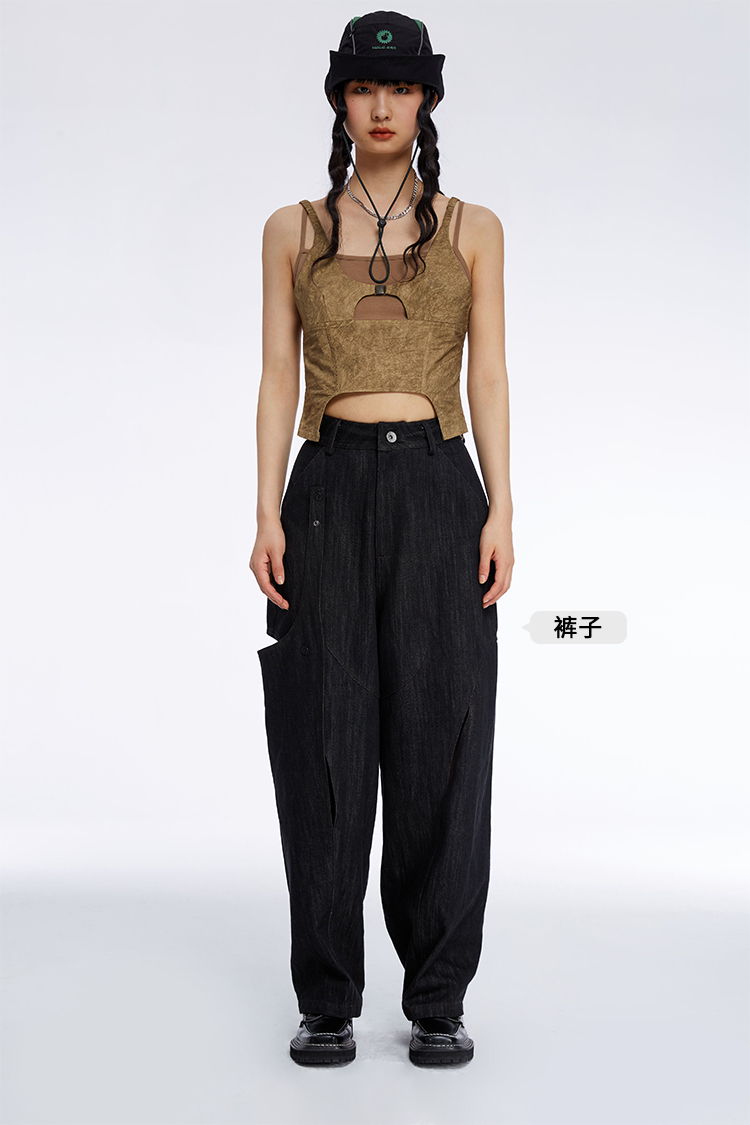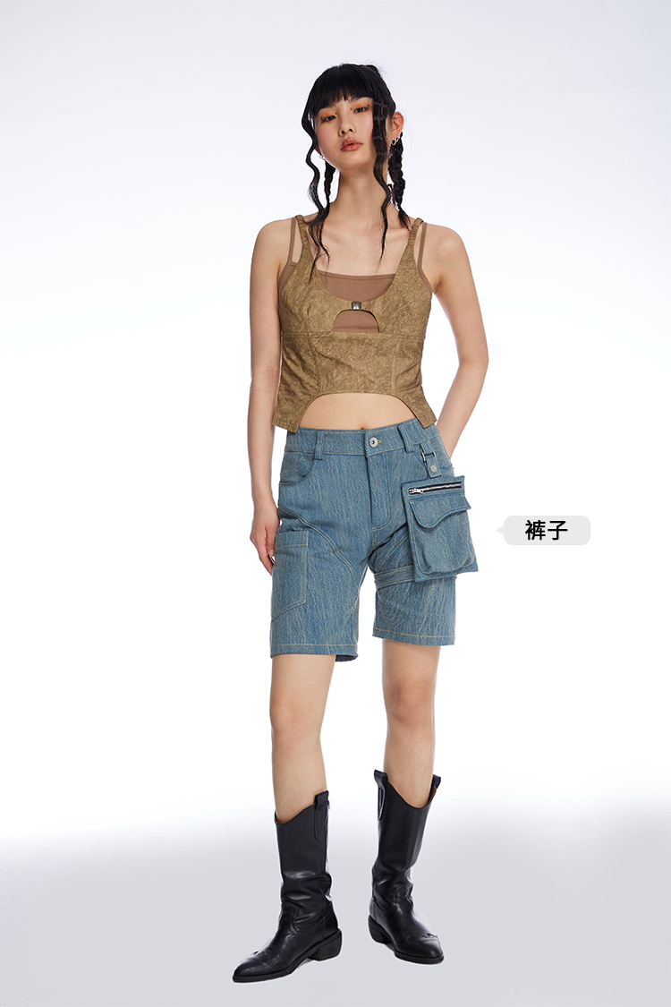 HOLONOMIC 原创拼接假两件修身短款设计感小众外穿吊带背心