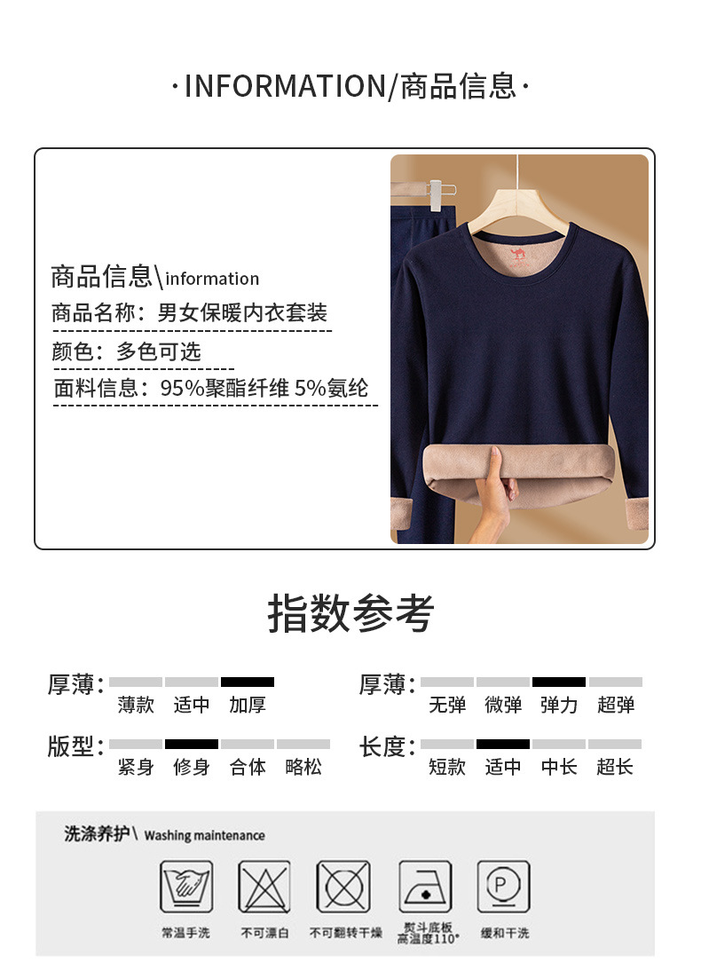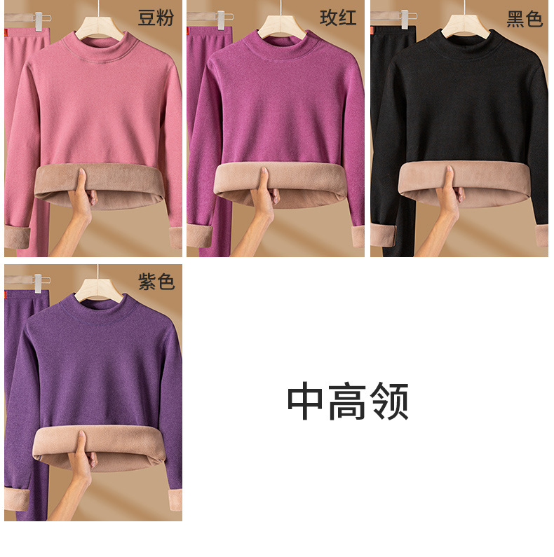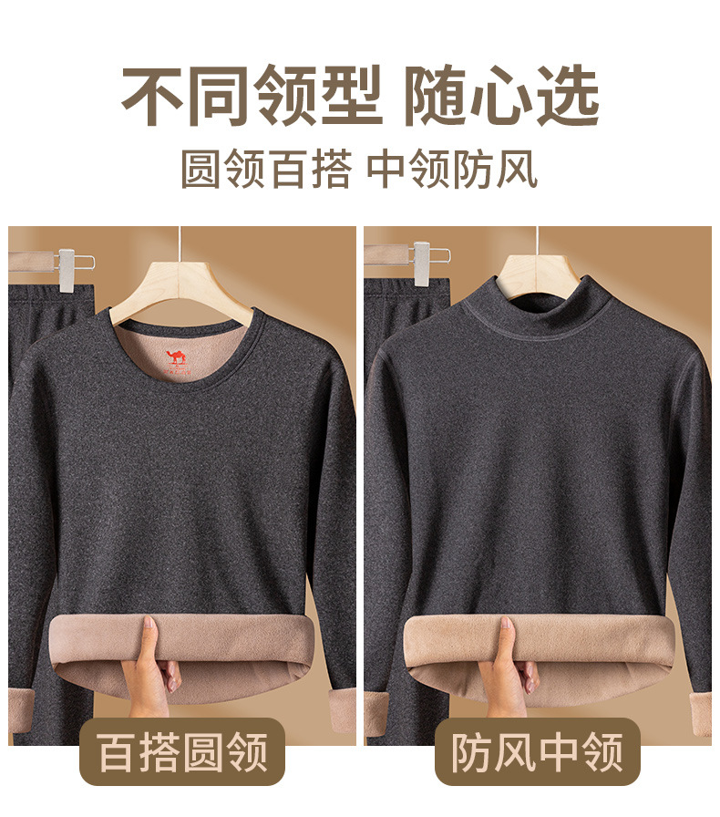 【驼绒巨厚】秋冬季保暖内衣套装半高领男女加绒加厚防寒秋衣秋裤秋冬加厚保暖内衣
