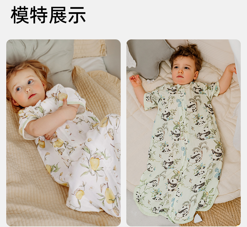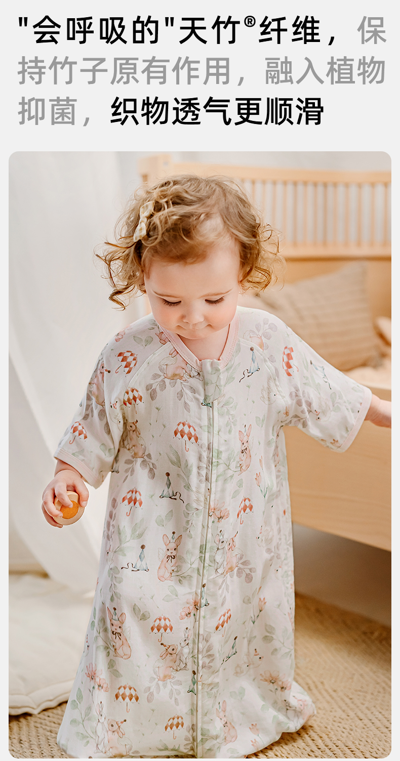 【宝宝安睡】嫚熙婴儿纱罗七分袖一体式睡袋夏季薄款宝宝防踢被儿童夏天防踢被