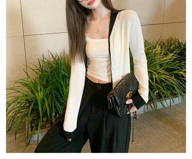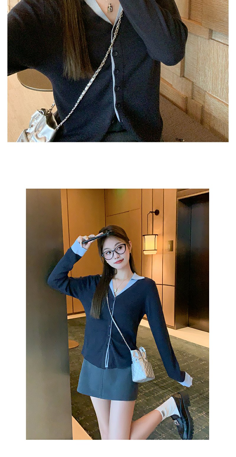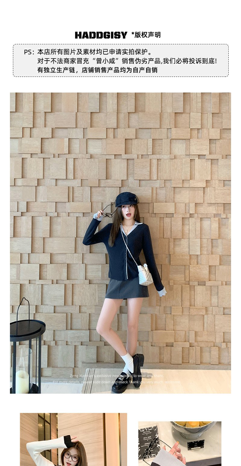 【129元任选2件】现货!假两件撞色修身POLO领长袖针织衫