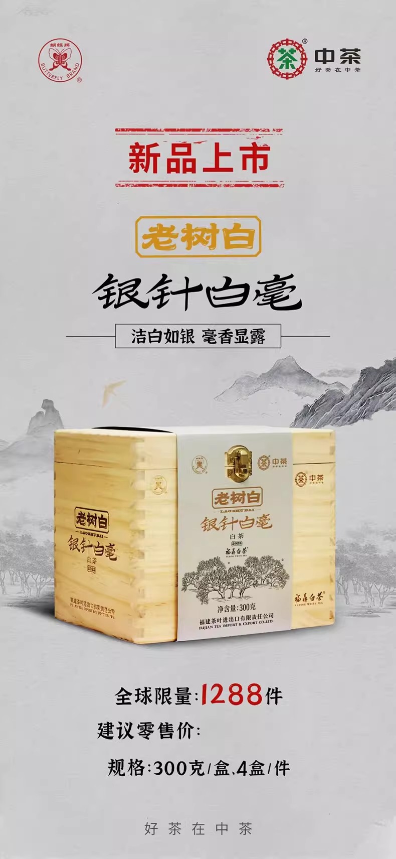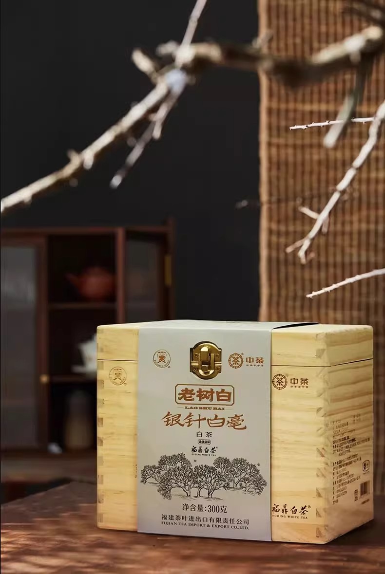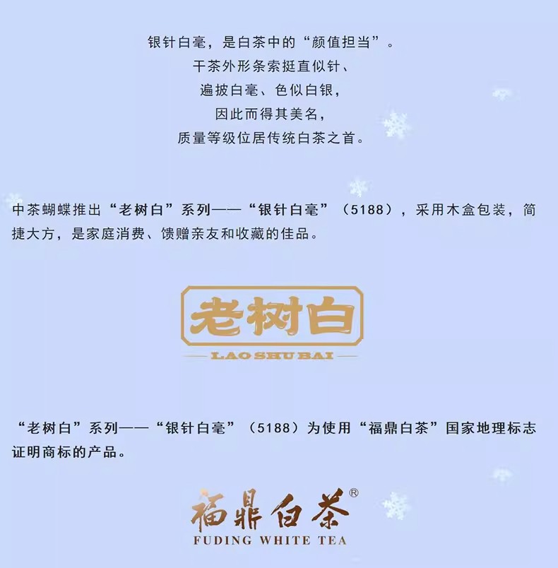 中茶蝴蝶老树白茶春茶2024年5188特级银针白毫木盒装礼袋300g