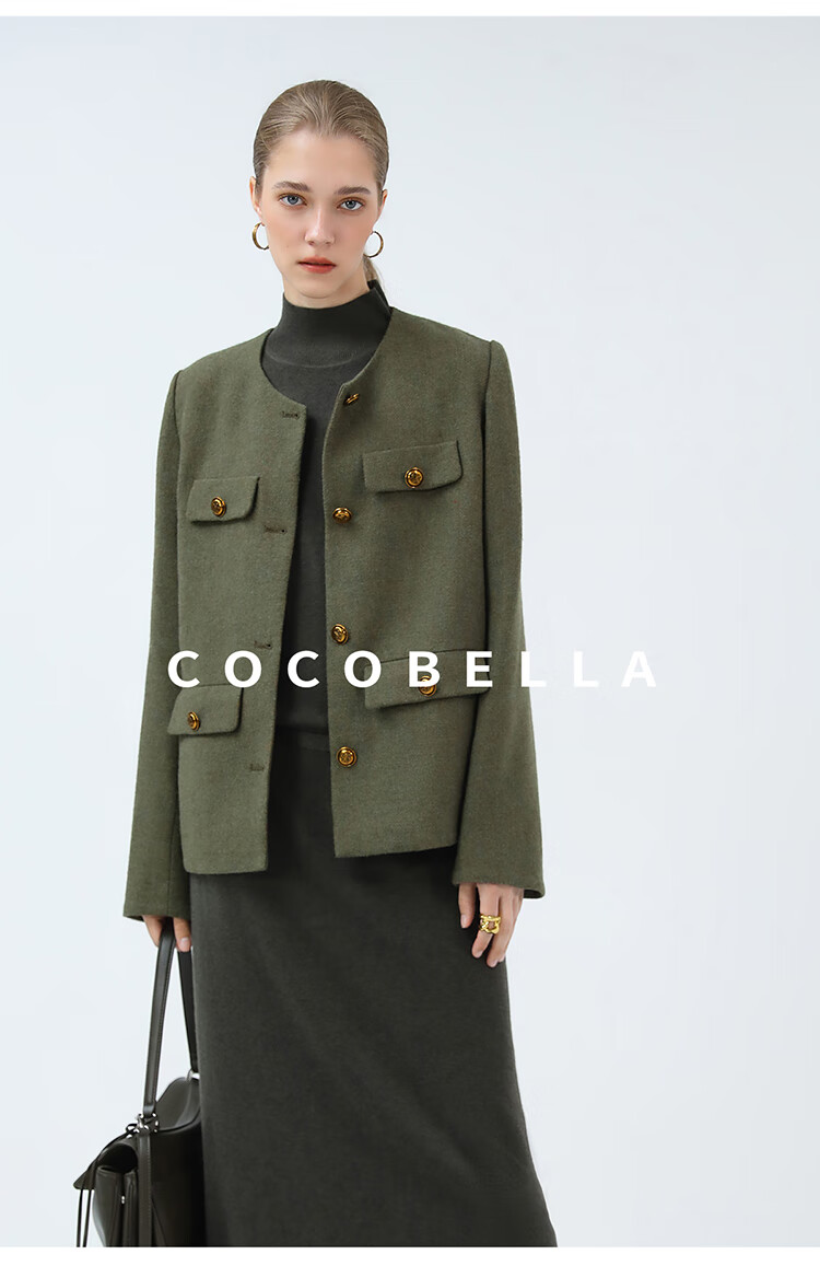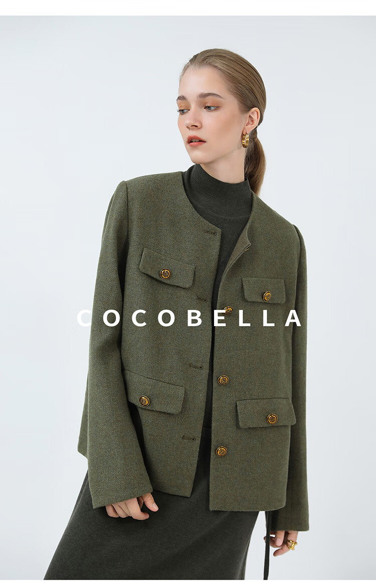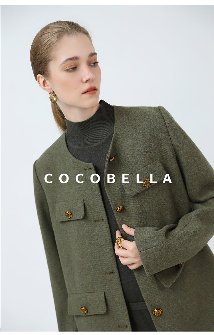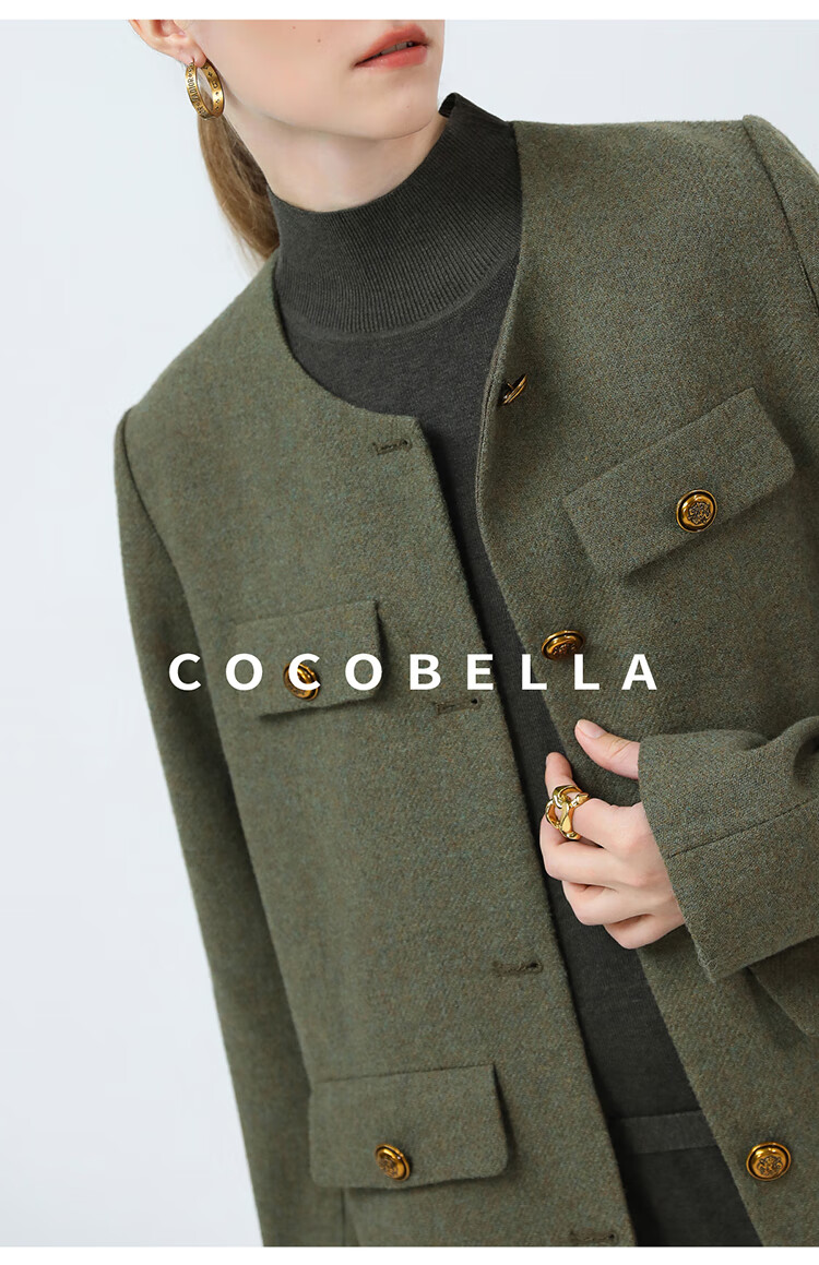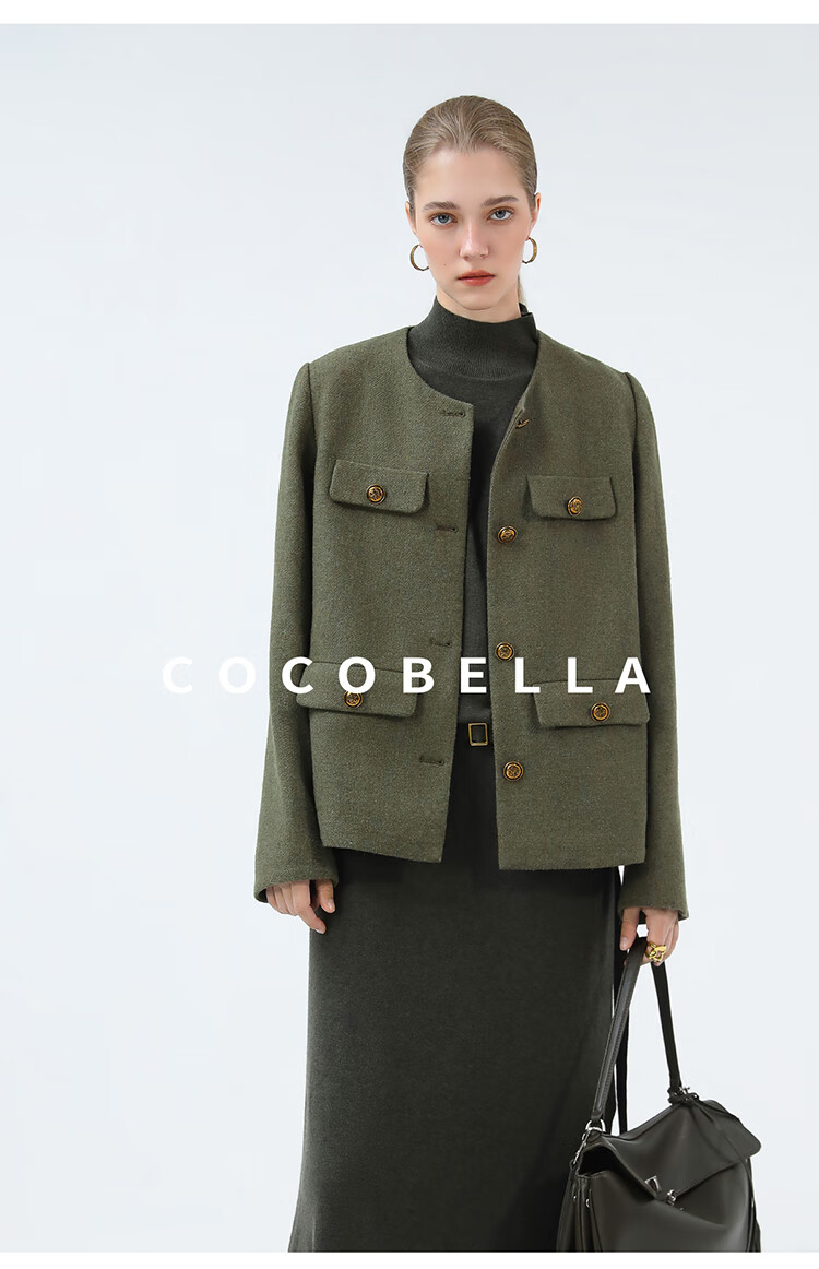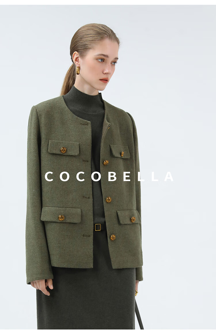 COCOBELLA名媛小香风羊毛外套质感金属扣箱型毛呢外套WL7060