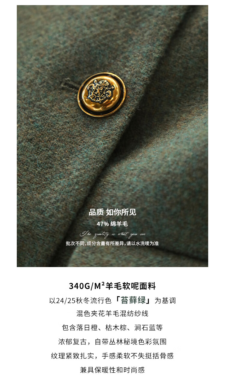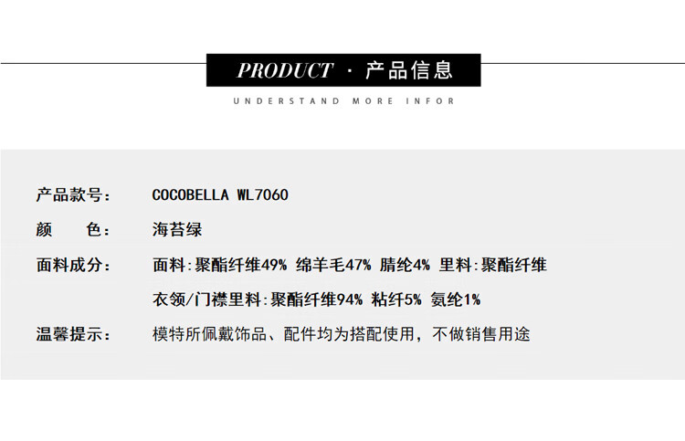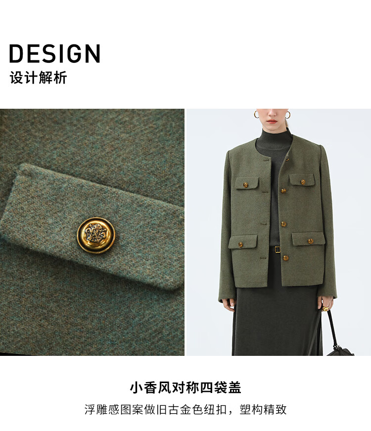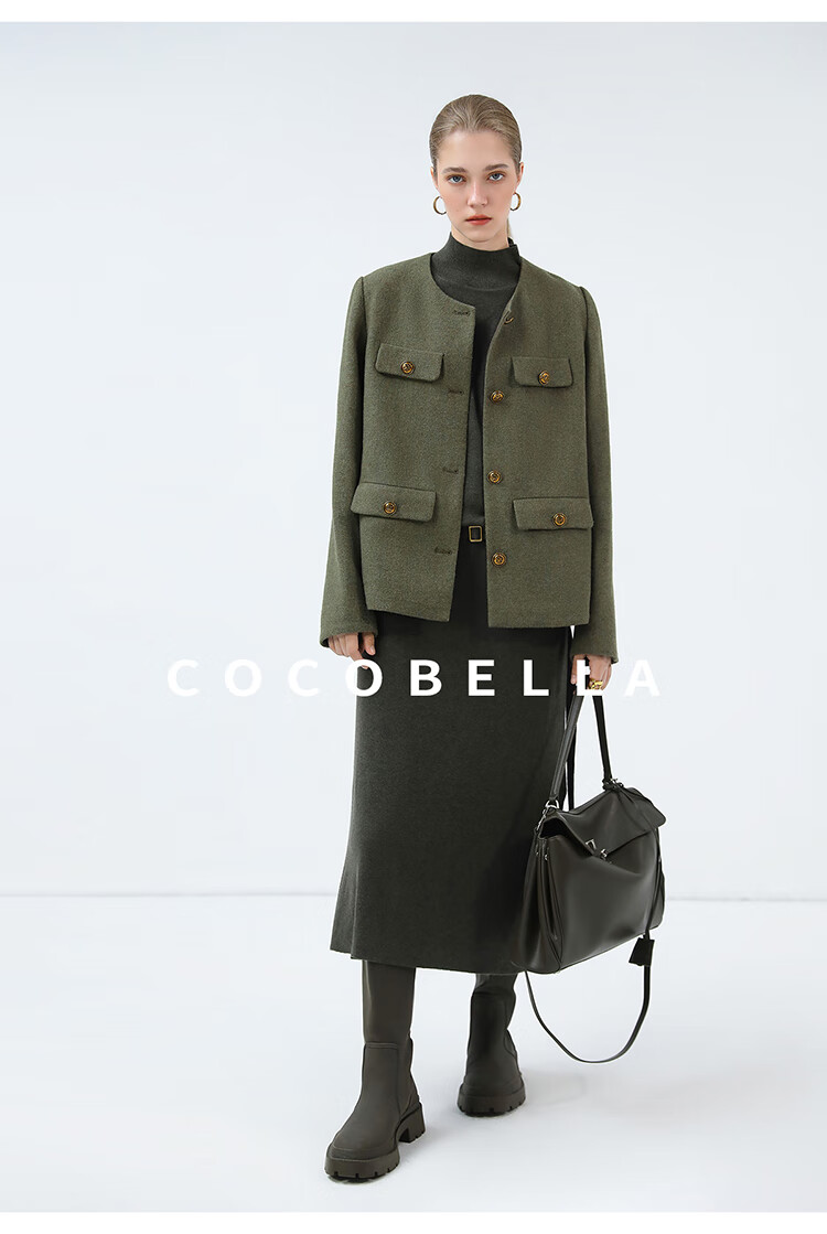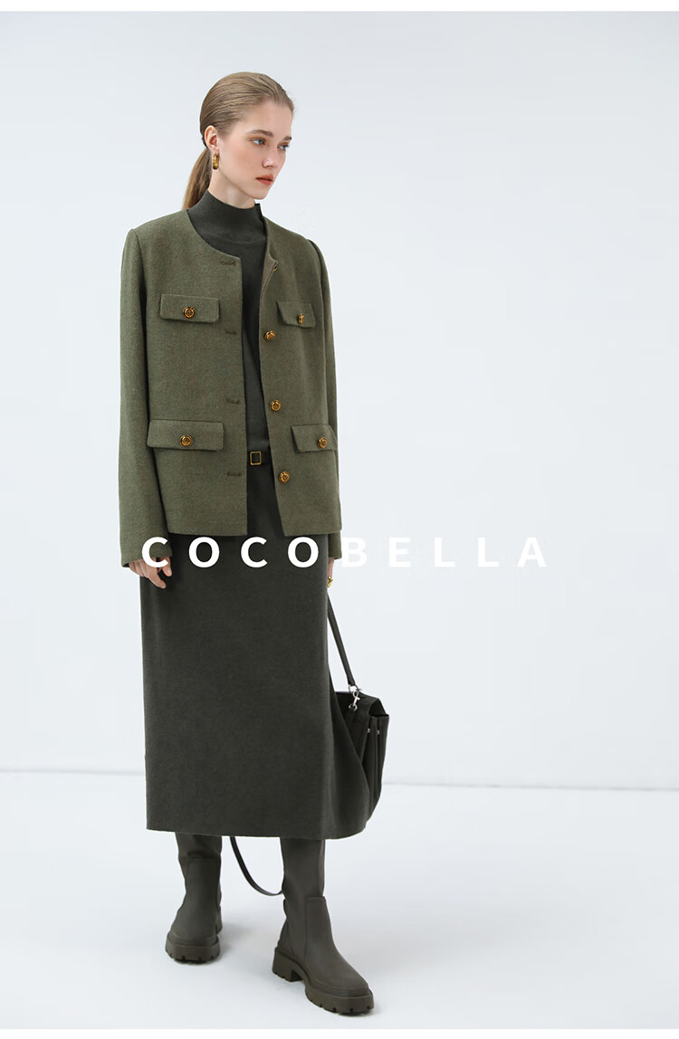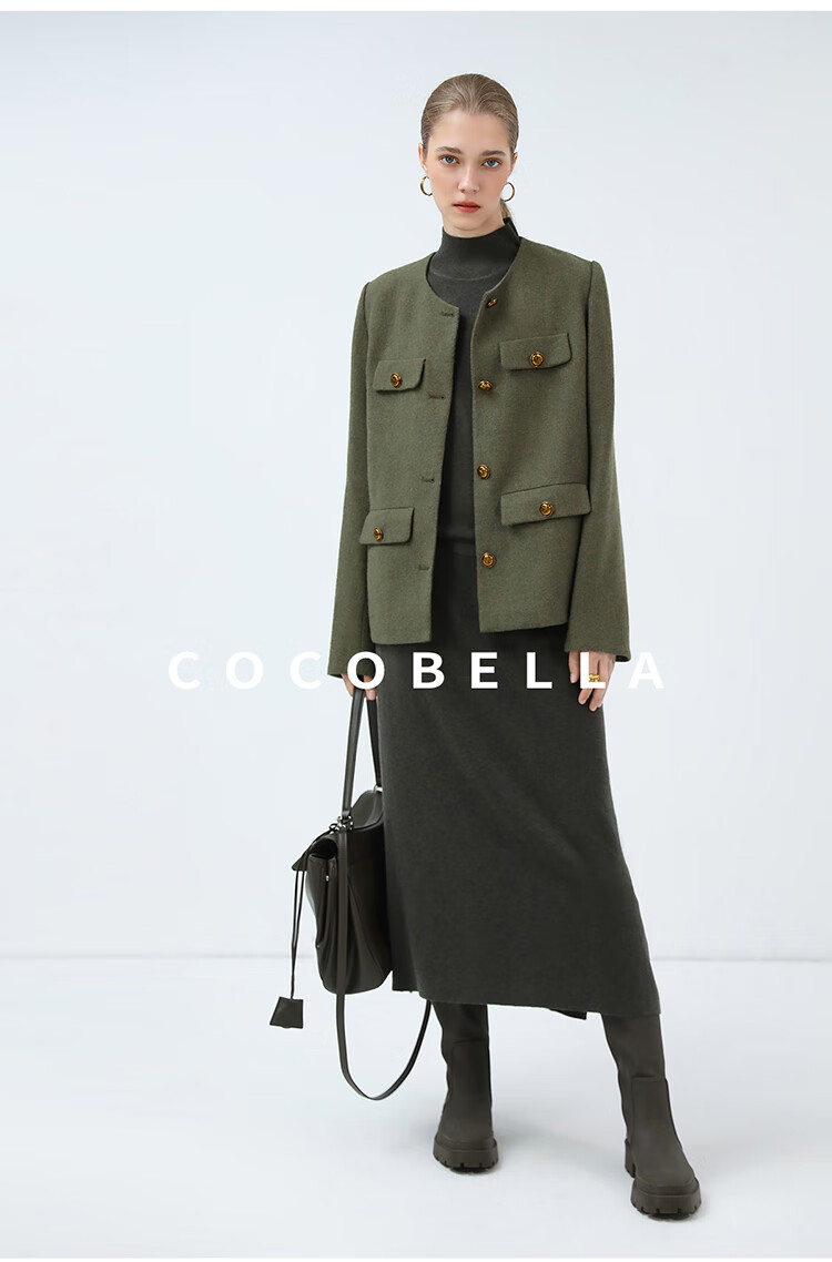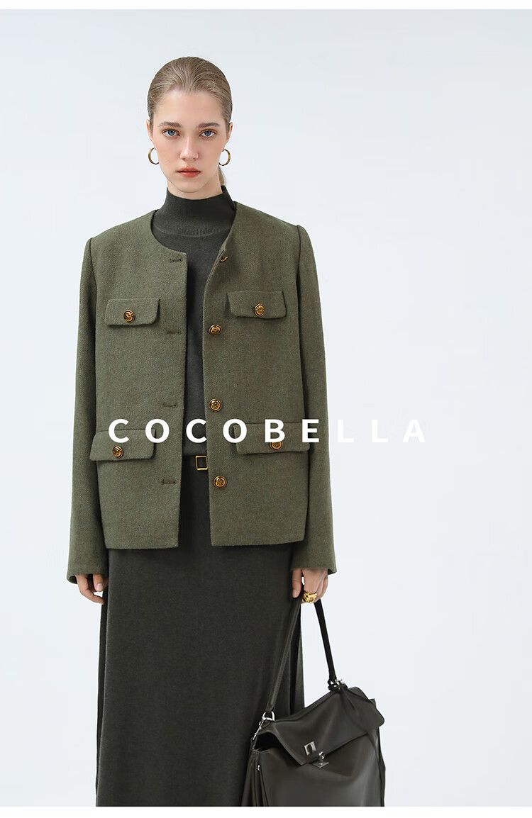 COCOBELLA名媛小香风羊毛外套质感金属扣箱型毛呢外套WL7060