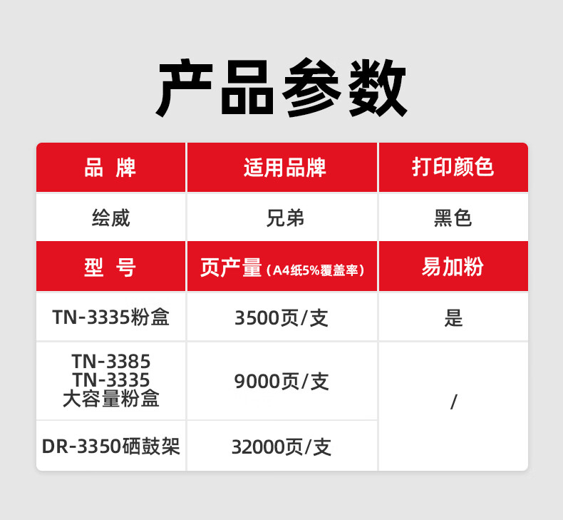 绘威 TN-3385/3335XL/3395/硒鼓架3350/大容量粉盒适用兄弟HL-5440D 5445D 5450DN 6180DW MFC-8510DN 8515DN 8520DN绘印版