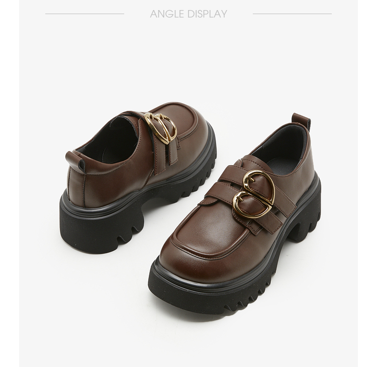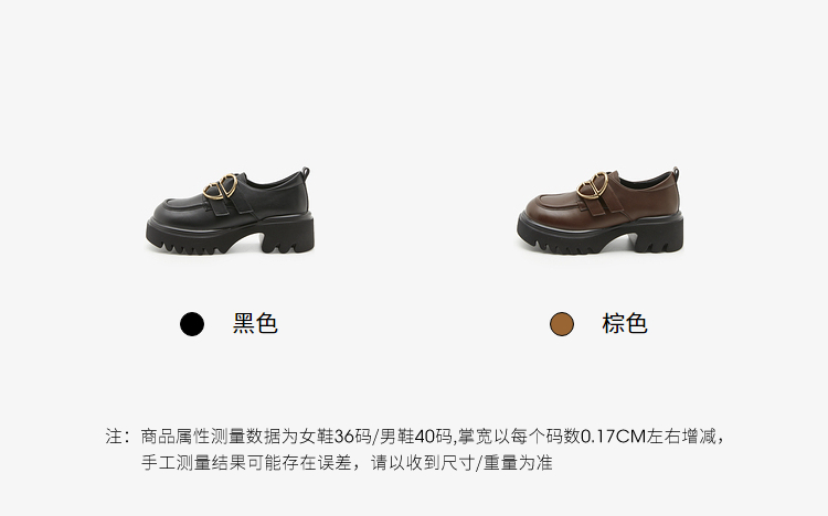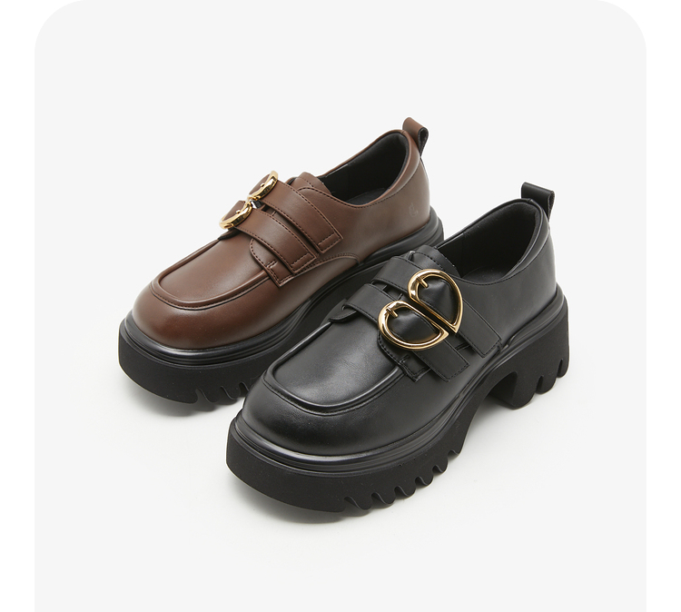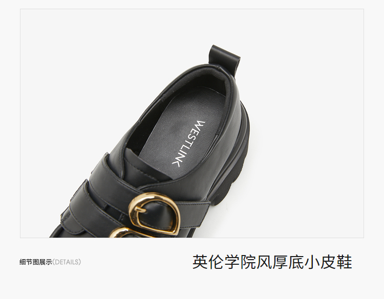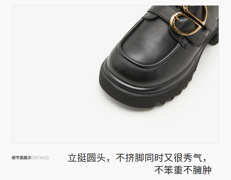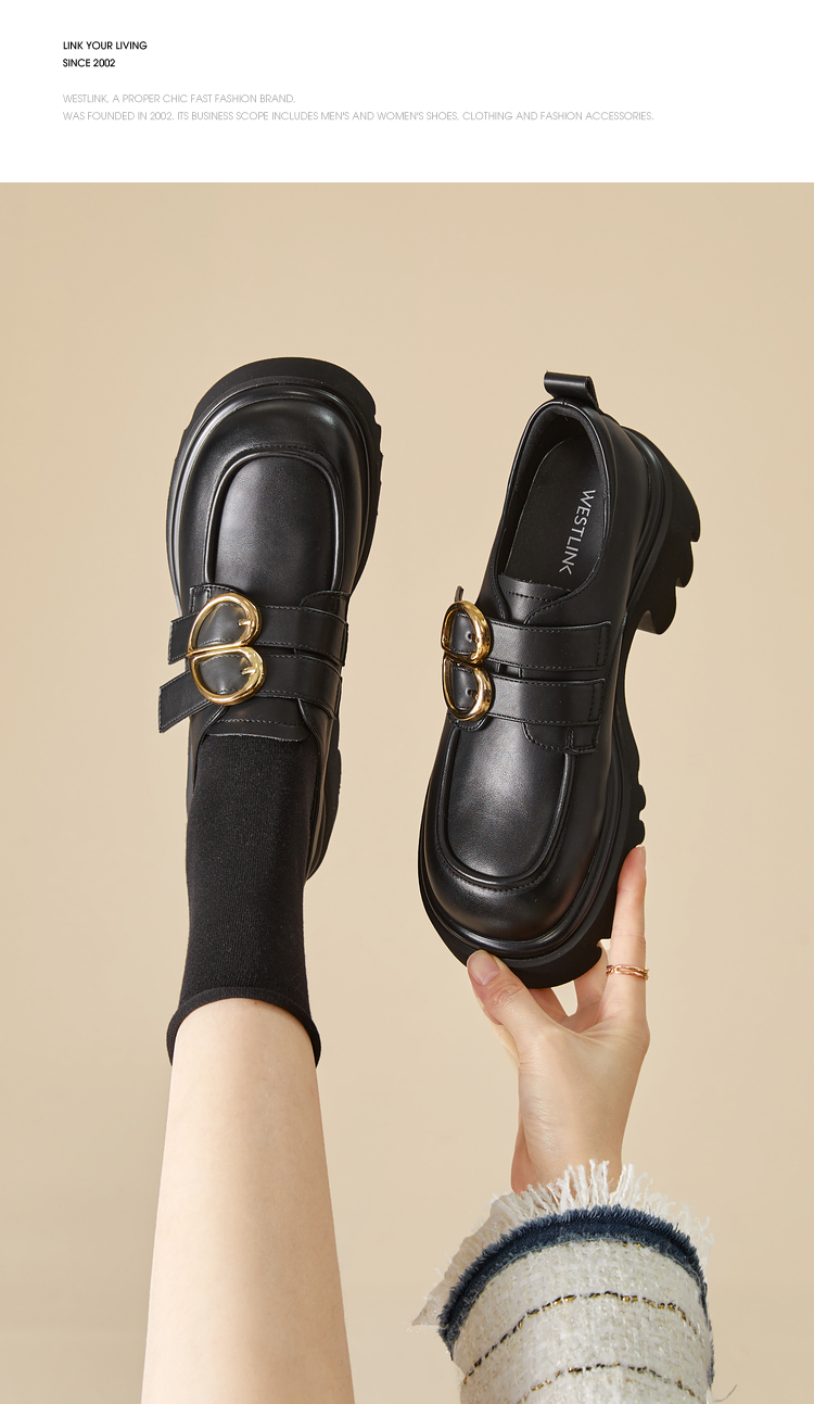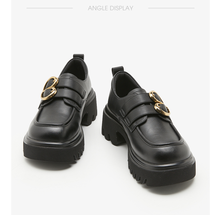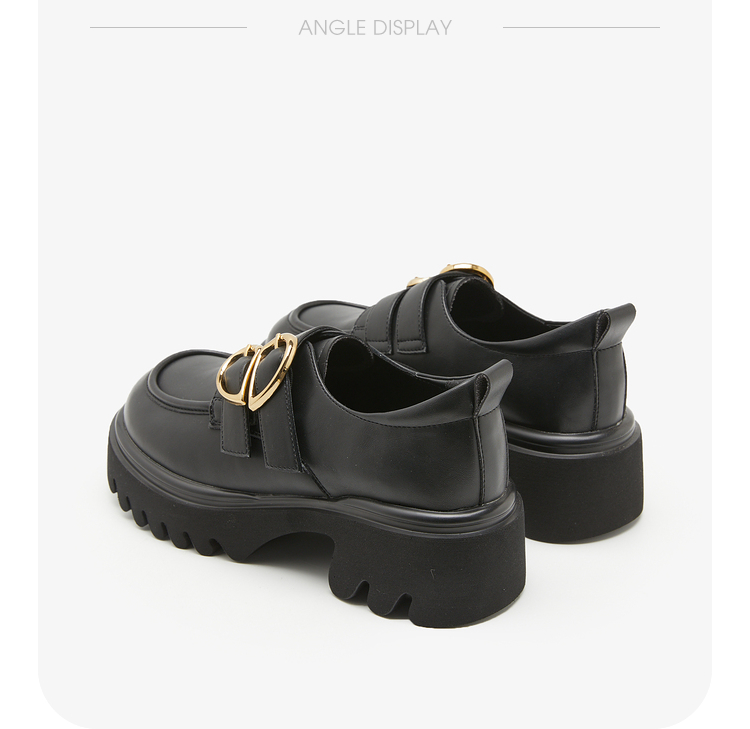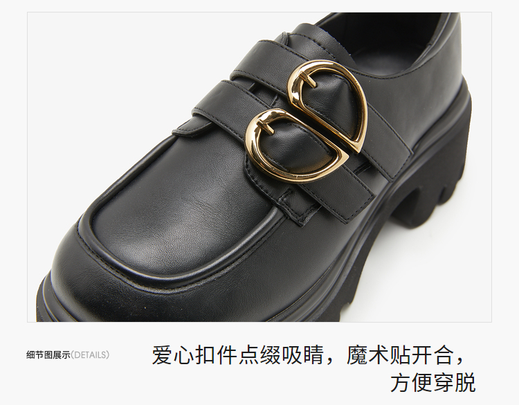 西遇厚底乐福鞋女新款心形金扣学院风深口单鞋黑色小皮鞋D0346263