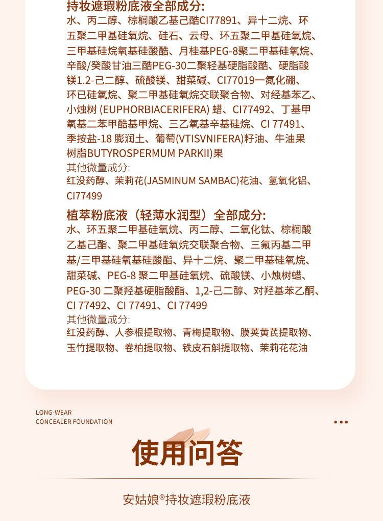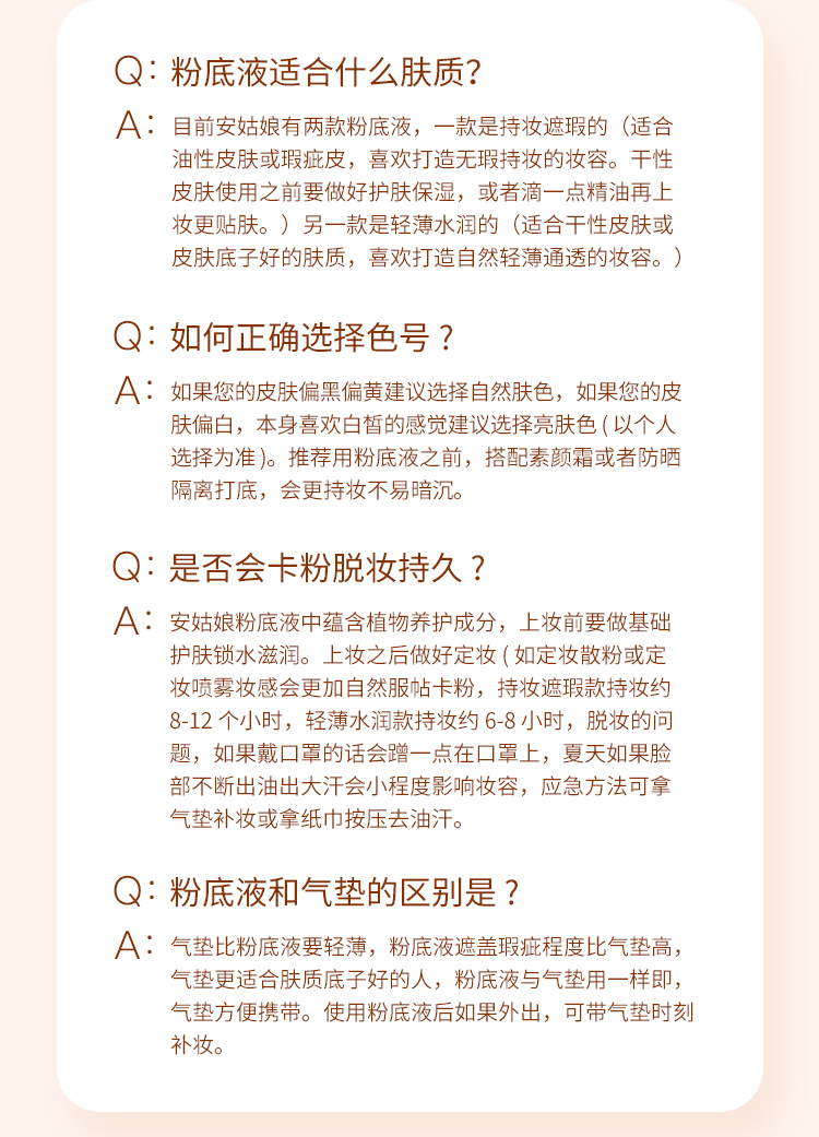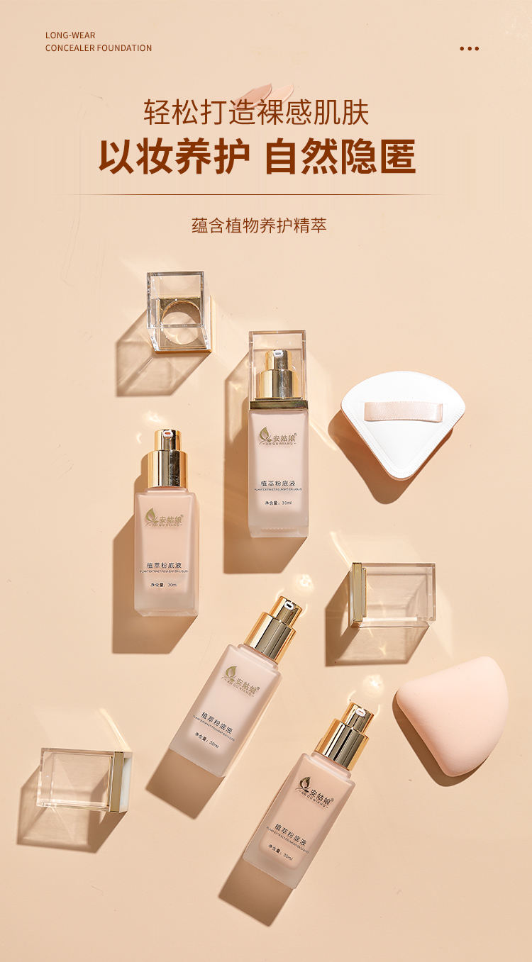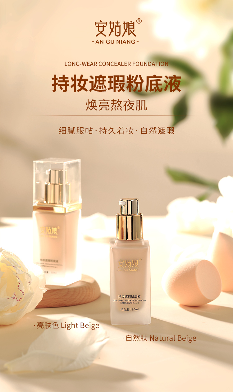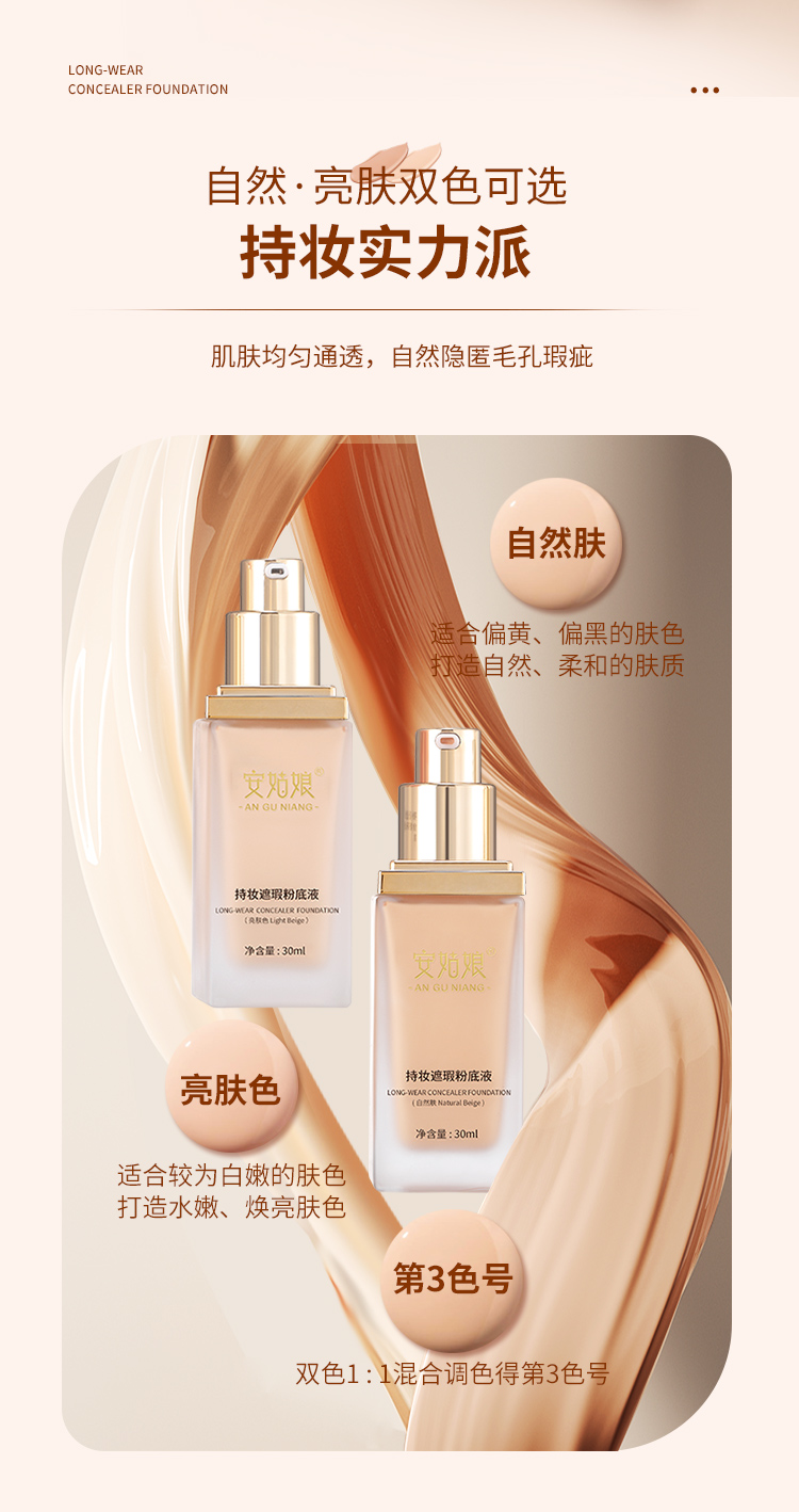 安姑娘持妆遮瑕粉底液 贴肤自然轻薄水润清透不卡粉【中原仓京东快递发货】