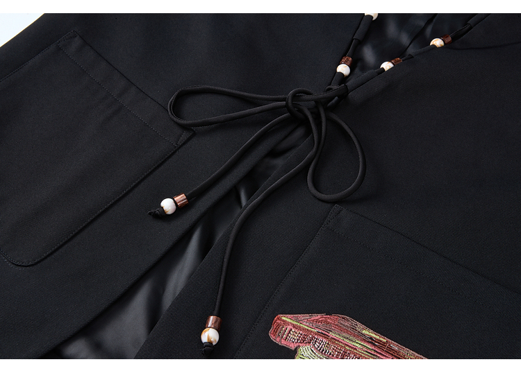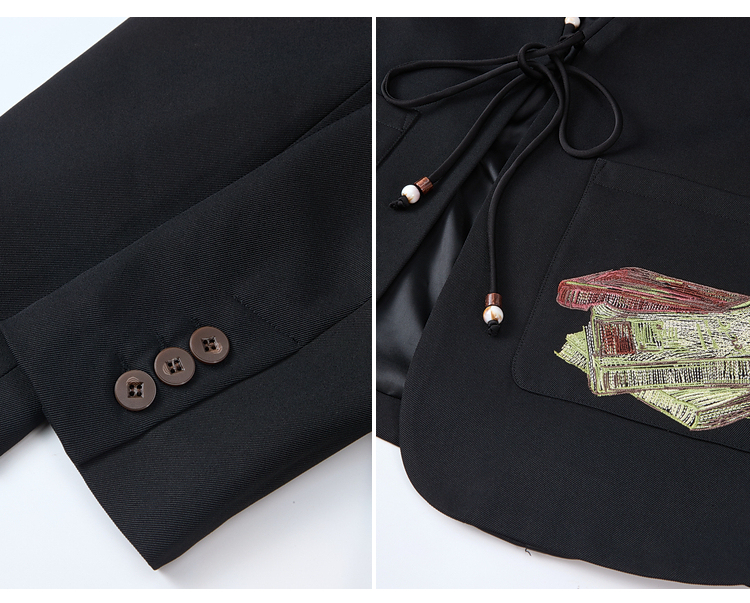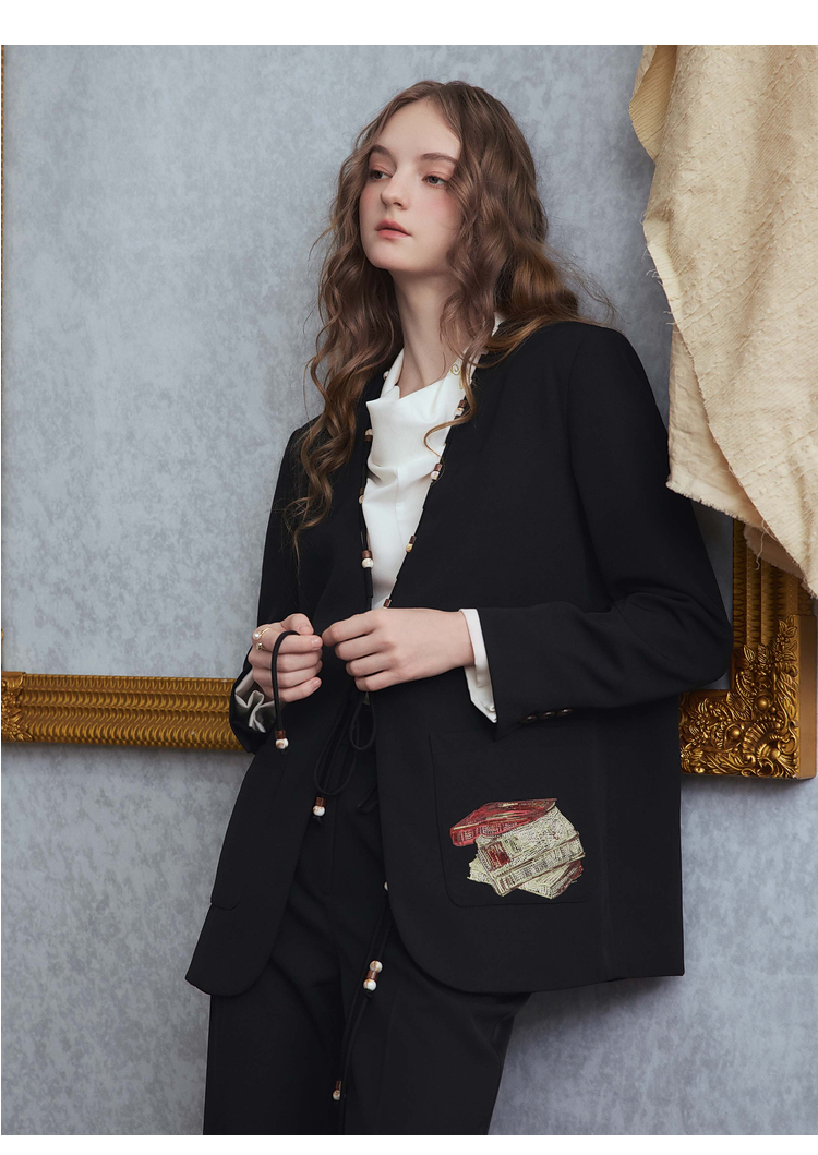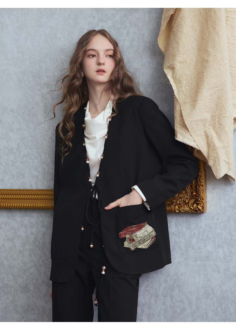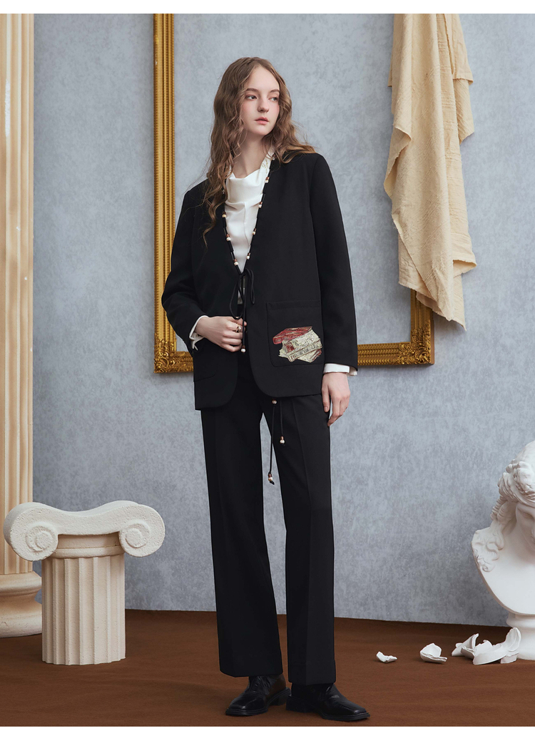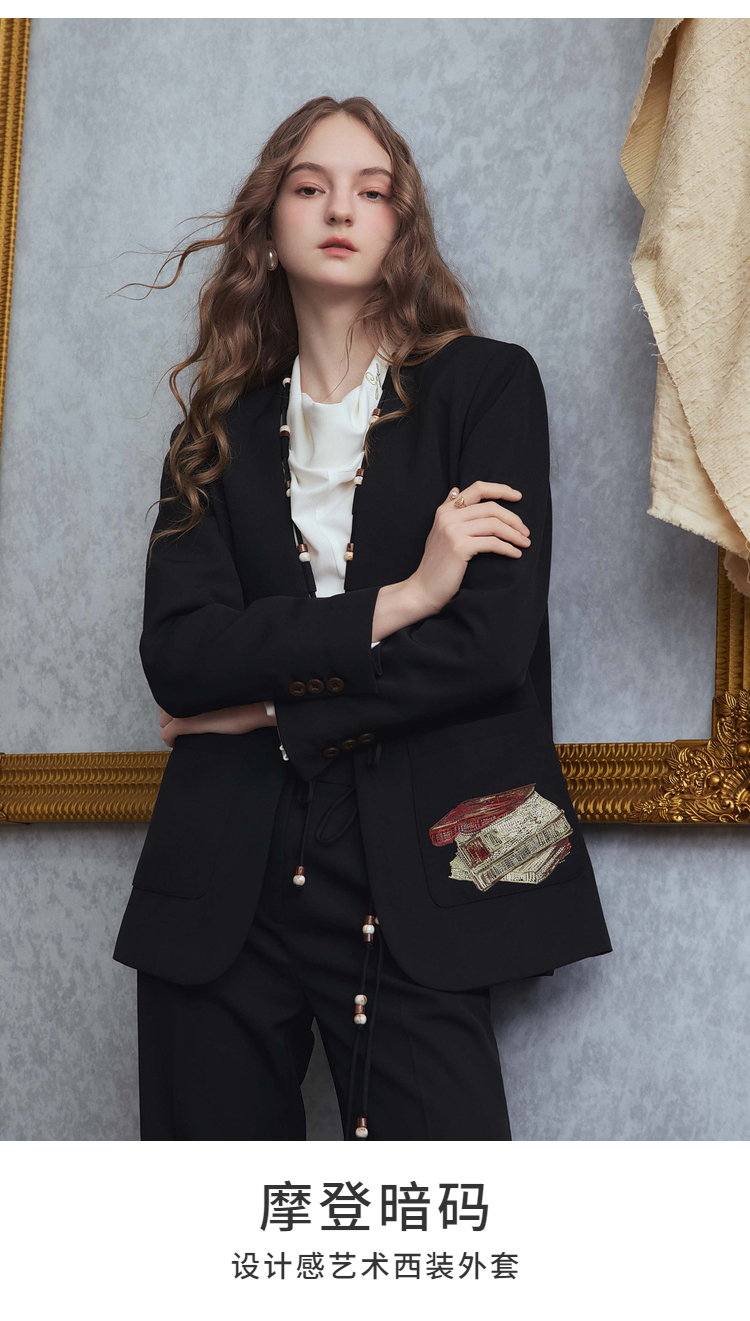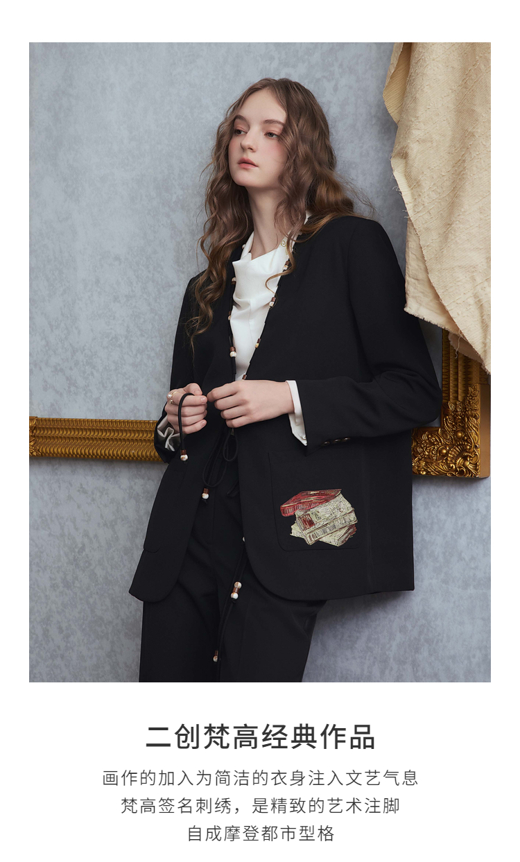 两三事梵高文艺摩登暗码2025秋季新款刺绣串珠装饰两件套西装套装