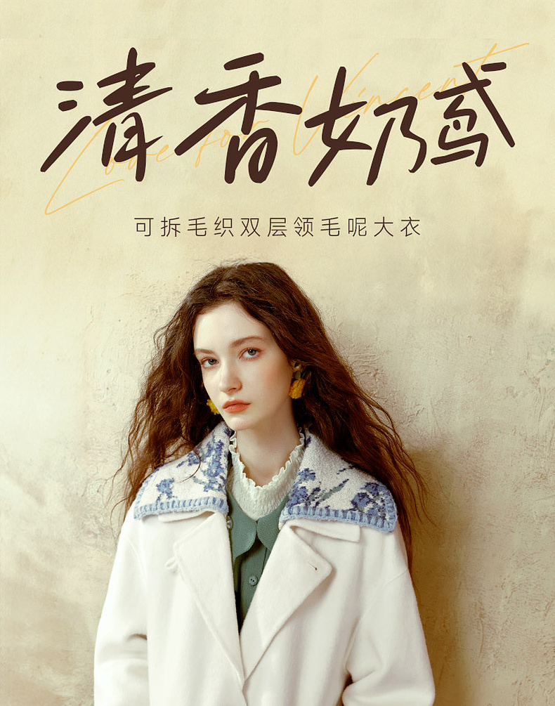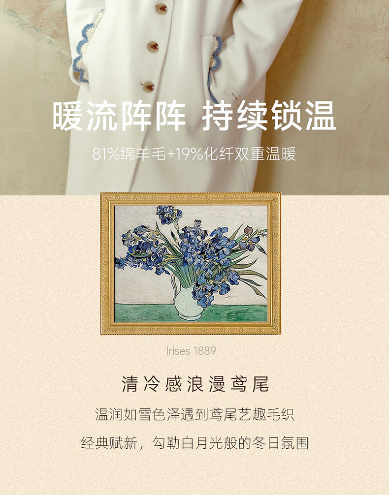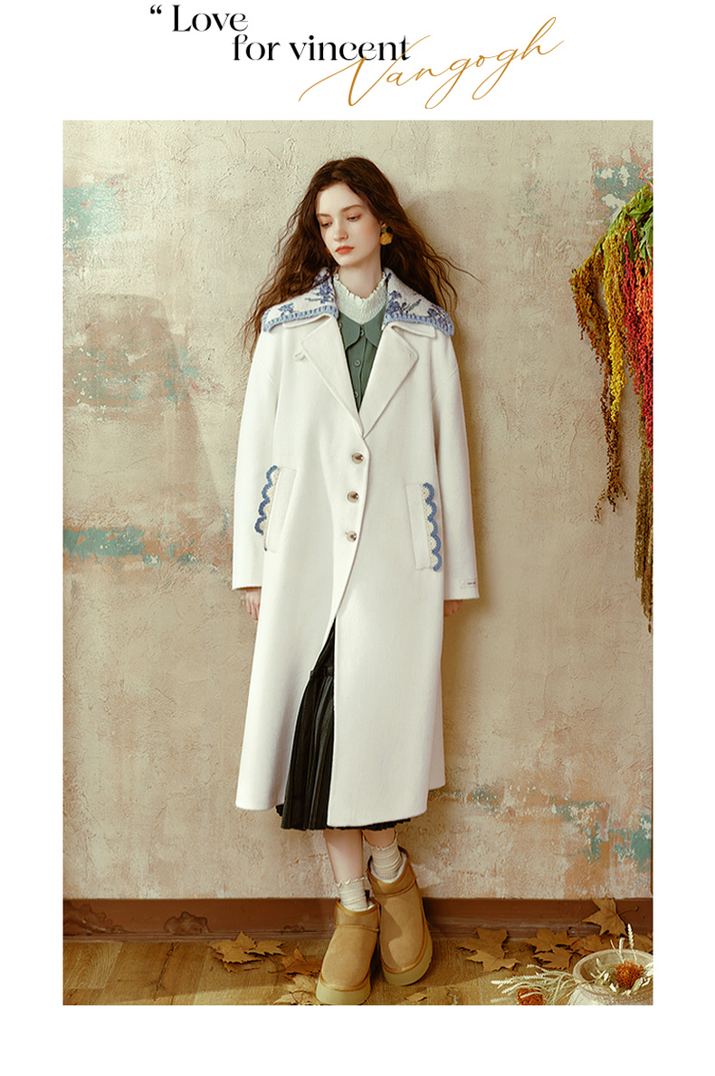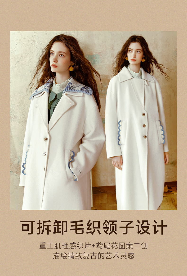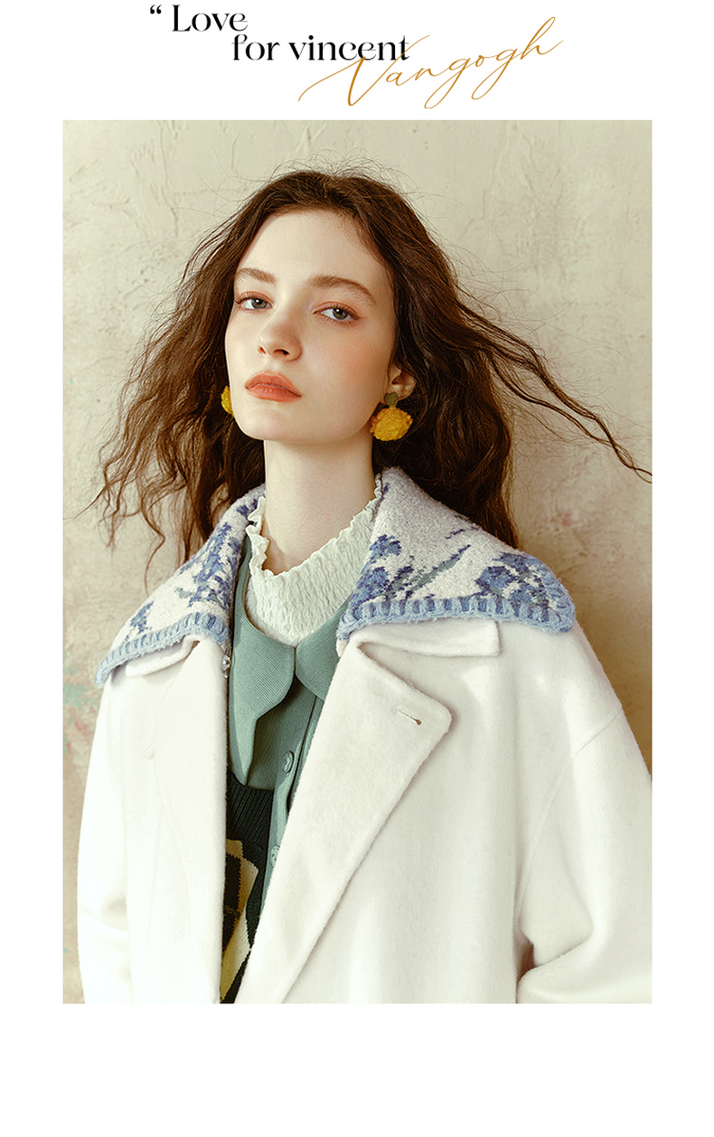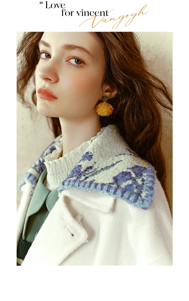 【暖冬内购】两三事梵高文艺清香奶鸢2024冬新款可拆毛织双层领毛呢外套女宽松