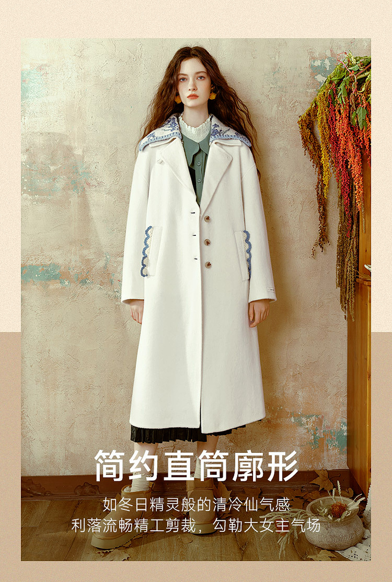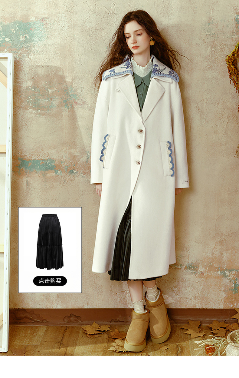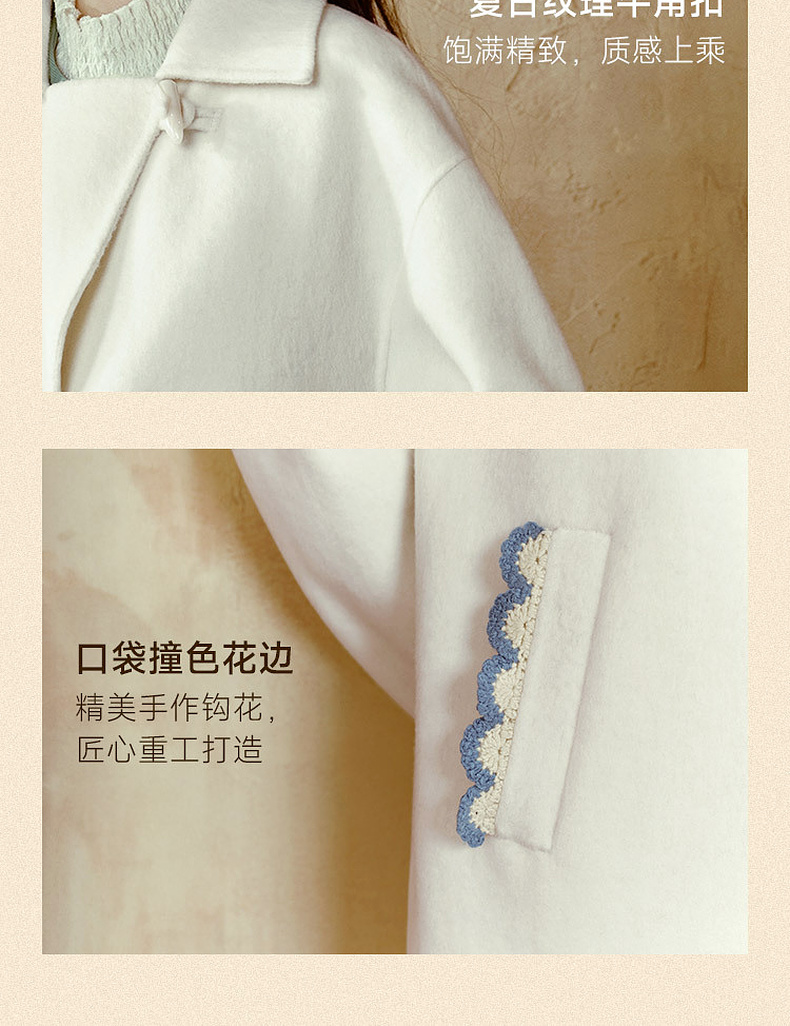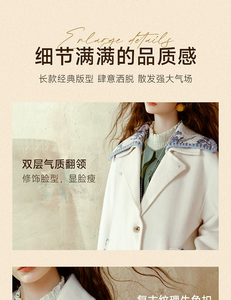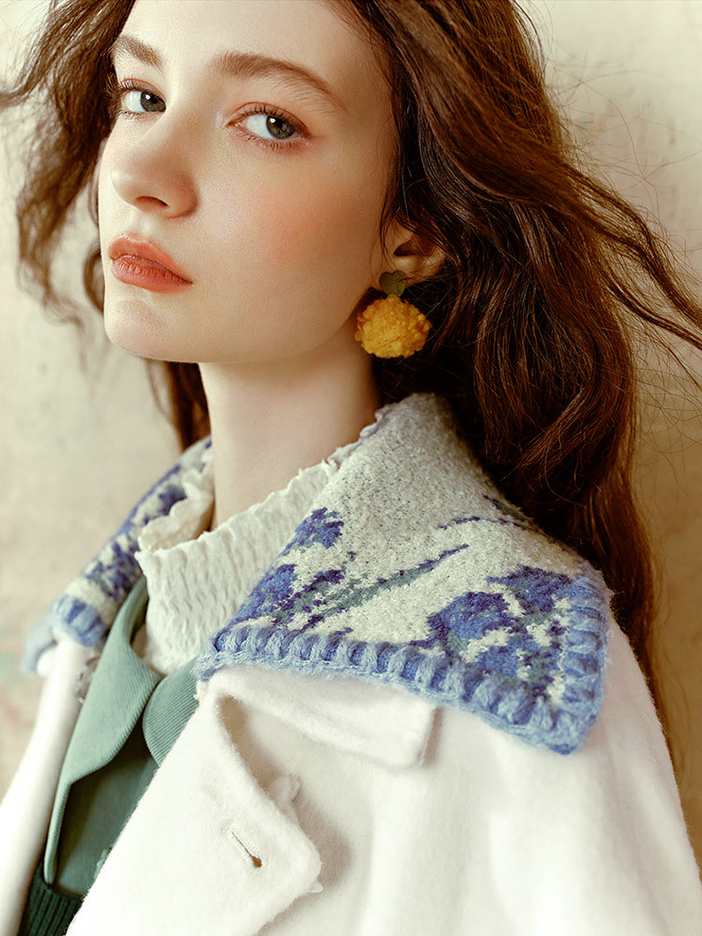【暖冬内购】两三事梵高文艺清香奶鸢2024冬新款可拆毛织双层领毛呢外套女宽松