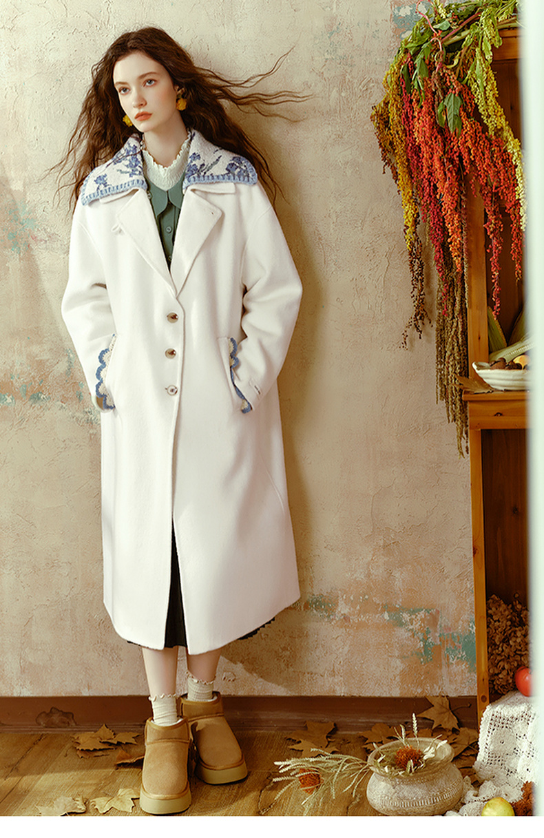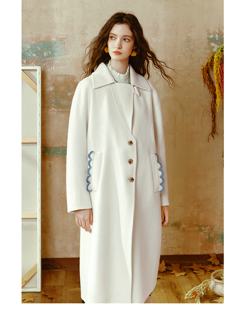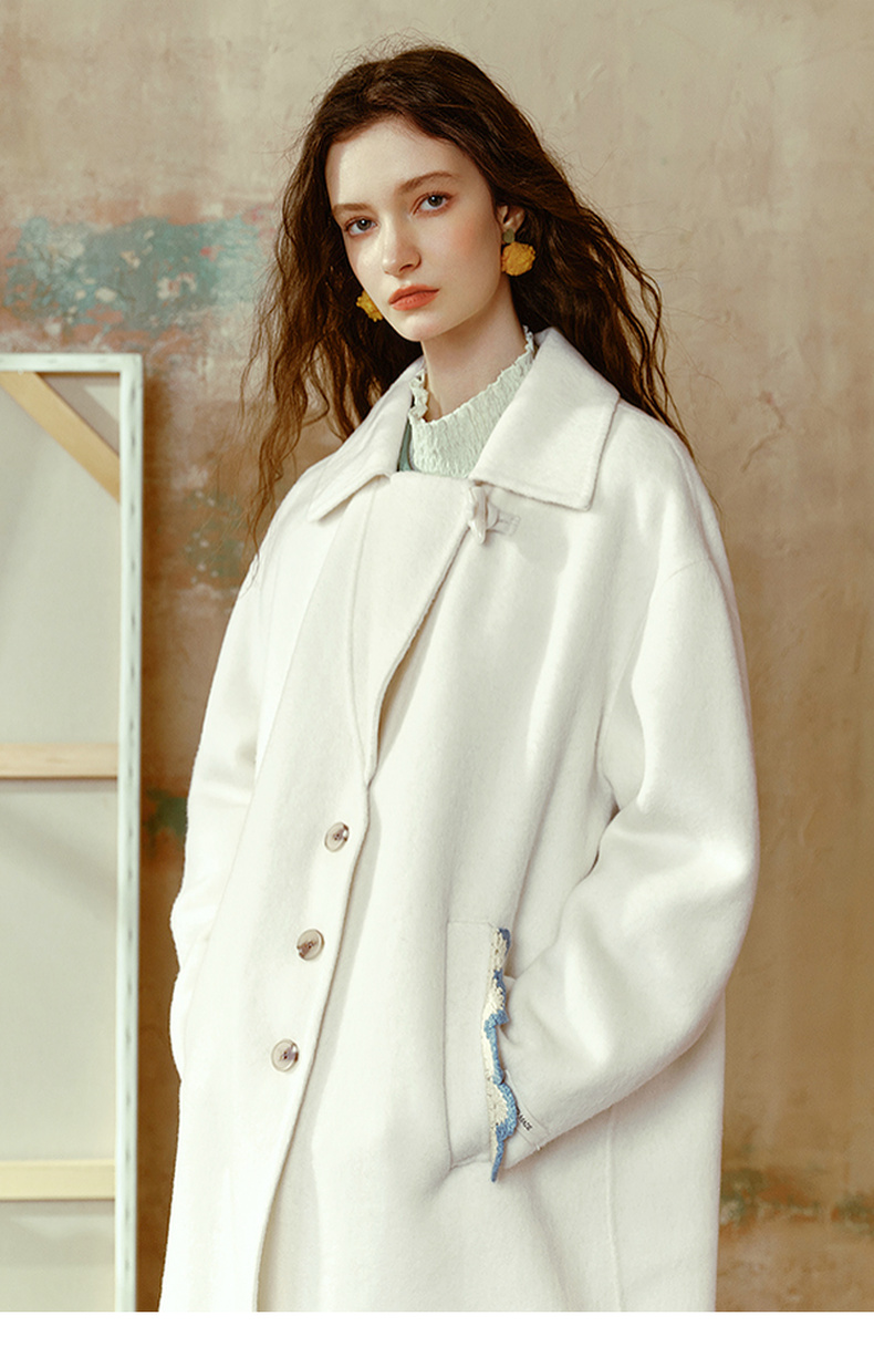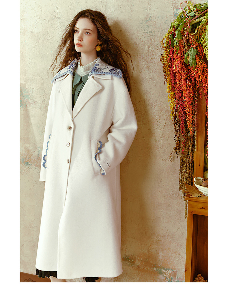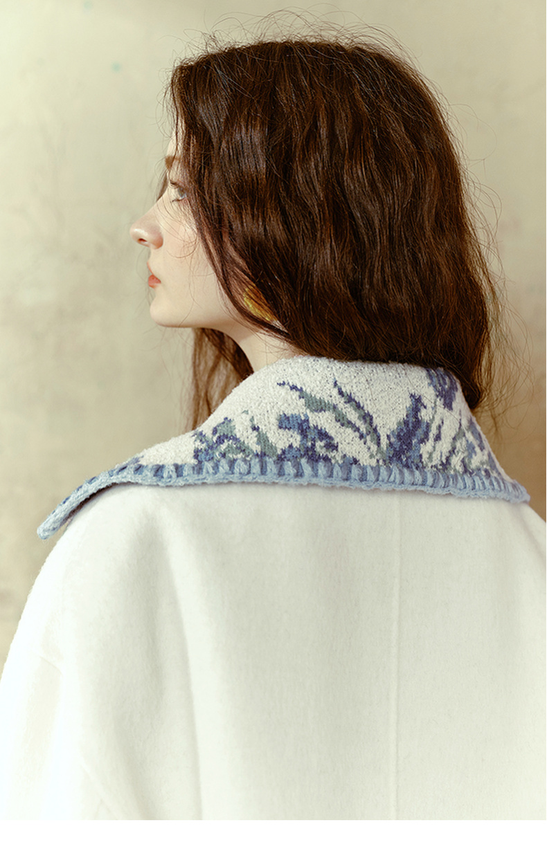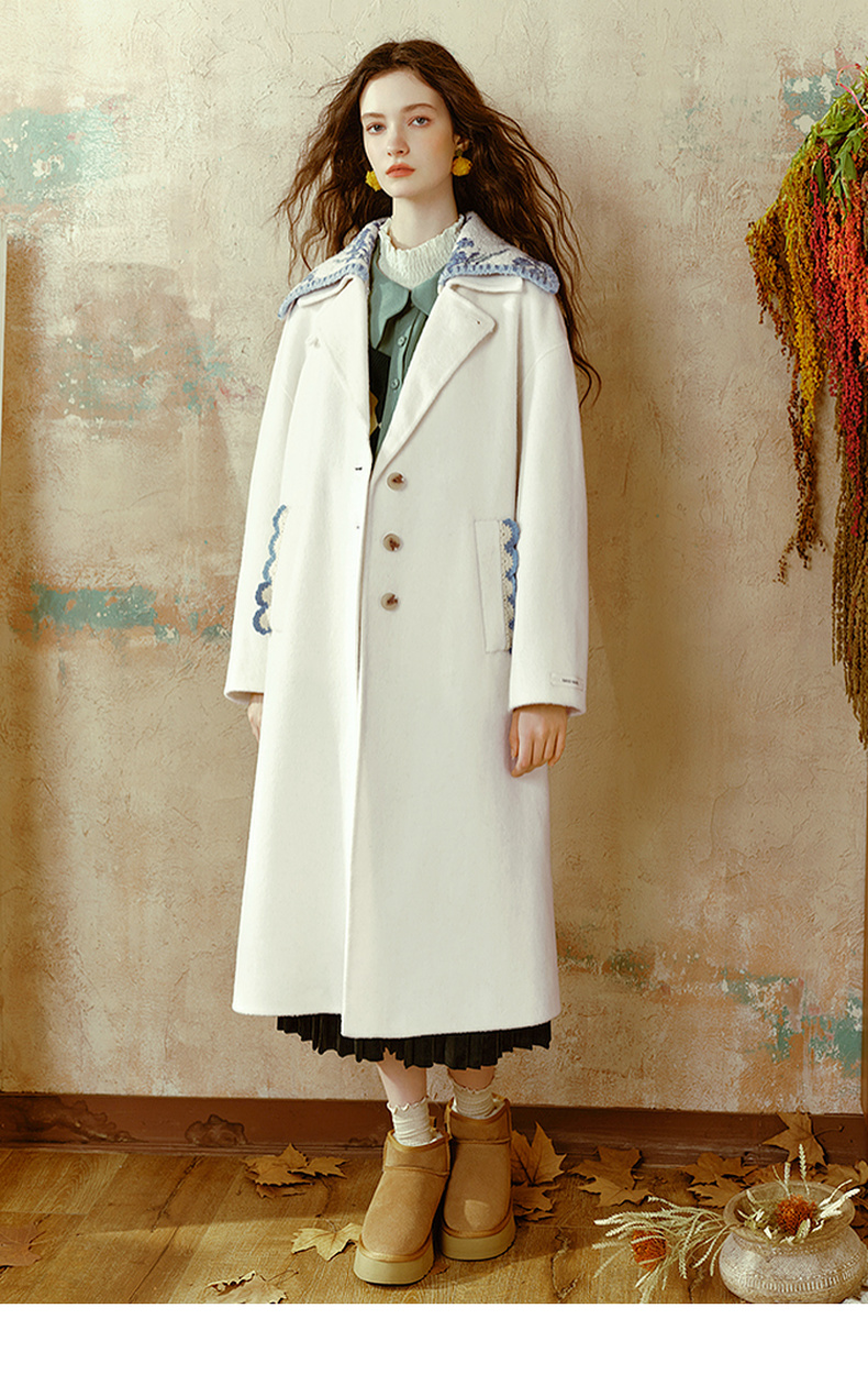 【暖冬内购】两三事梵高文艺清香奶鸢2024冬新款可拆毛织双层领毛呢外套女宽松